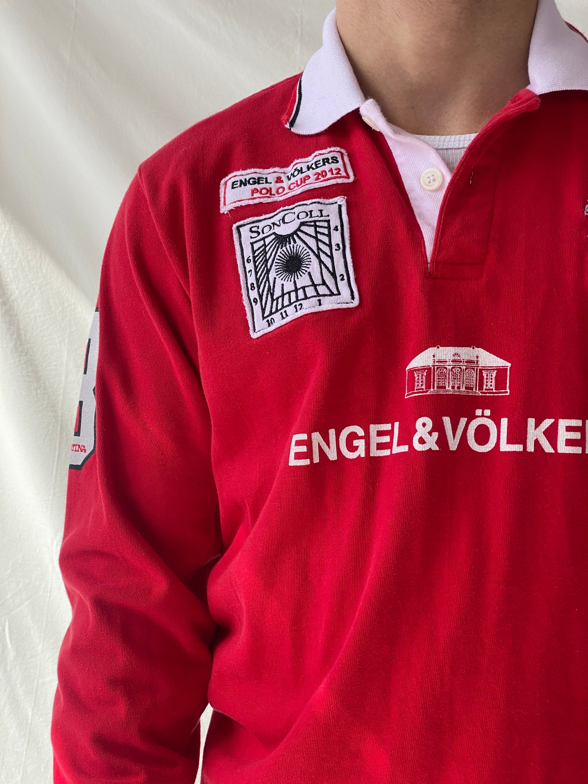 قميص بولو إنجل آند فولكرز 2012 بولو كاب أحمر بأكمام طويلة من القطن - مقاس متوسط