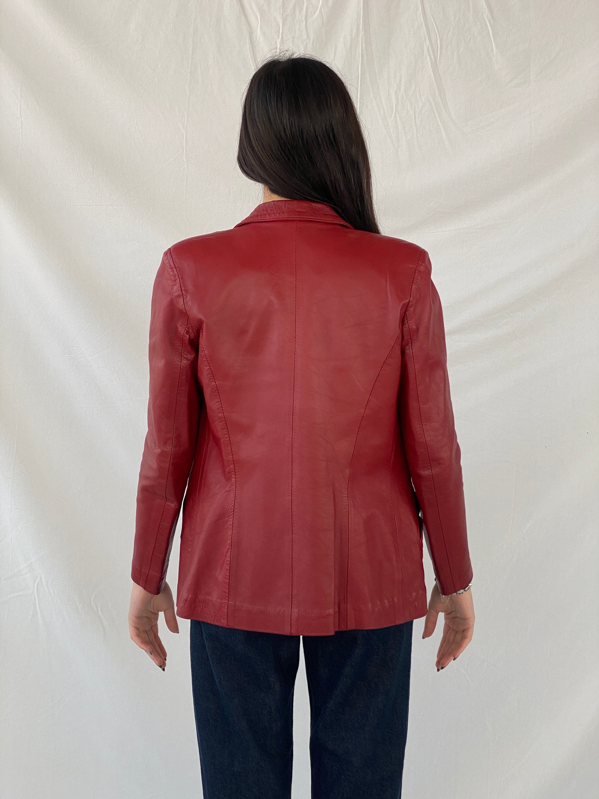 جاكيت بليزر بأزرار من الجلد الطبيعي باللون الأحمر من فينتيج لابين - مقاس صغير