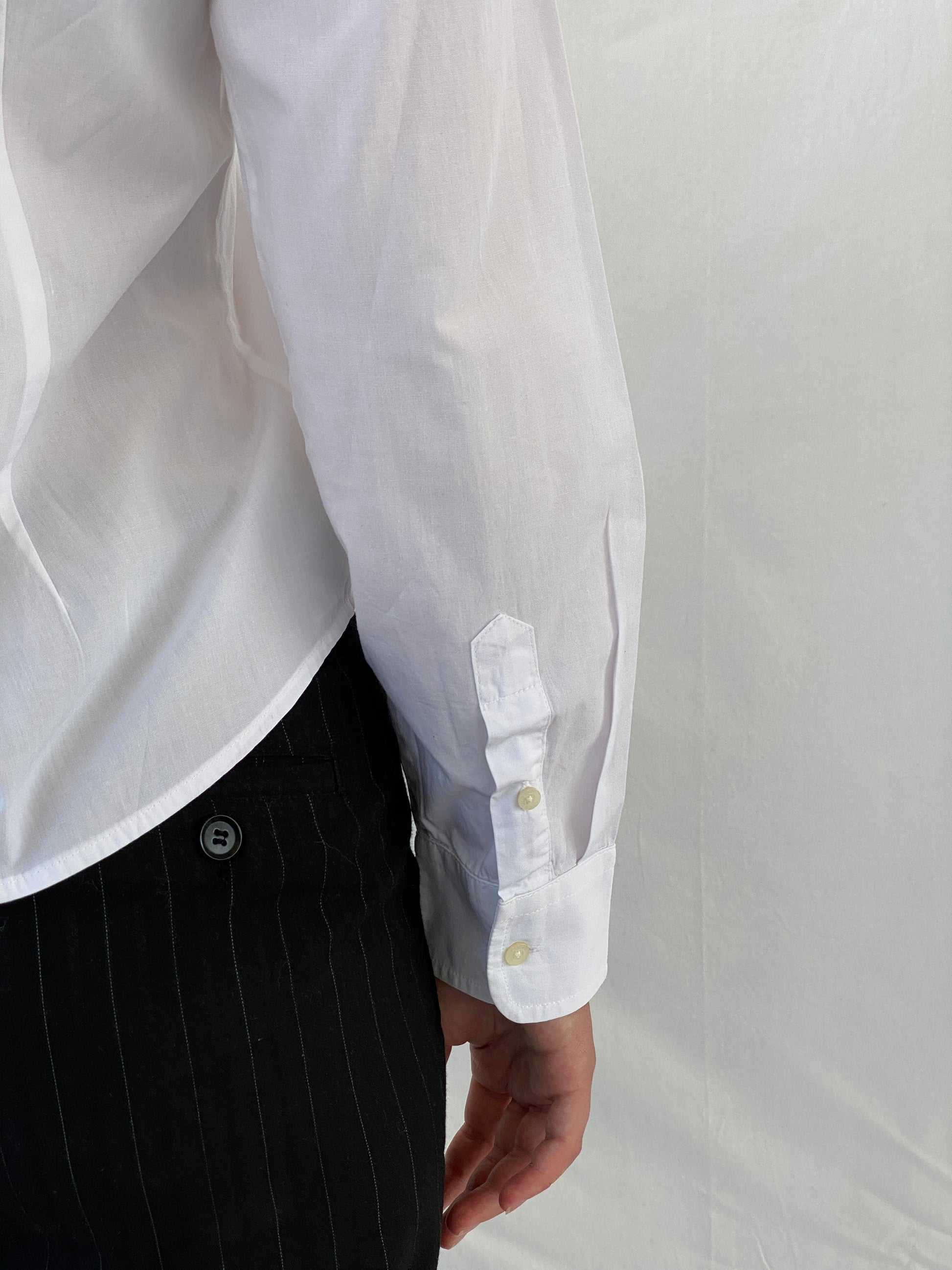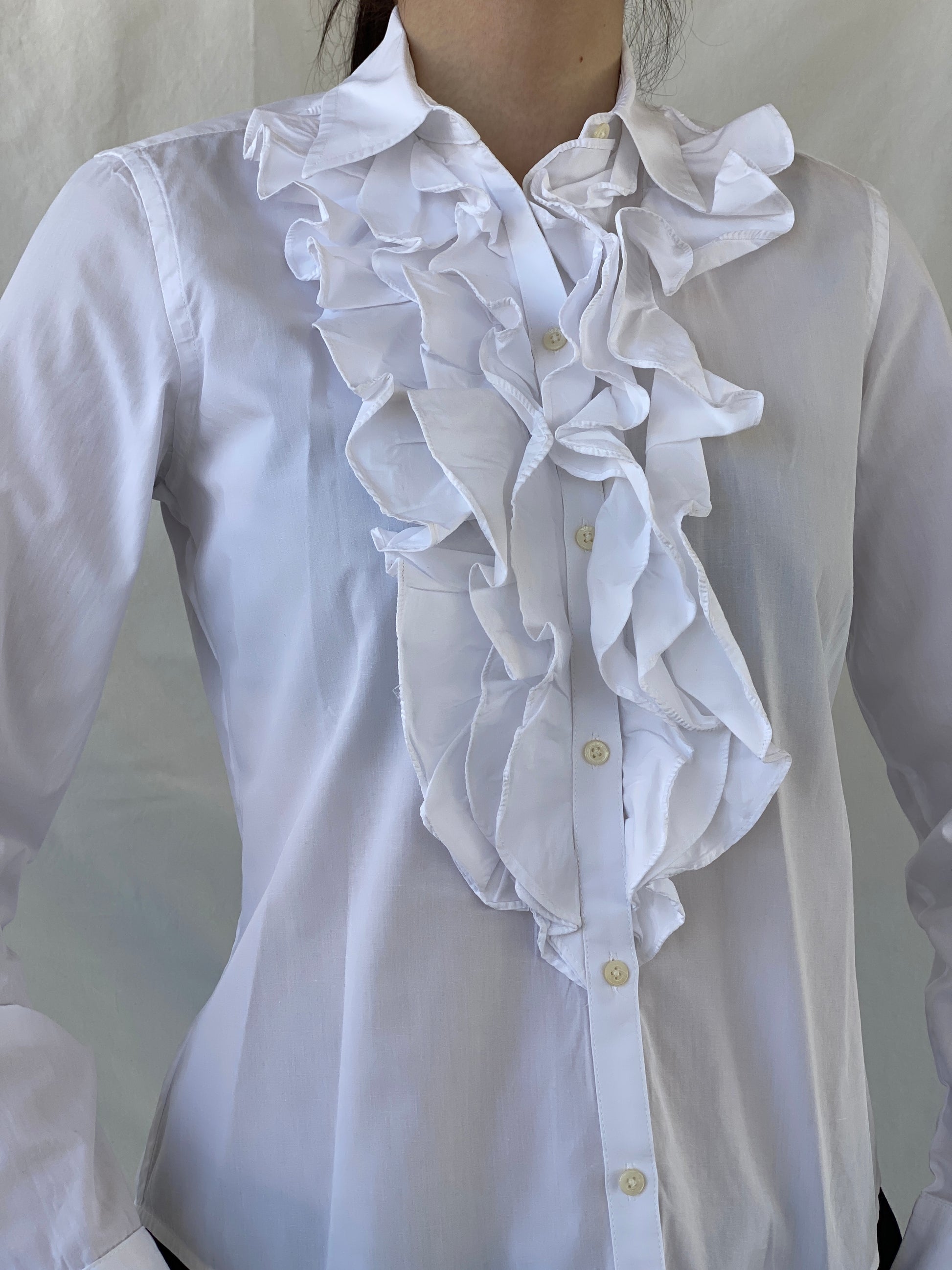 قميص لورين باي رالف لورين بأكمام طويلة وأزرار وبلوزة بيضاء مكشكشة - مقاس صغير