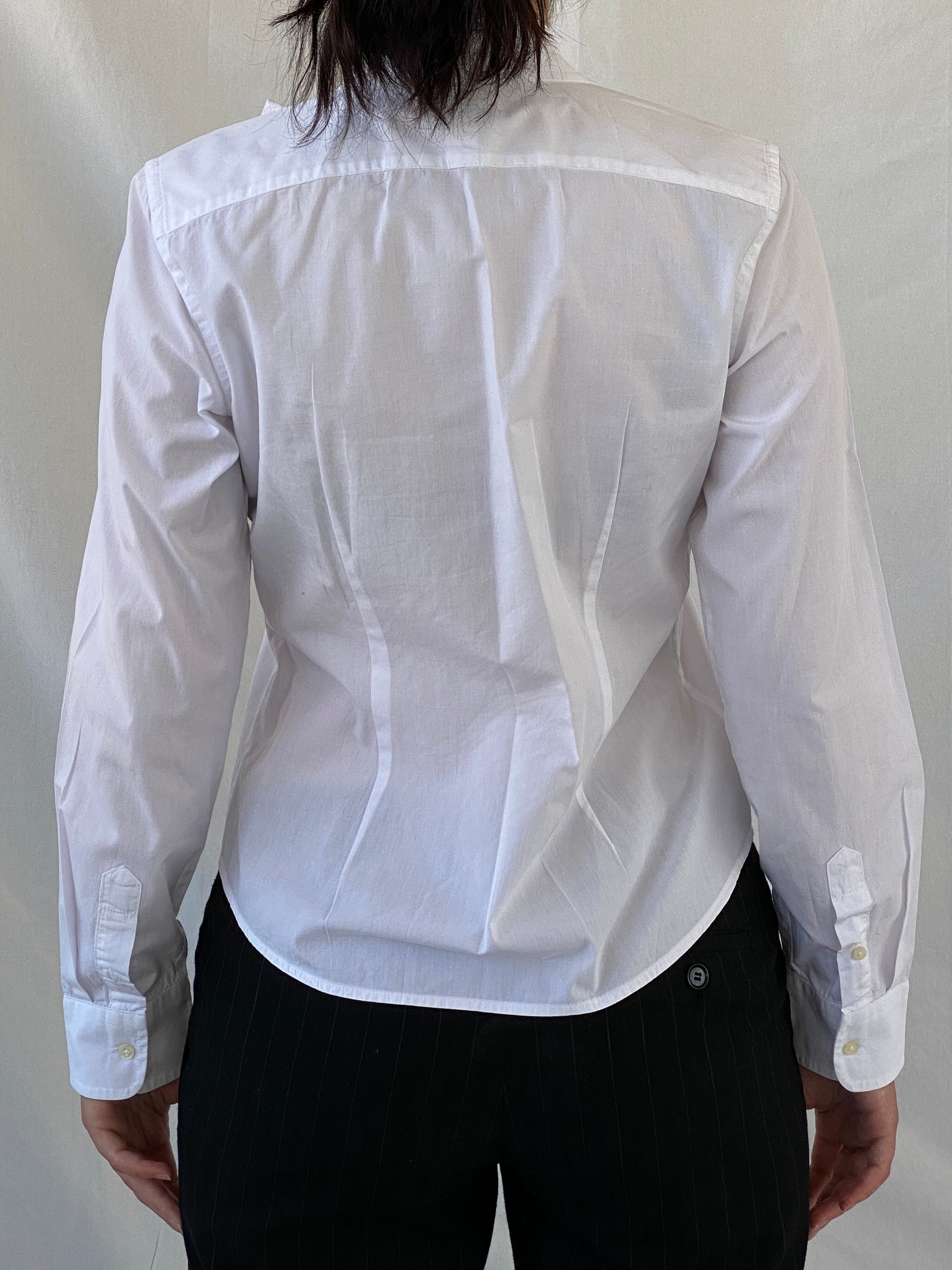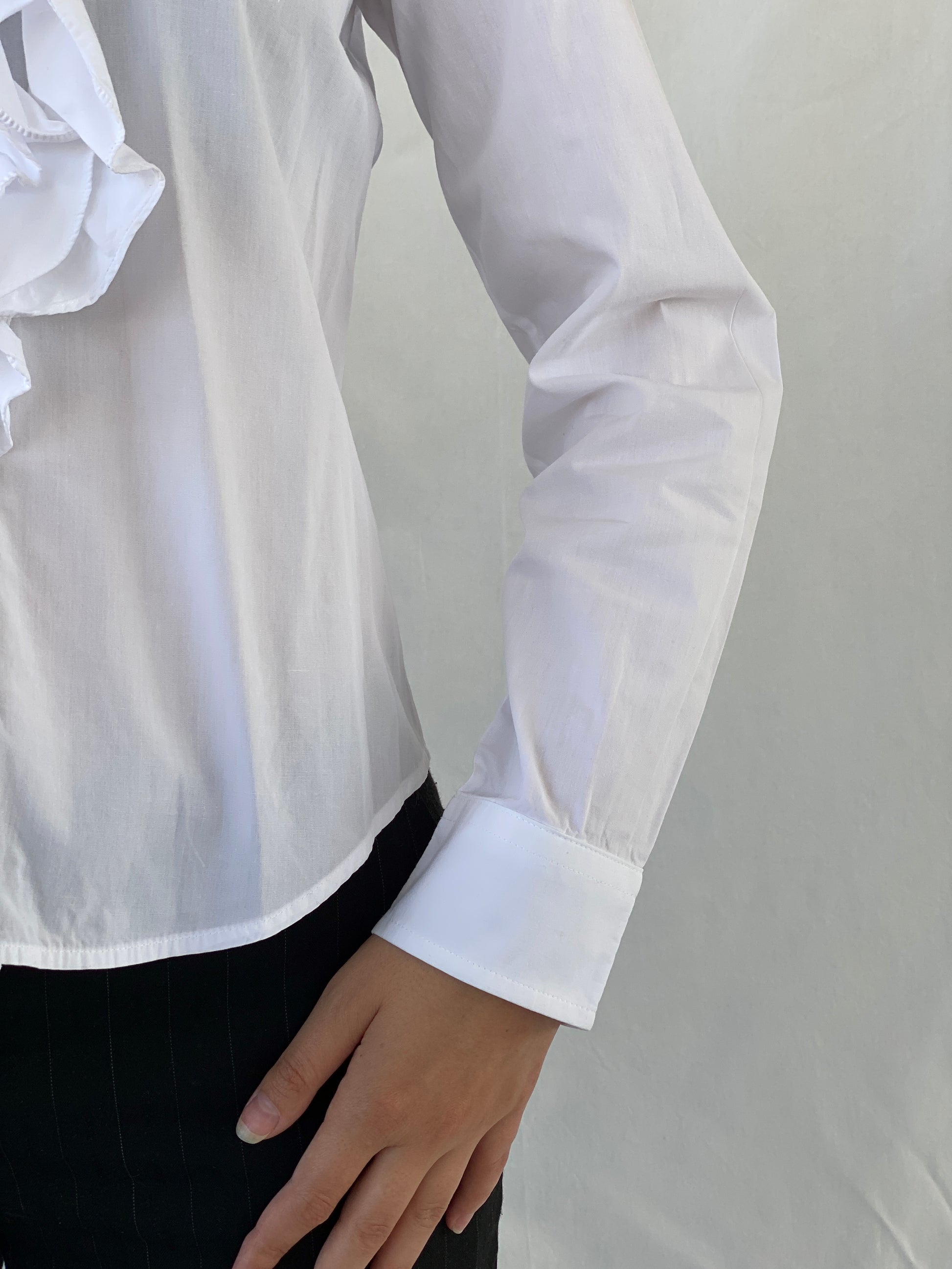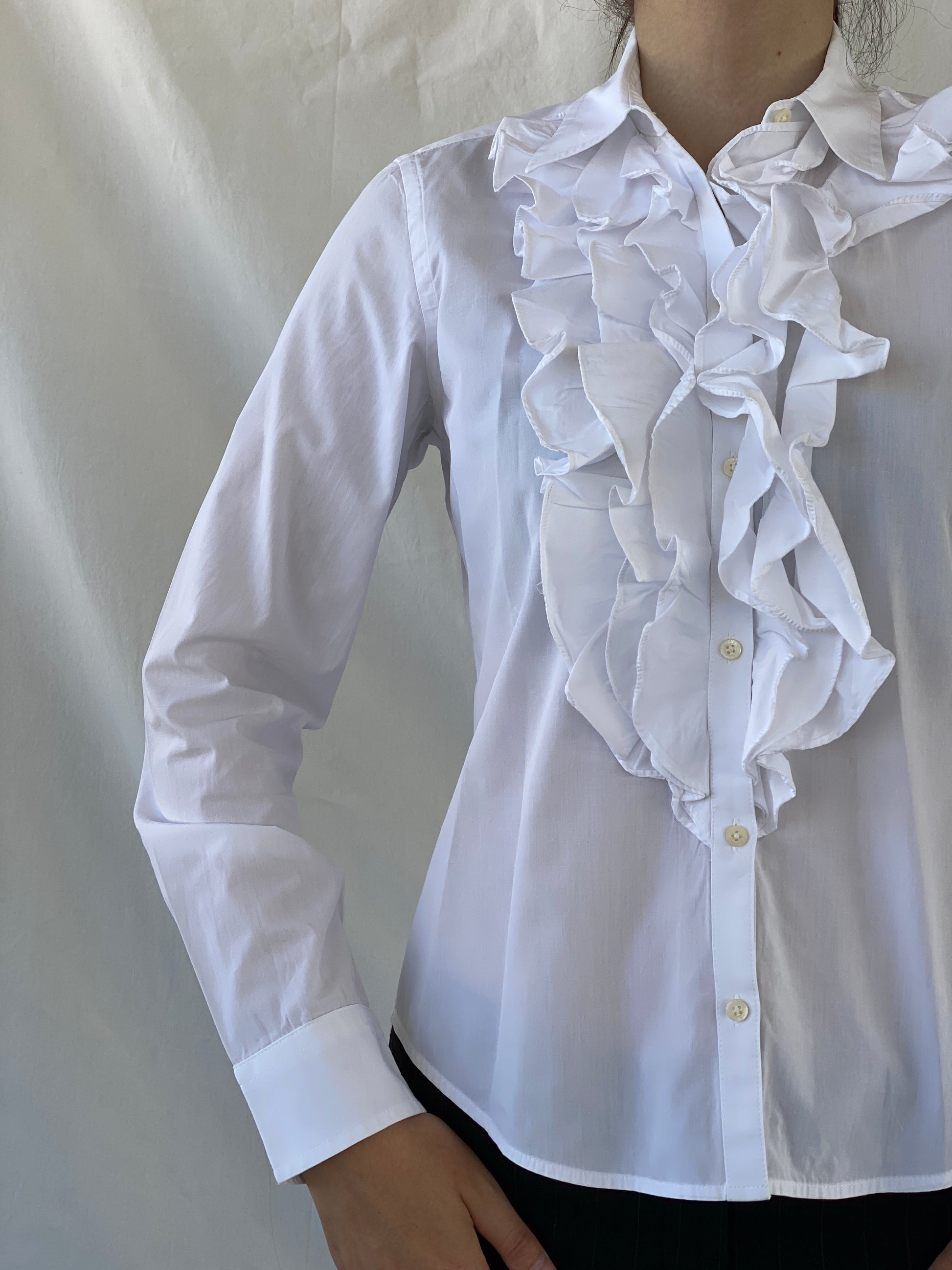 قميص مكتب لورين باي رالف لورين بأكمام طويلة وأزرار وبلوزة بيضاء مكشكشة - مقاس صغير
