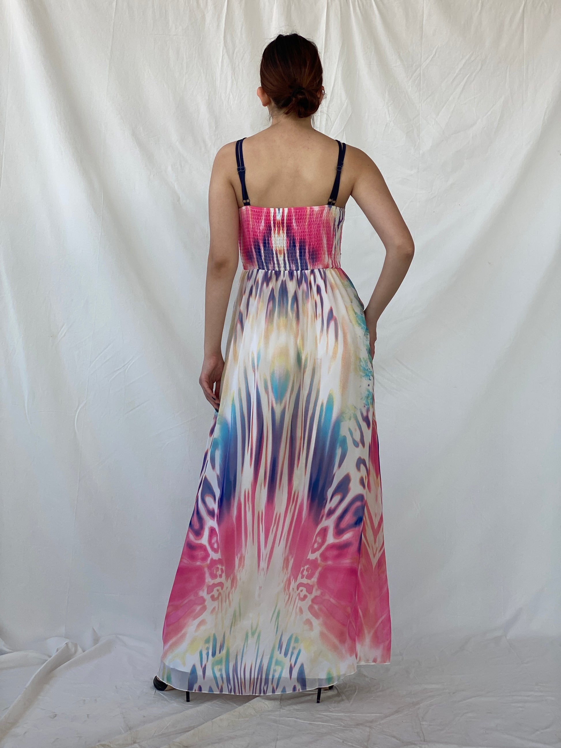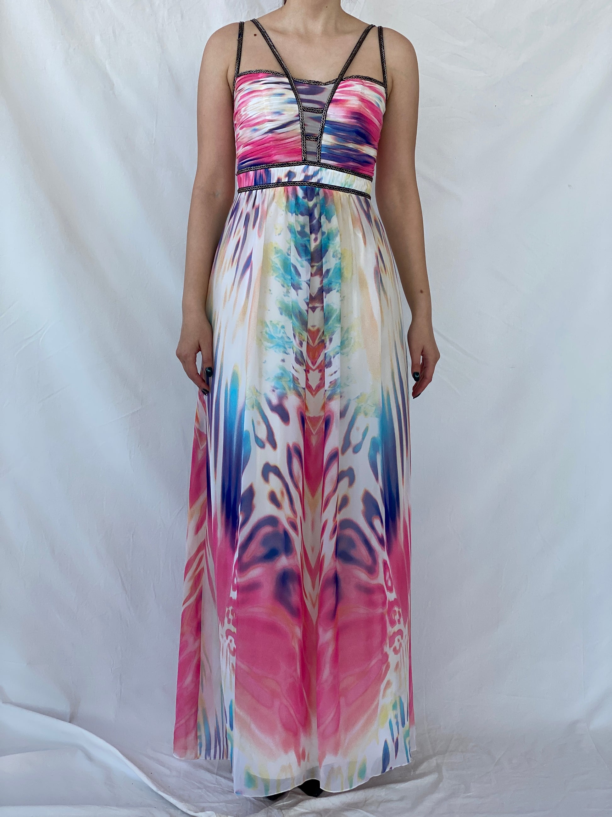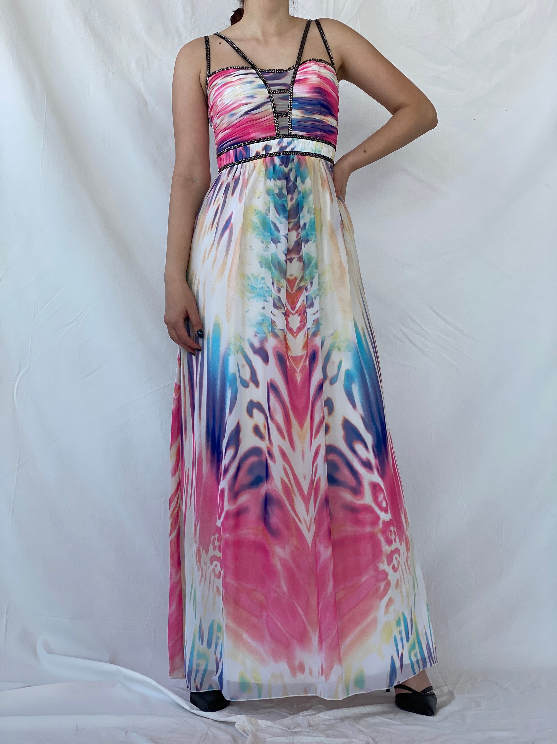 نقدم لكِ فستان NWT Little Mistress London Maxi Water Color المرصّع بالخرز. صُمّم هذا الفستان بطبعات تاي داي رائعة وصدر مُصمّم بالخرز، ومن المؤكد أنه سيخطف الأنظار. بفضل تصميمه الأنيق وزخارفه الدقيقة، ستشعرين بالثقة والأناقة في هذا الفستان الجديد كليًا.
