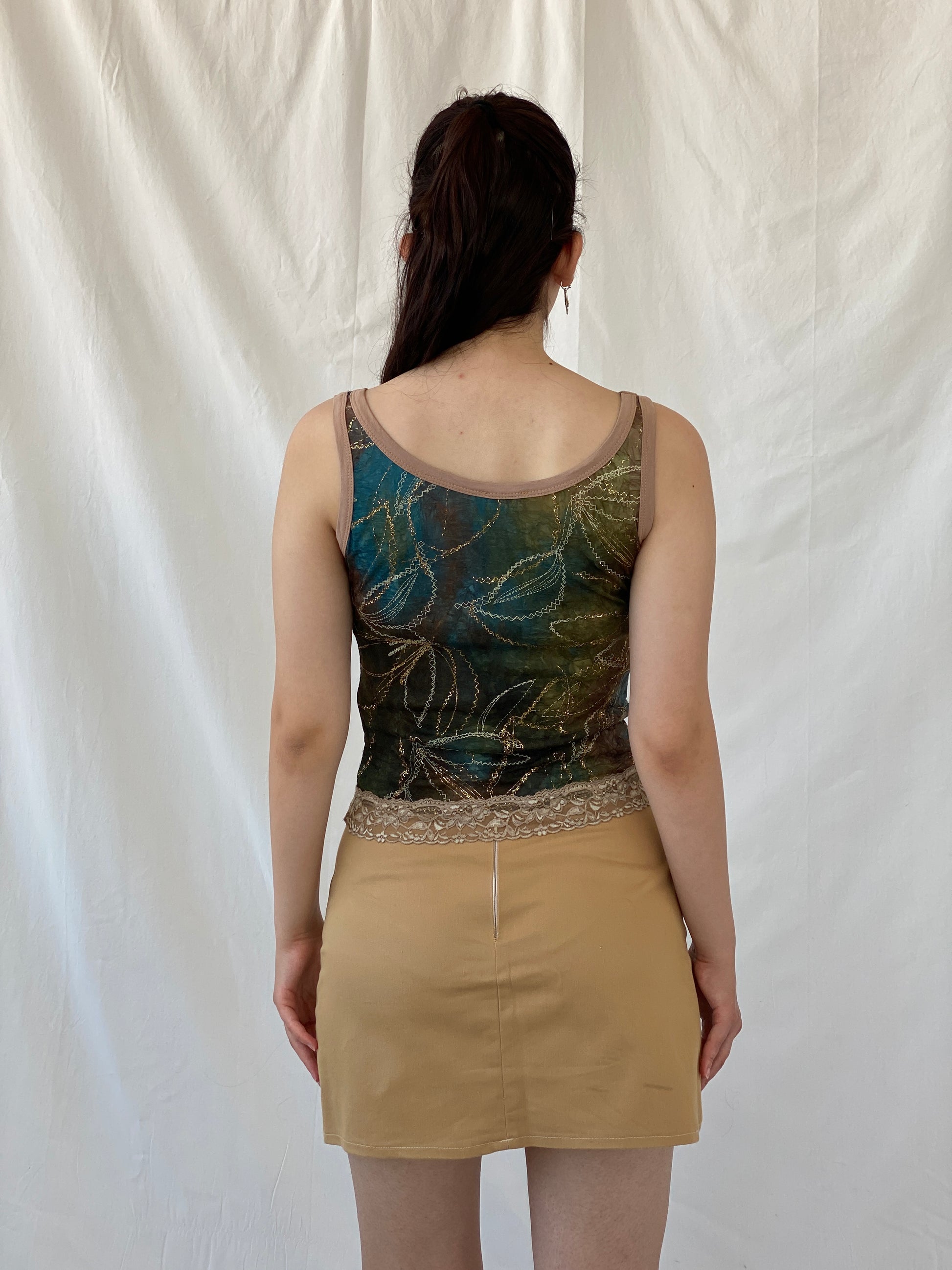 بلوزة لولو إتش باريس بدون أكمام بتصميم بوهو شفاف مطرز بشبكة مع حواف من الدانتيل بتصميم إندي فيري كور - مقاس صغير