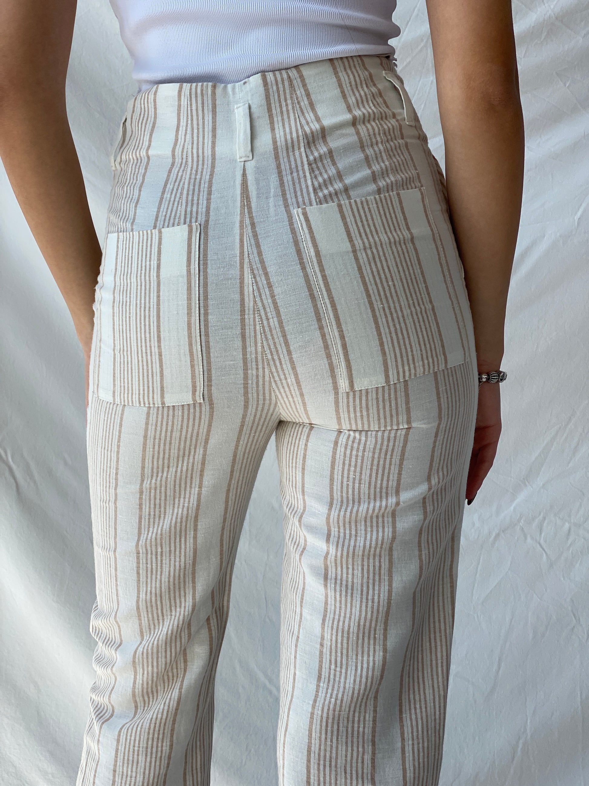 بنطال كابري صيفي مخطط من مزيج الكتان الأبيض والبيج من مارك كاين - مقاس صغير