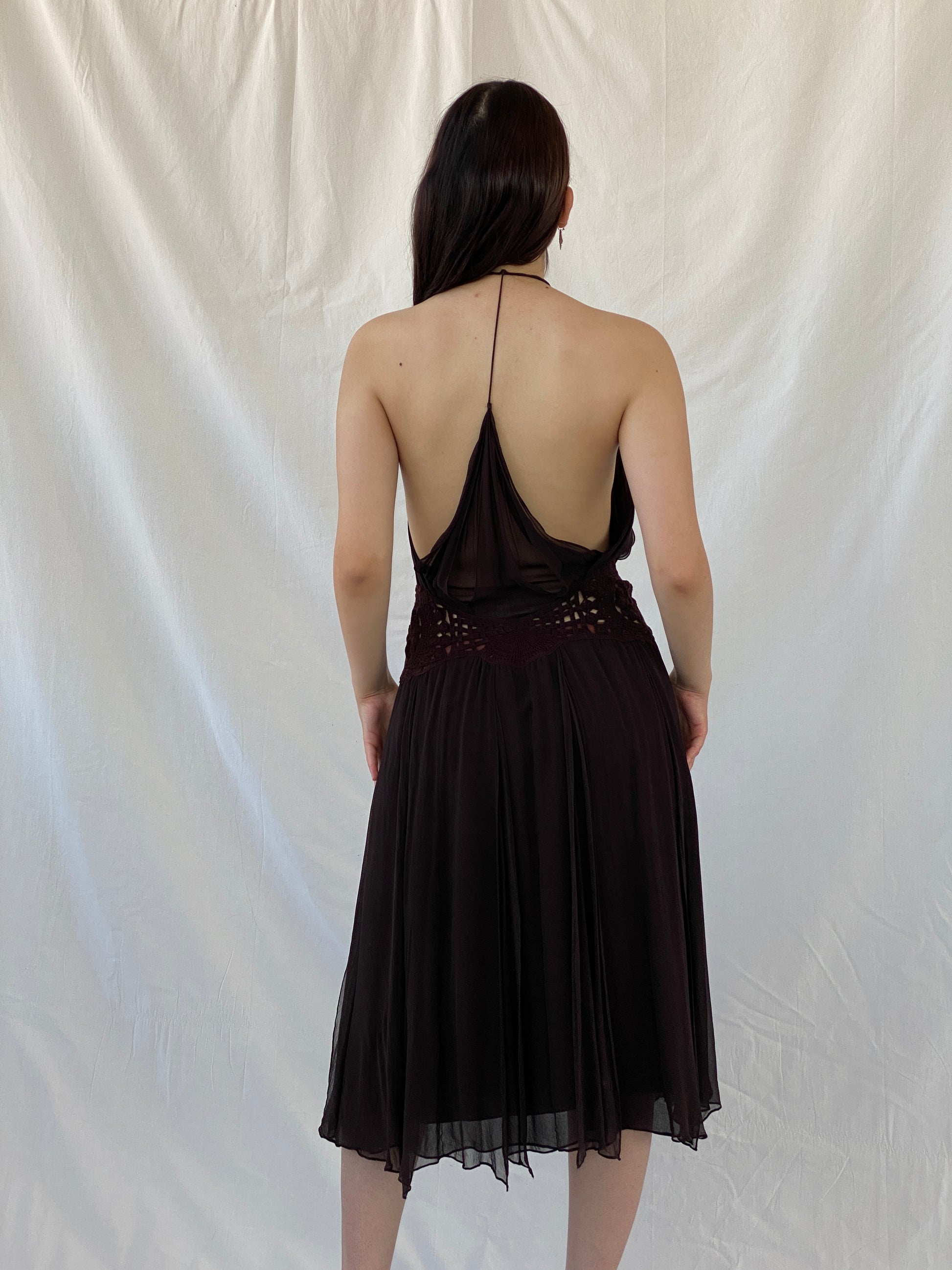 فستان ماكس أزريا الرائع من الحرير بتصميم هالتر متوسط الطول مع تفاصيل خصر كروشيه - مقاس متوسط