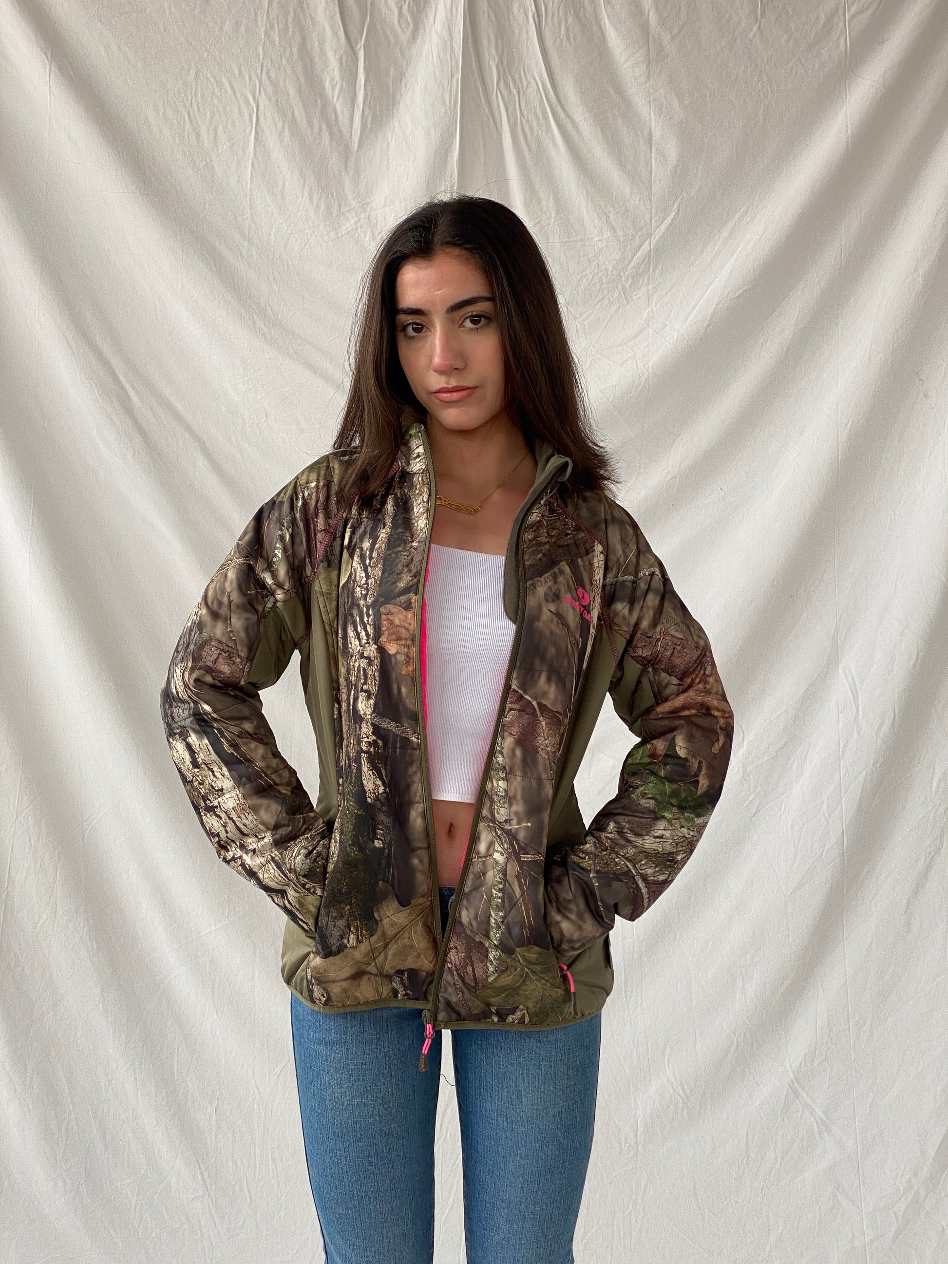 استمتعي بالدفء والجفاف مع جاكيت الصيد المنفوش النسائي من موسي أوك، الذي يتميز ببطانة وردية وطبعة مموهة، ما يجعله أنيقًا وعمليًا في آن واحد.