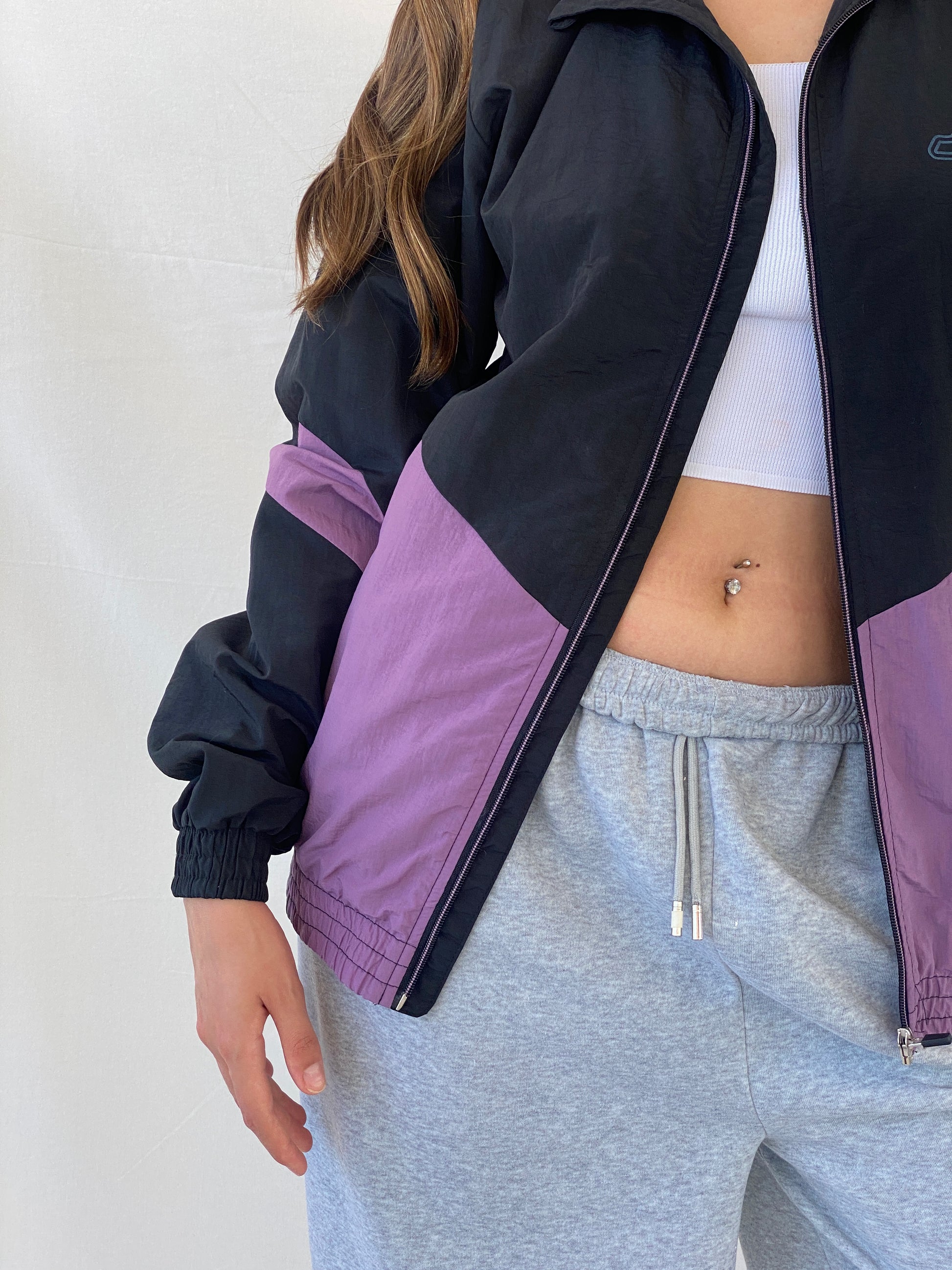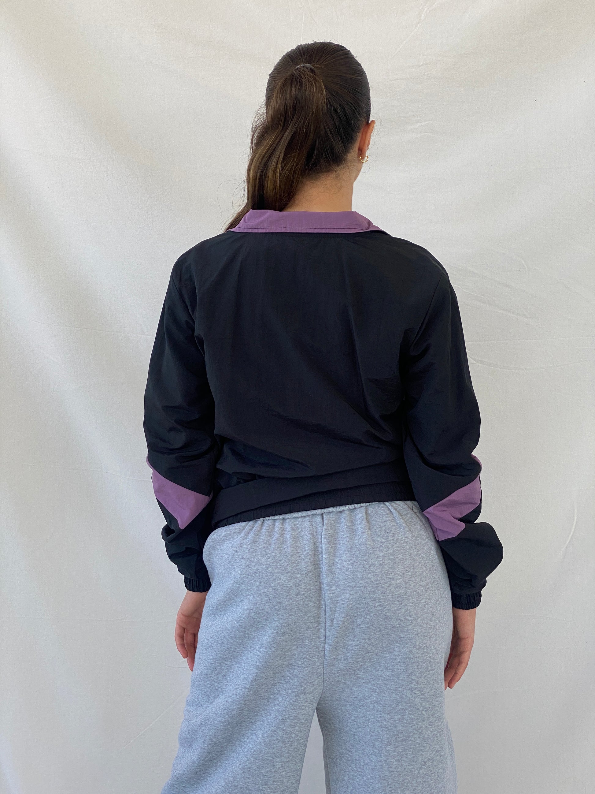 جاكيت ليكرز الرياضي المقاوم للرياح، الحصري من NBA، مصمم باللونين الأسود والبنفسجي الشهيرين، ويتميز بقصّة واسعة للنساء. حافظي على أناقتكِ وراحتكِ أثناء أي نشاط خارجي مع هذا الجاكيت الأساسي.