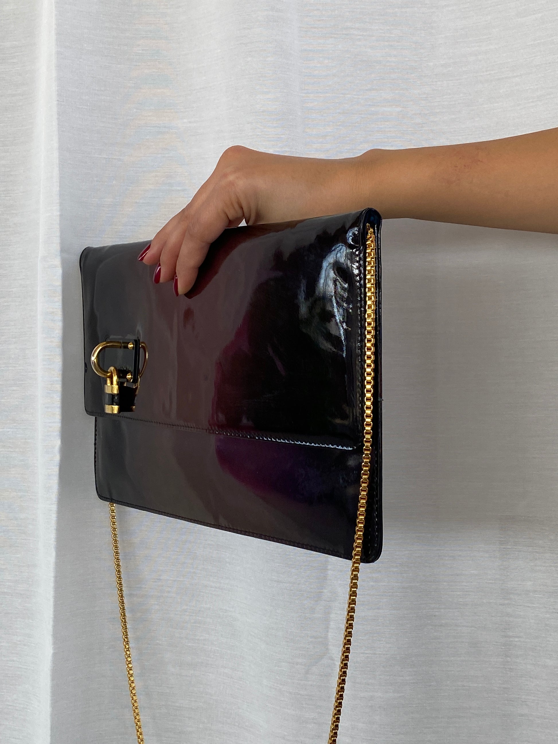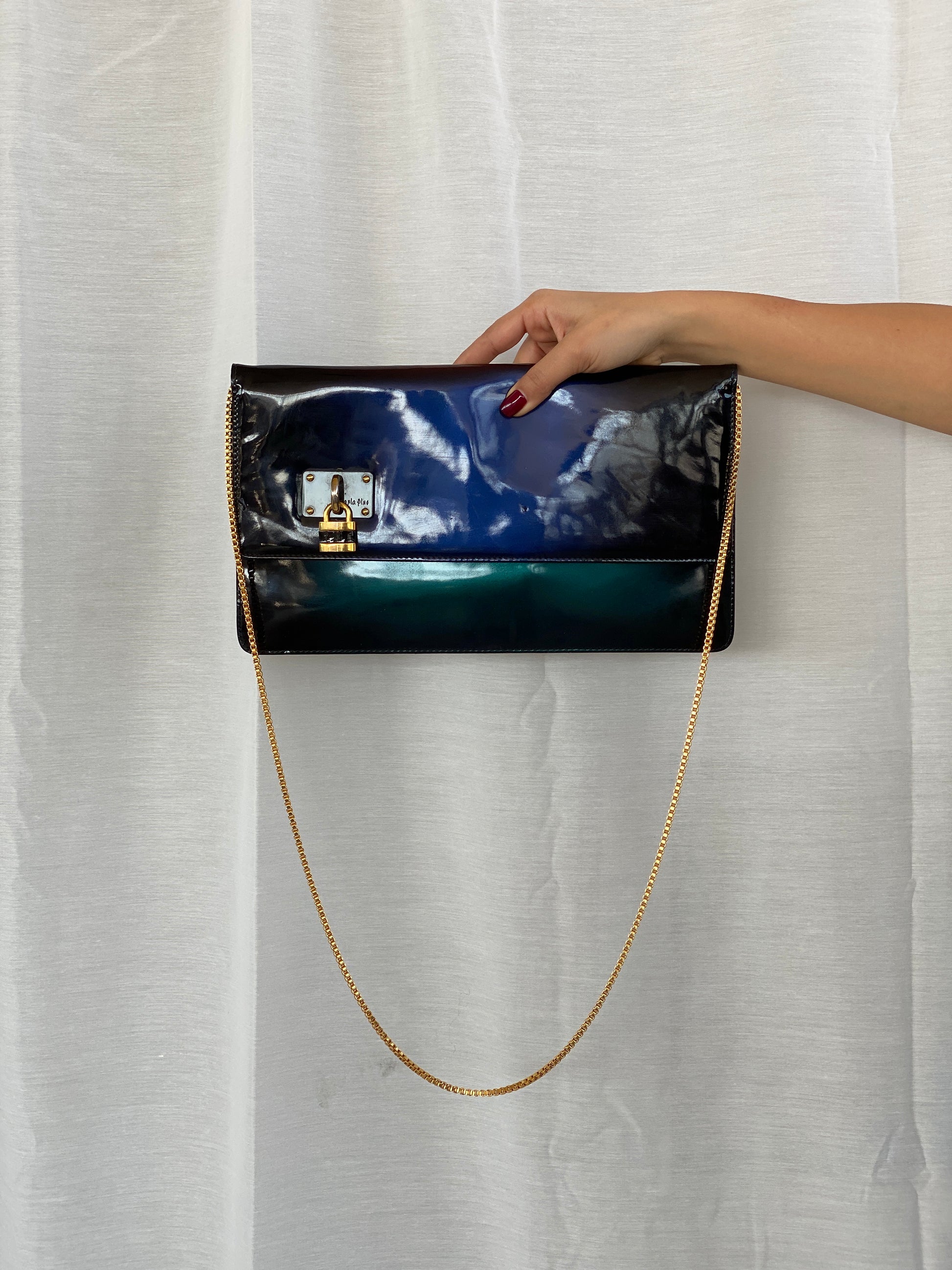 حقيبة كلاتش أنيقة من الجلد اللامع من NWT Maria Pino