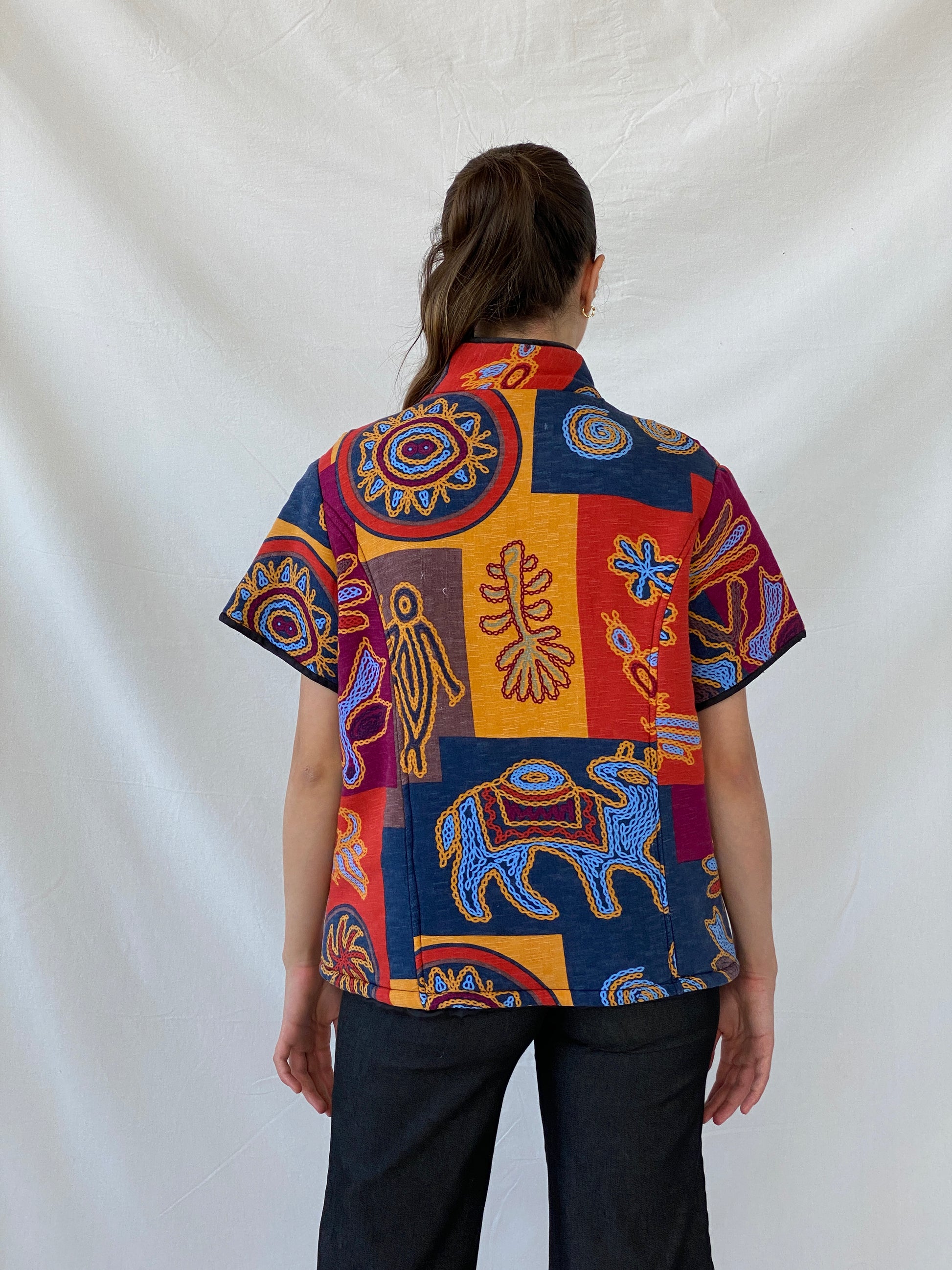 سترة بوليرو يابانية مبطنة متعددة الألوان بتصميم قبلي عرقي - مقاس كبير