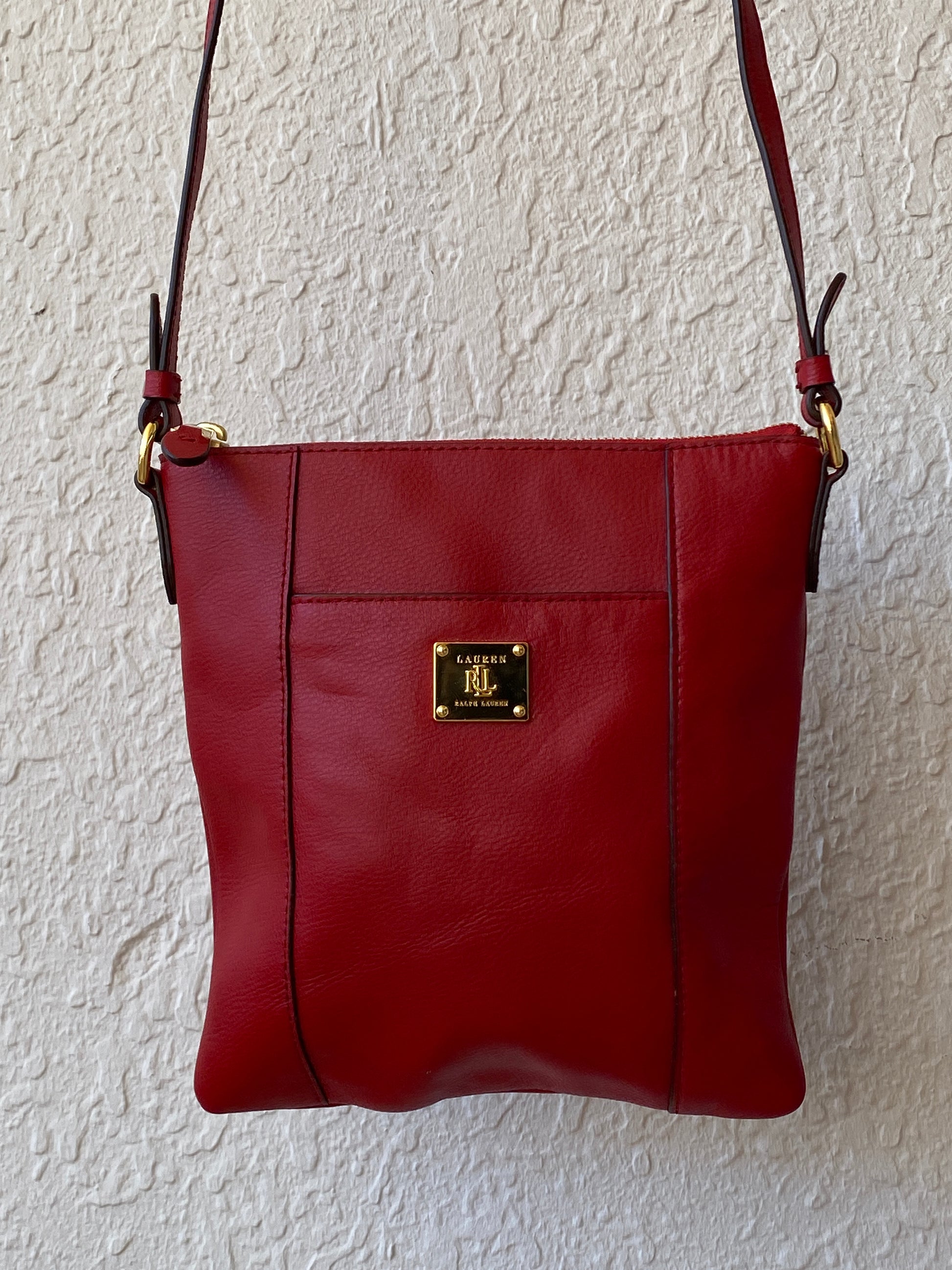حقيبة كروس بودي من لورين باي رالف لورين مصنوعة من الجلد الأحمر