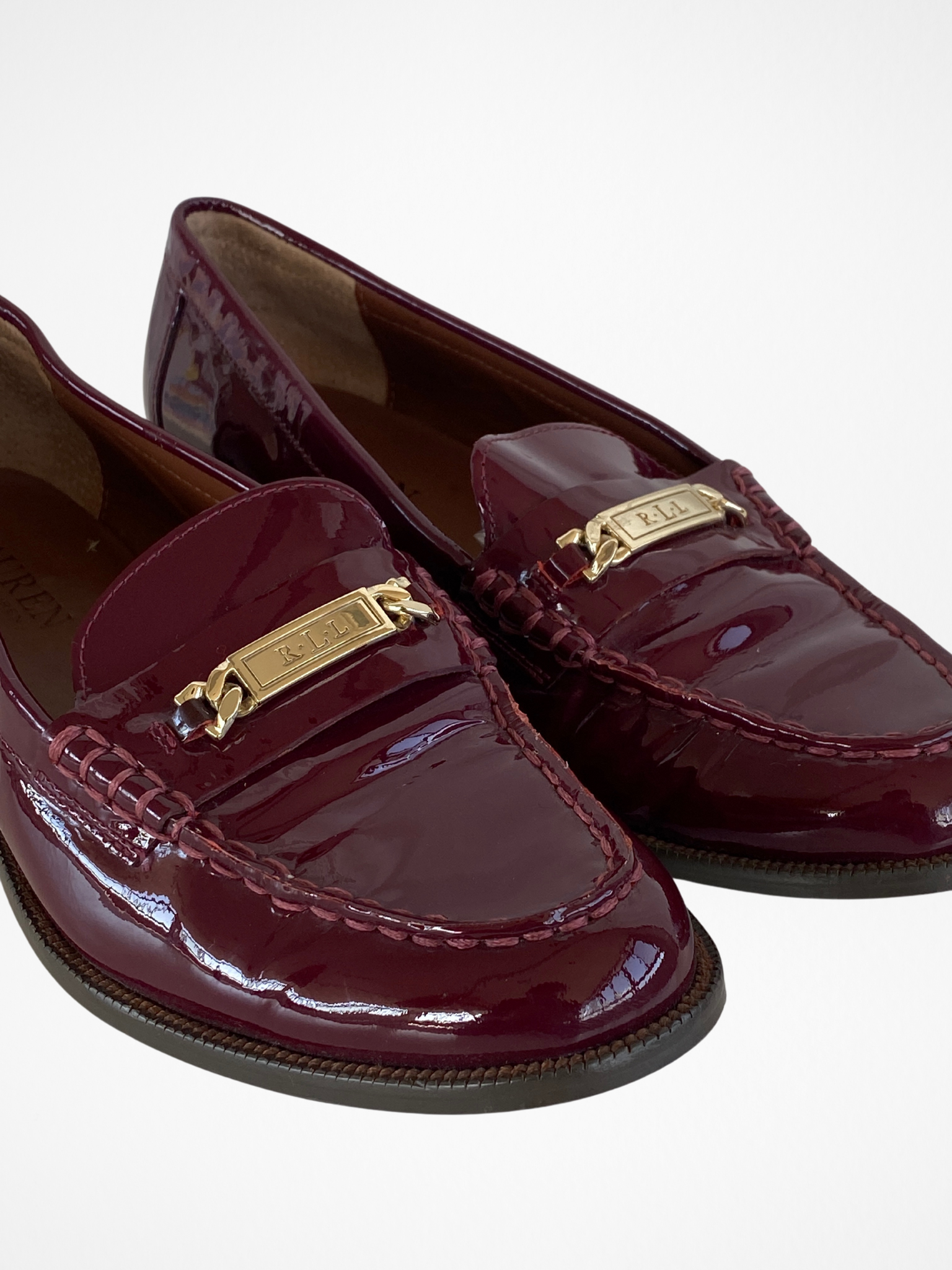 حذاء لوفرز بورجوندي من رالف لورين RLL مصنوع من الجلد اللامع المصقول - مقاس 38