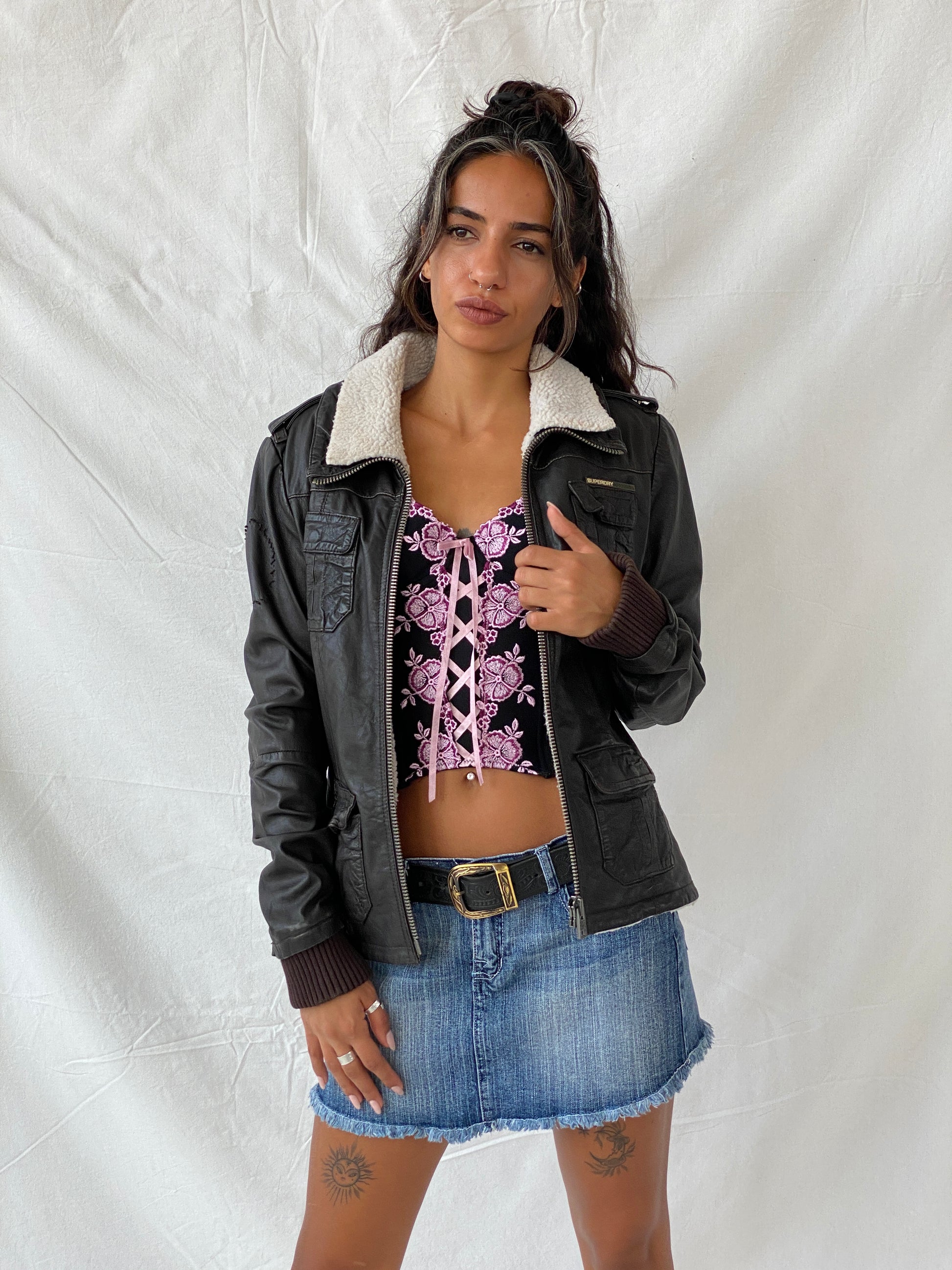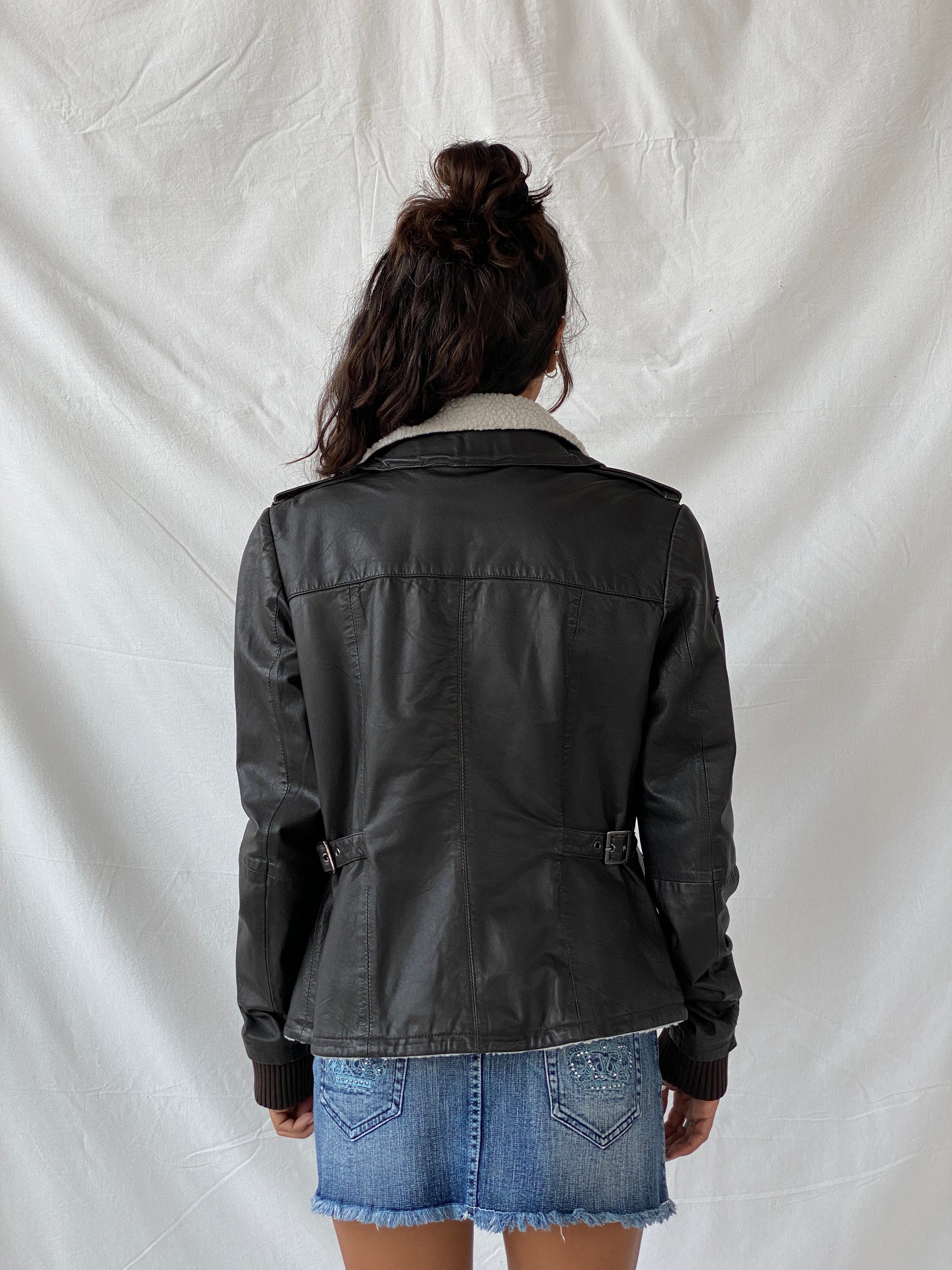 جاكيت سوبر دراي اليابان يونيون المصنوع من الجلد الطبيعي المبطن بشيربا - مقاس متوسط