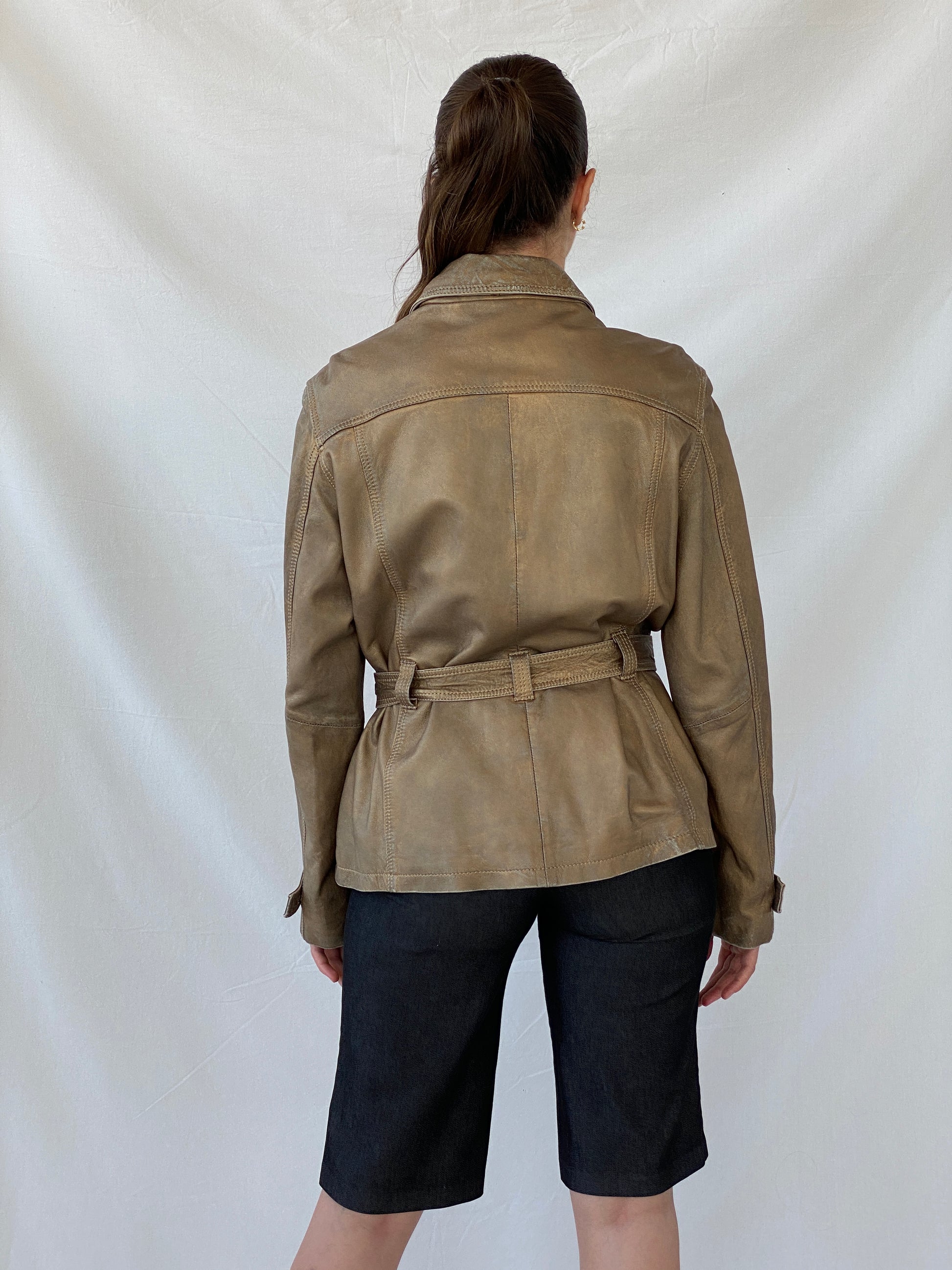 سترة نسائية من الجلد الطبيعي بتصميم عتيق باللون البرونزي المعدني من Rick Cardona New York - مقاس كبير
