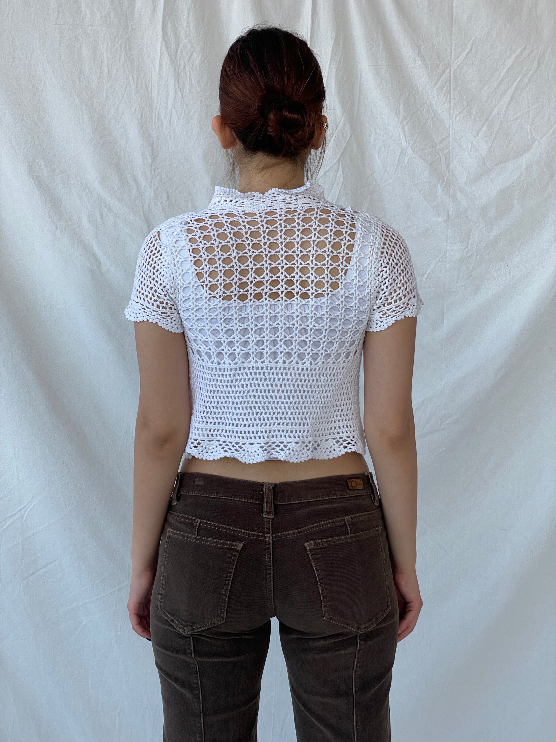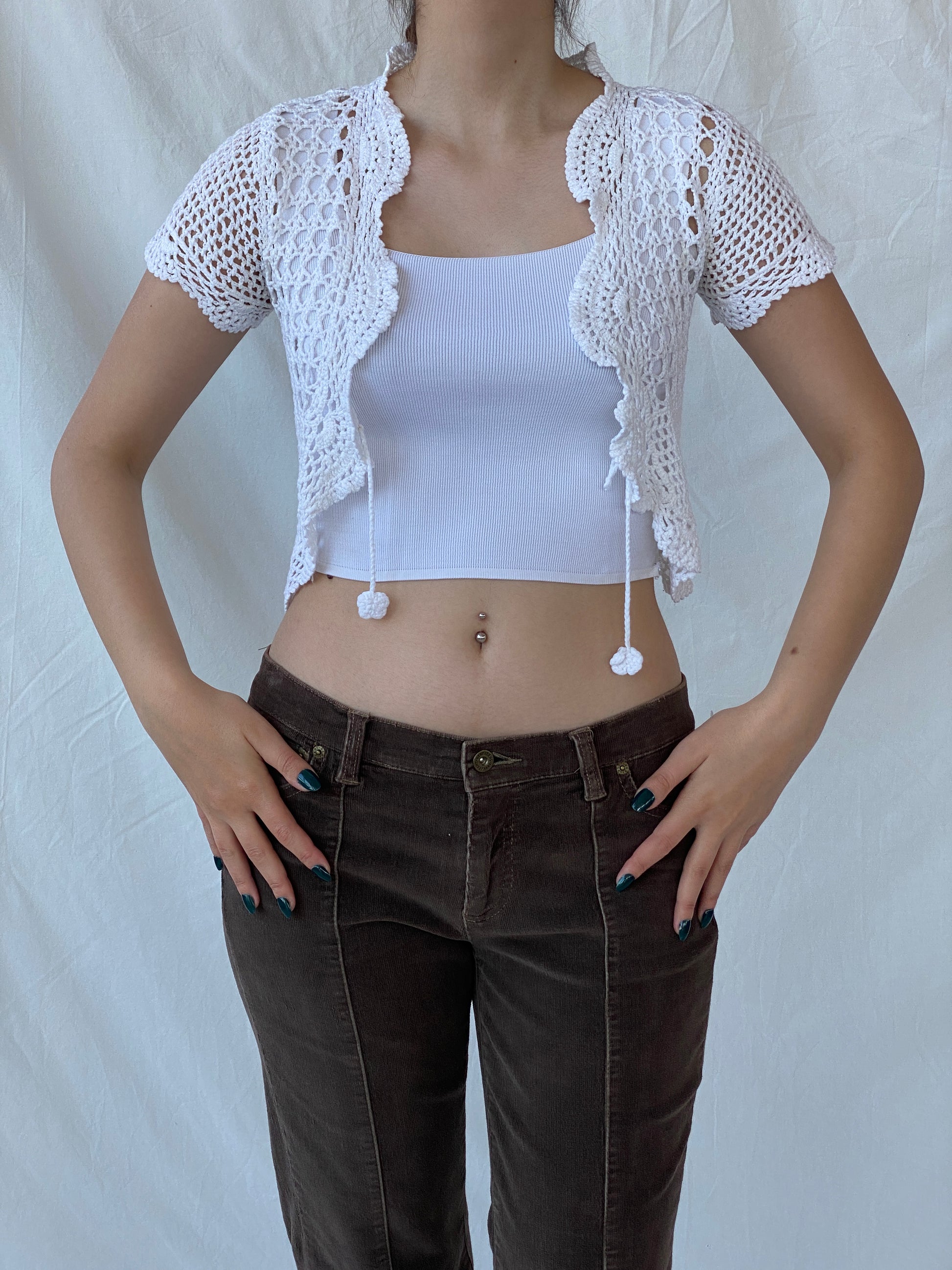 كارديجان كروشيه أبيض قصير من Y2K Ruby Girl للنساء - مقاس صغير