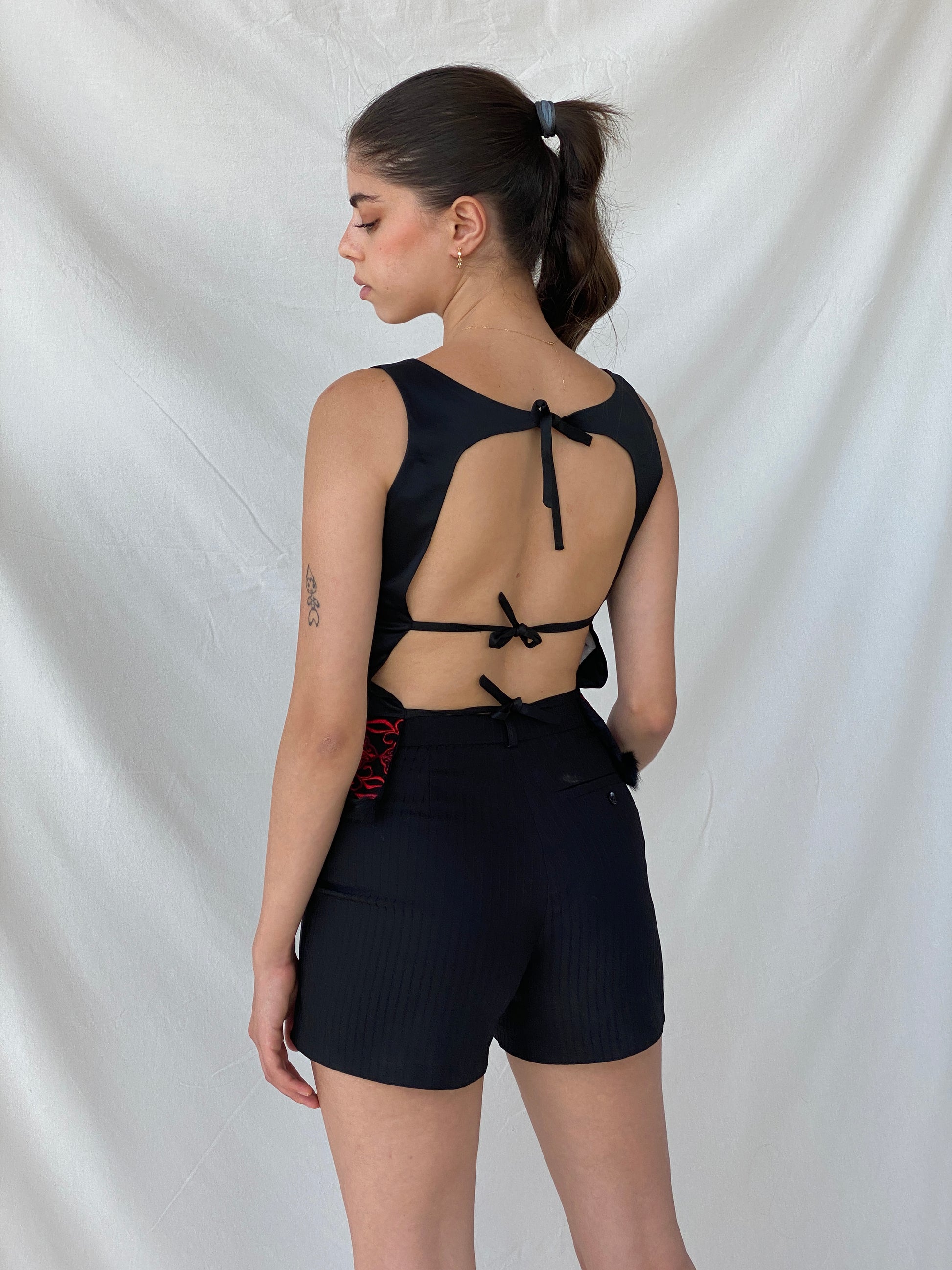 Sinéquanone Paris بلوزة مطرزة باللونين الأسود والأحمر مفتوحة الظهر - M