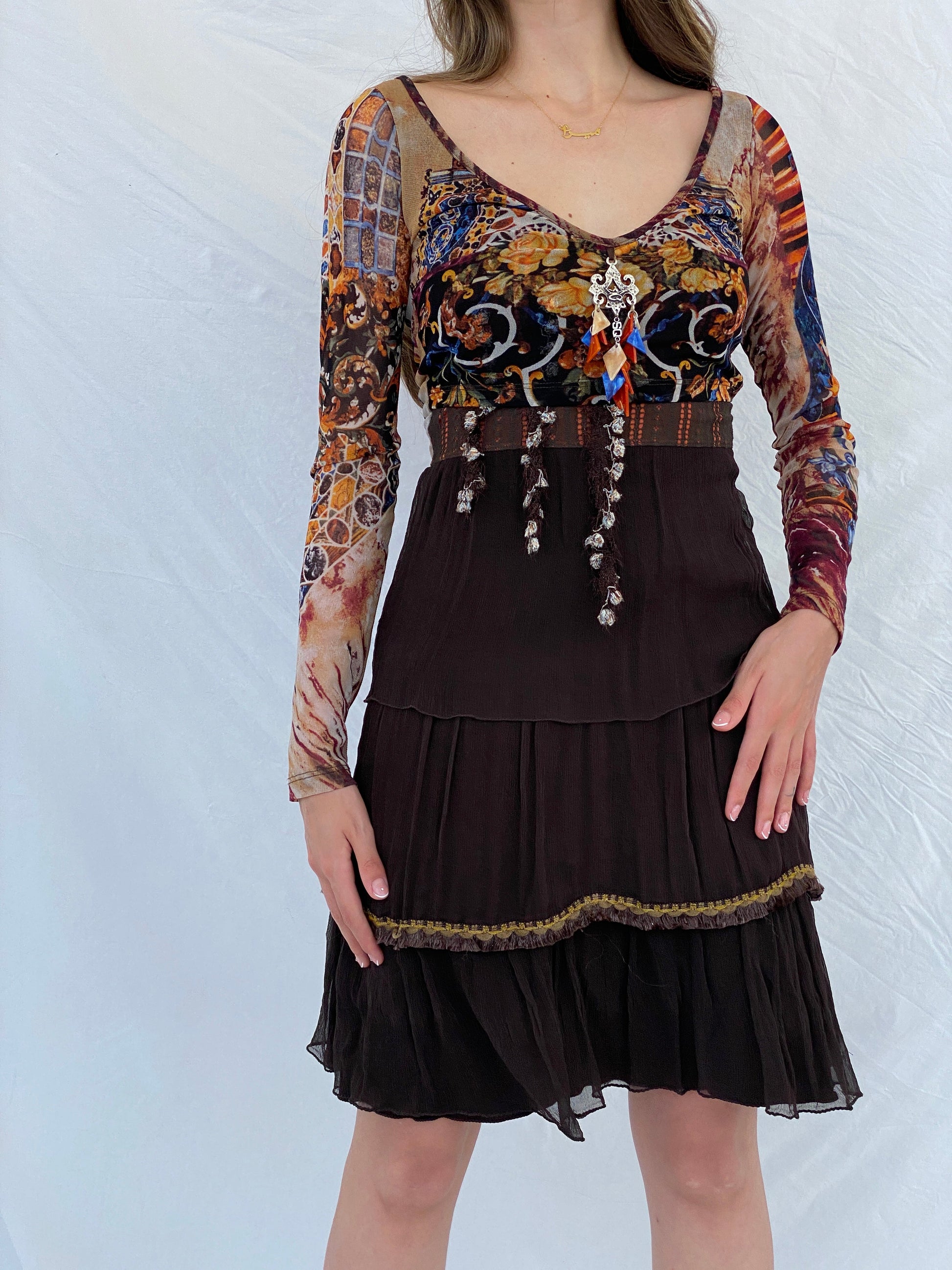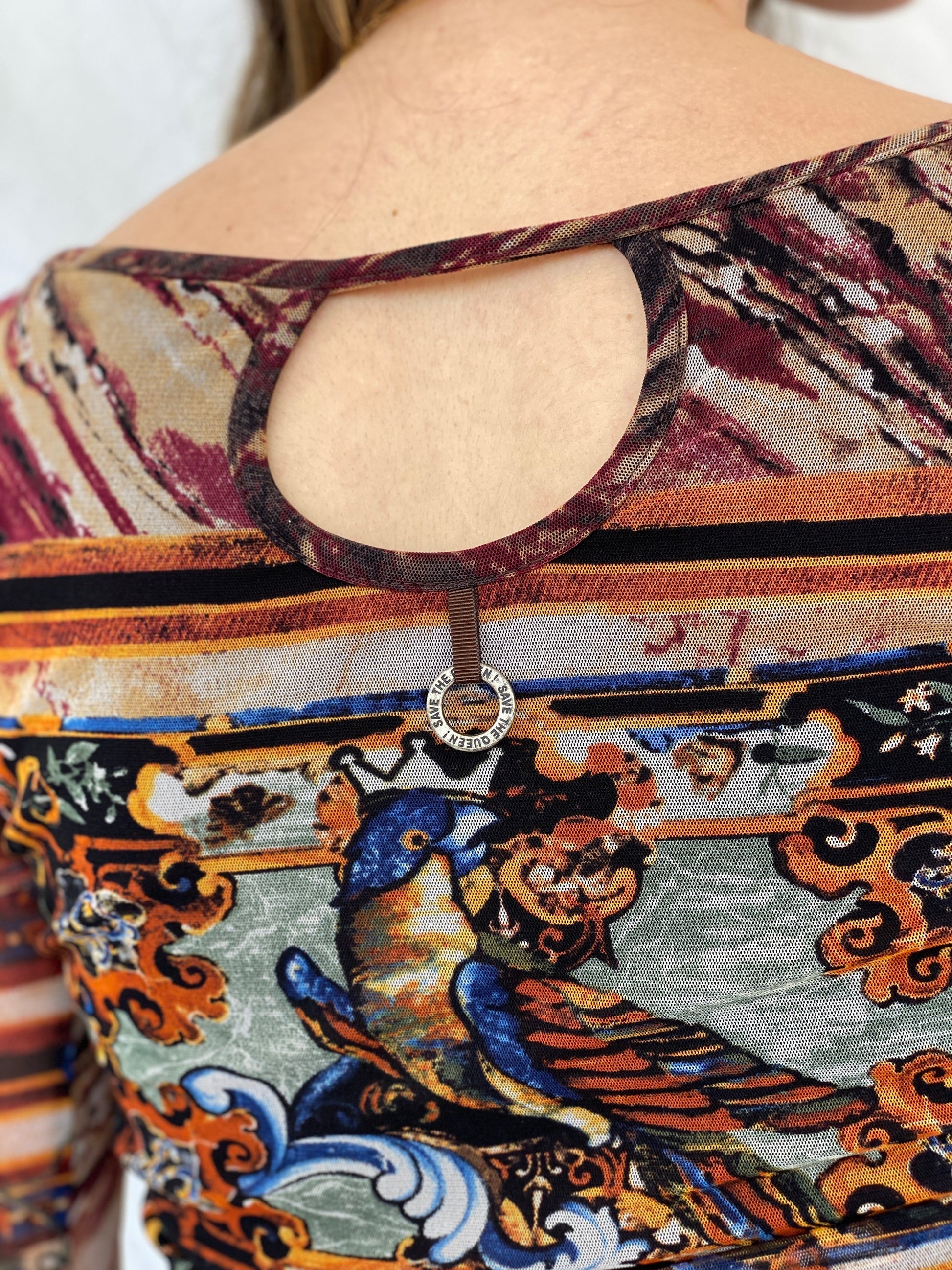 فستان "أنقذي الملكة" متوسط الطول، بتصميمه المتقن، بطبعة بنية مميزة وتفاصيل أنيقة من التول، سيجعلكِ محط الأنظار. تألقي بثقة لا توصف مع هذه القطعة الفريدة واللافتة للأنظار في مناسبتكِ القادمة.