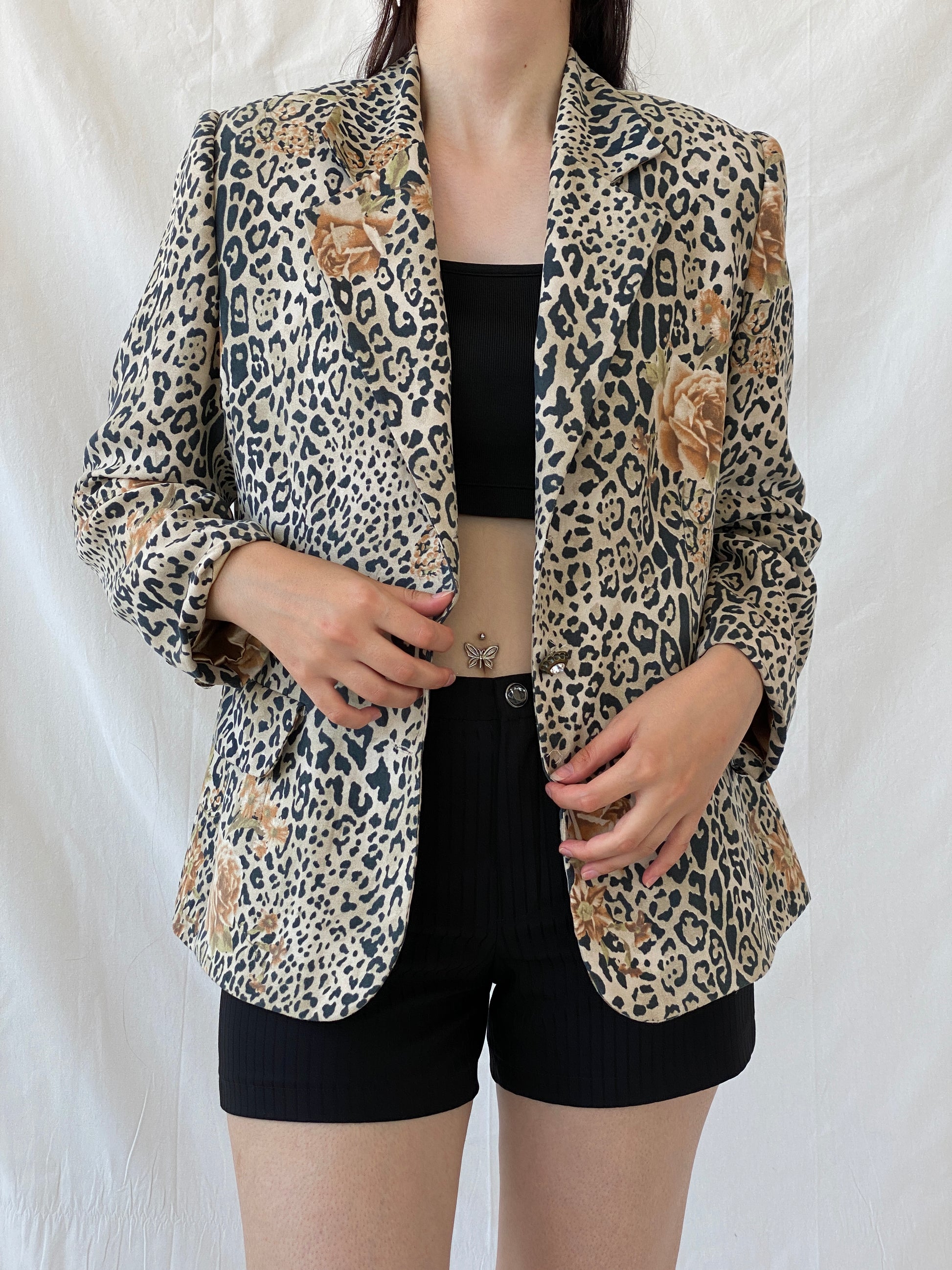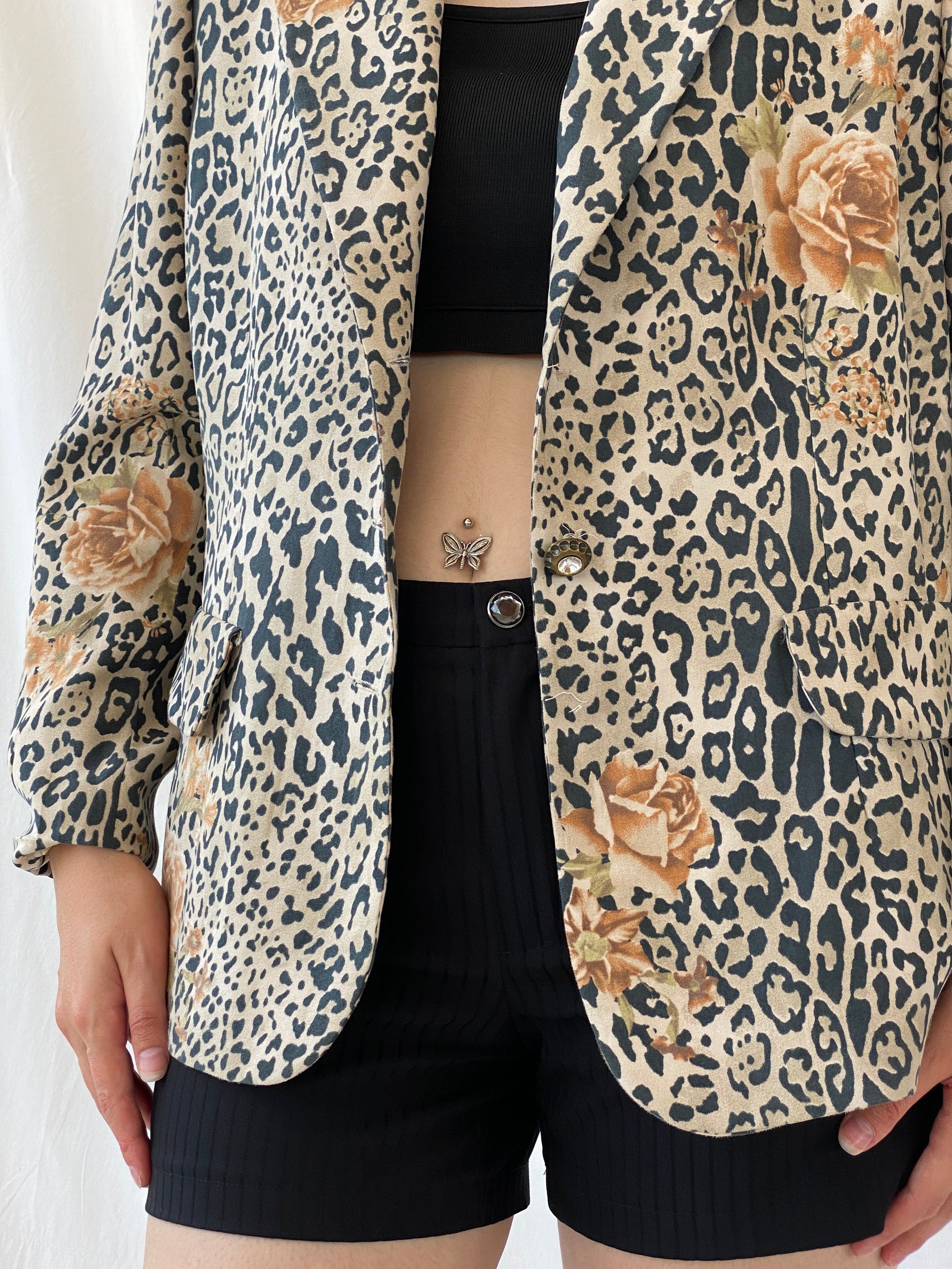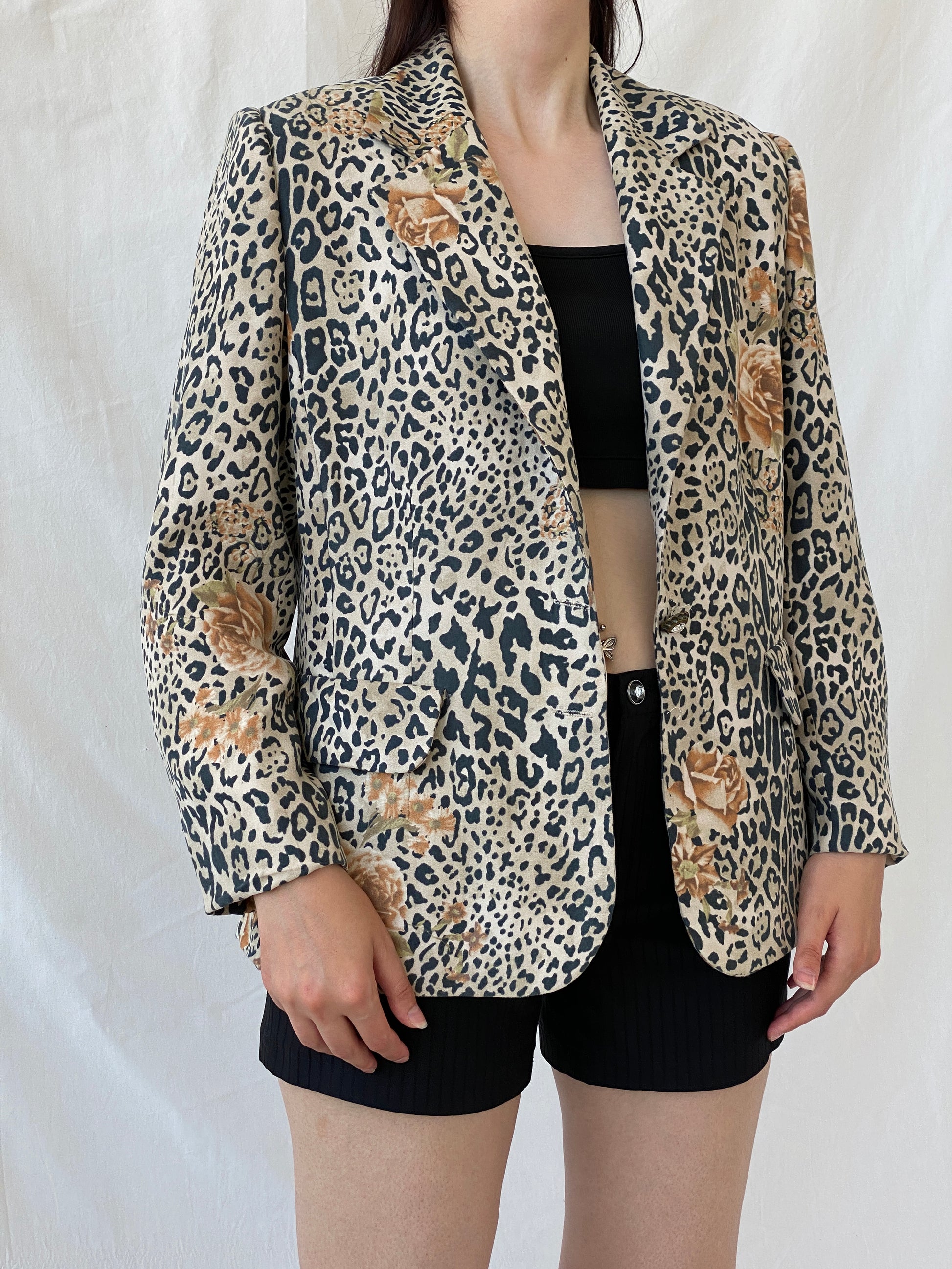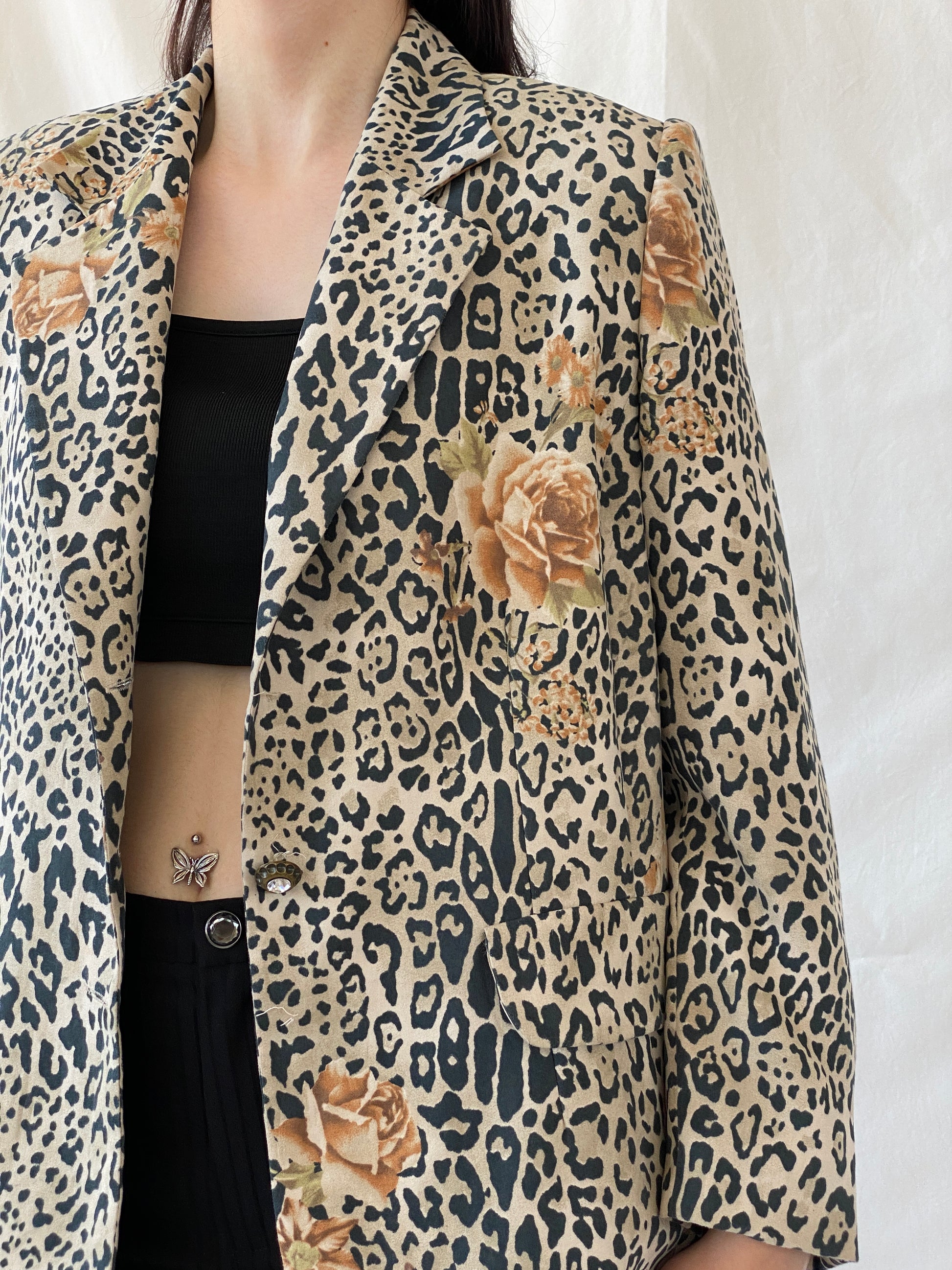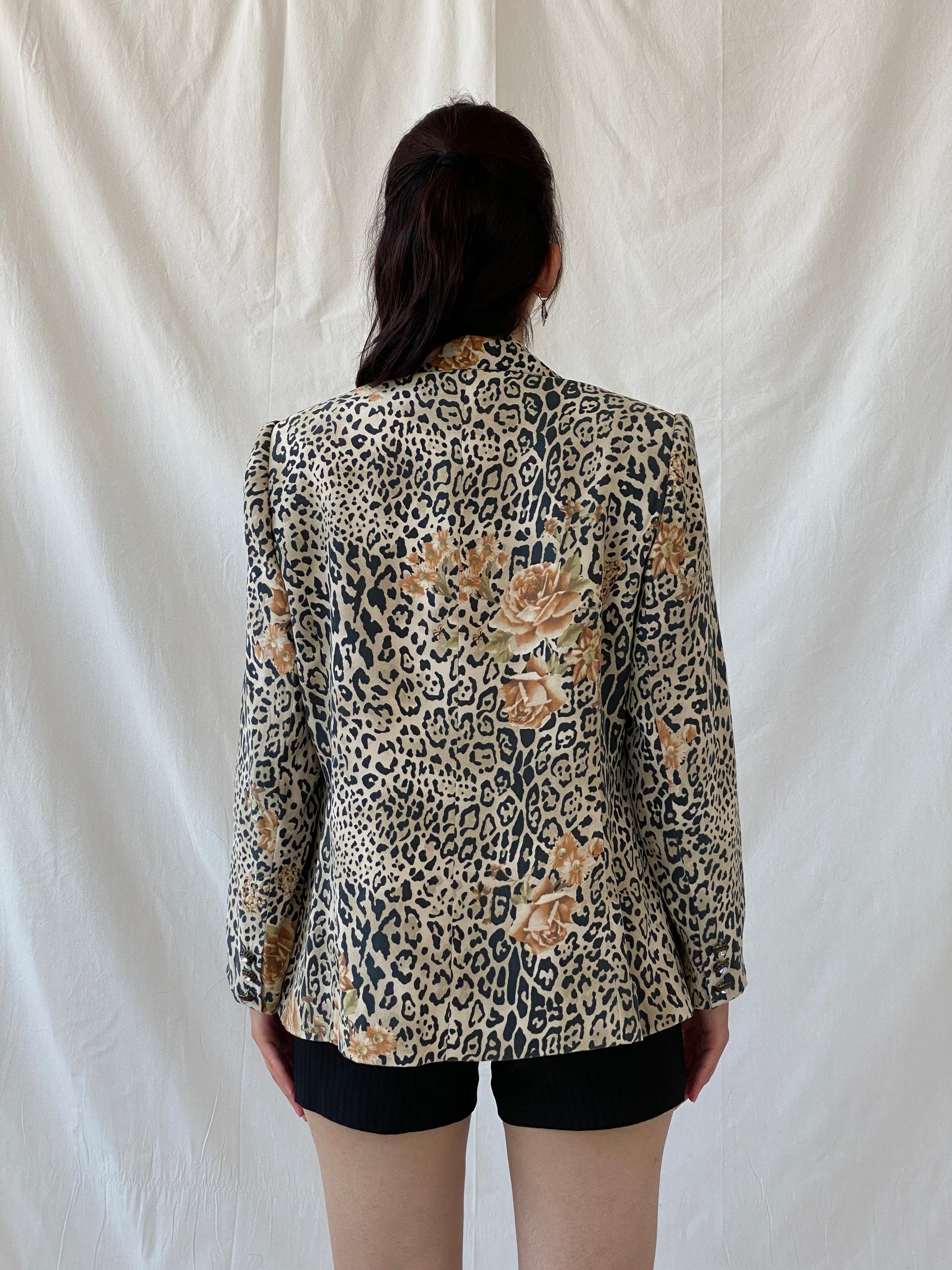 سترة بليزر بنية سوداء بطبعة جلد الفهد من SELMA - مقاس XL