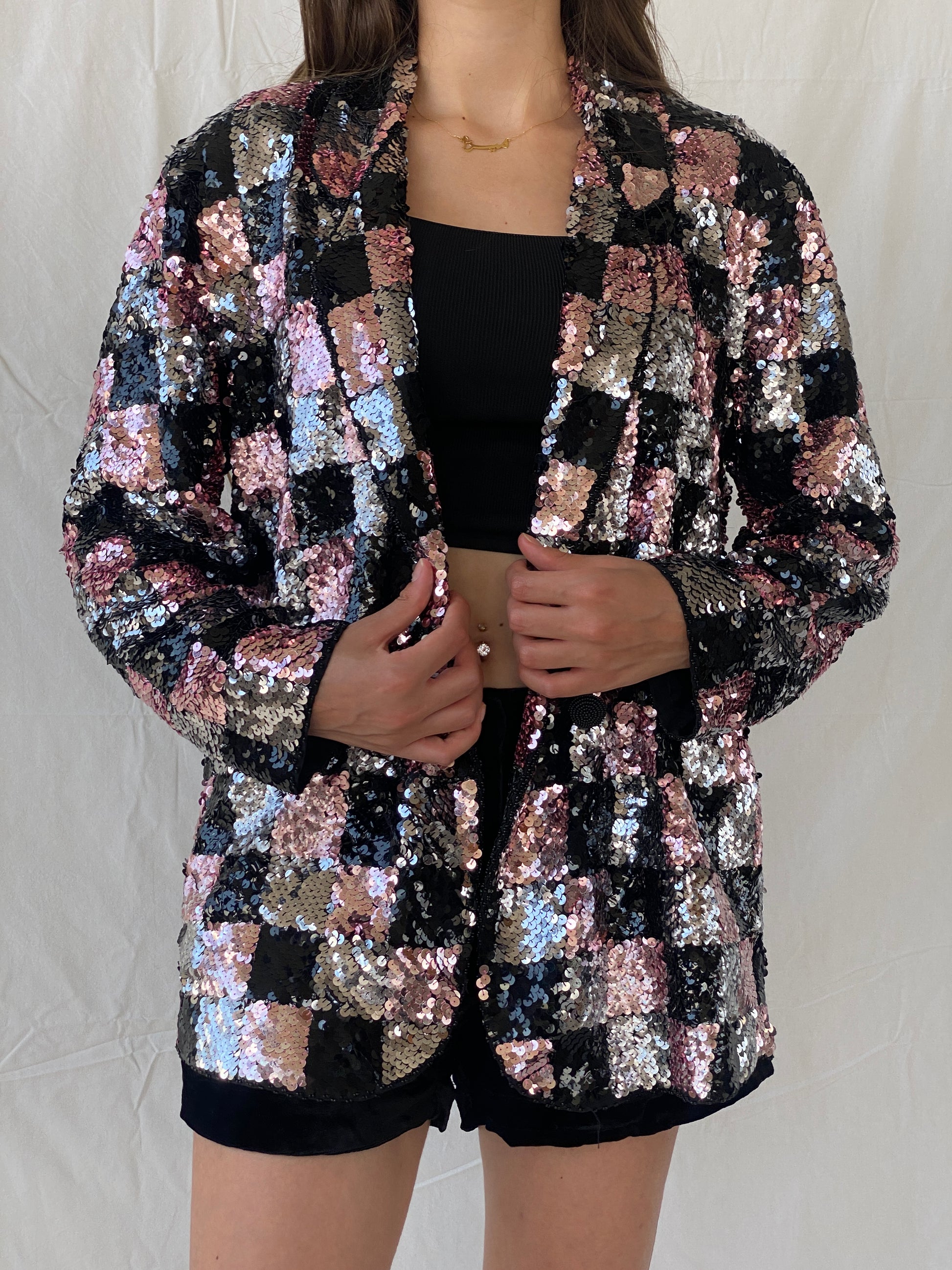 سترة حفلات من Jris باللونين الأسود والوردي والفضي مزينة بالترتر - مقاس M