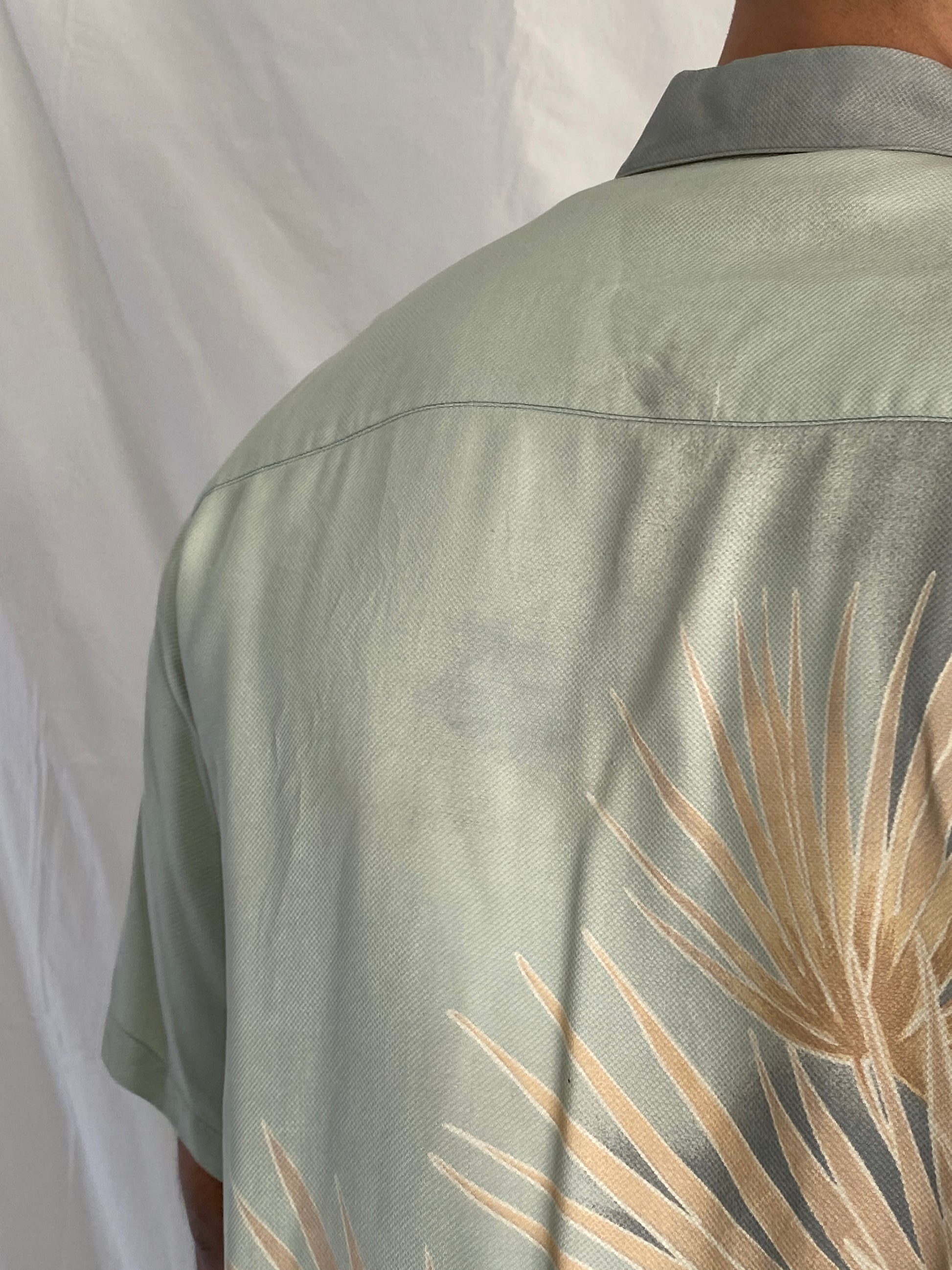 قميص ألوها هاواي للرجال من توري ريتشارد هونولولو، مصنوع من مزيج الحرير، ومزين بأوراق النخيل الاستوائية باللون الأخضر المريمية - مقاس كبير