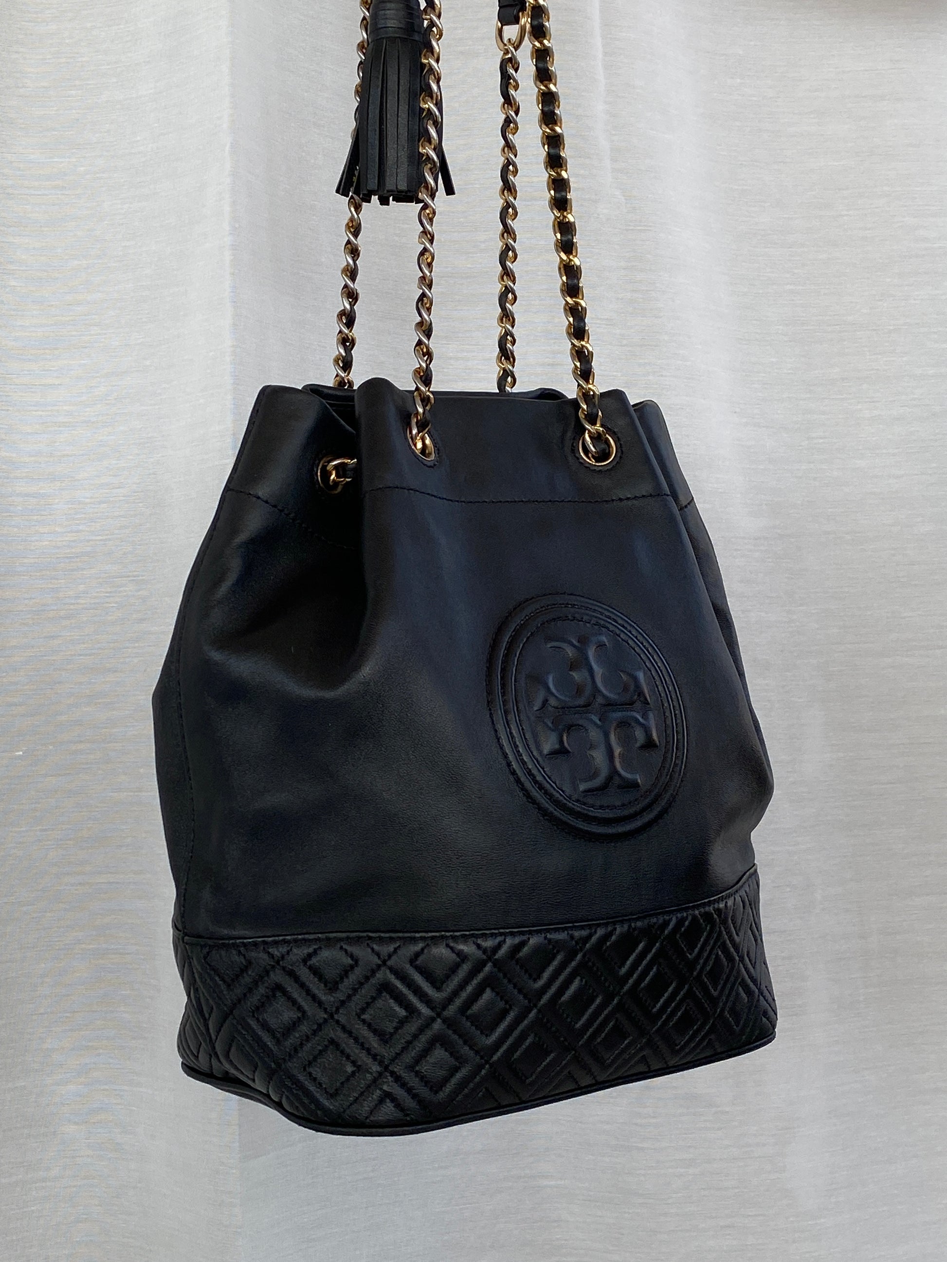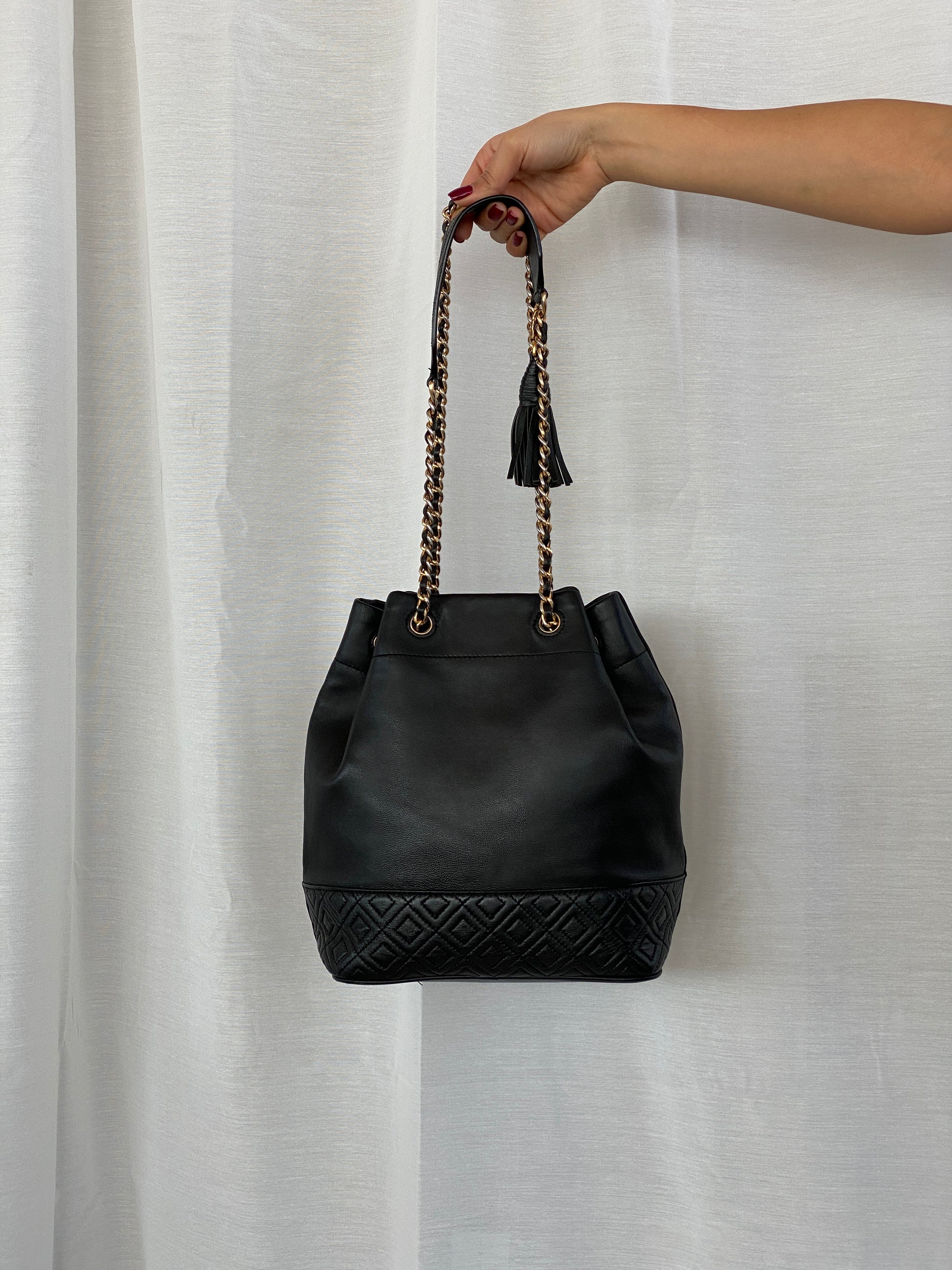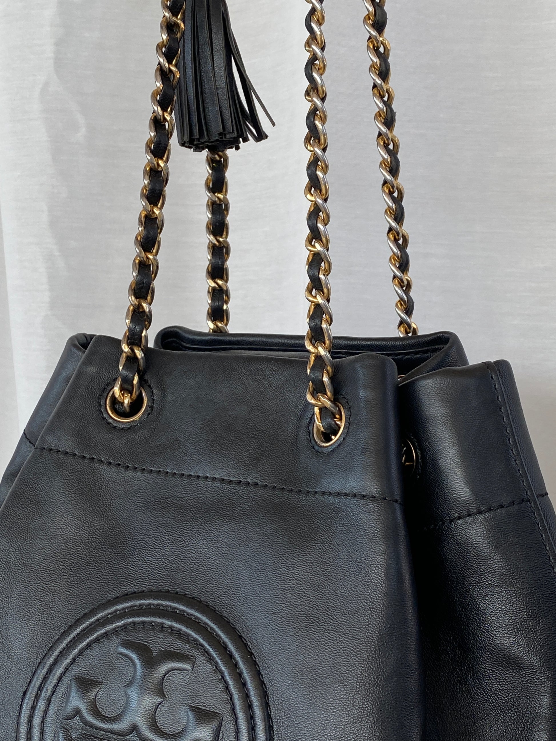 حقيبة كتف صغيرة من الجلد الأسود من توري بيرش فليمنج مع سلسلة