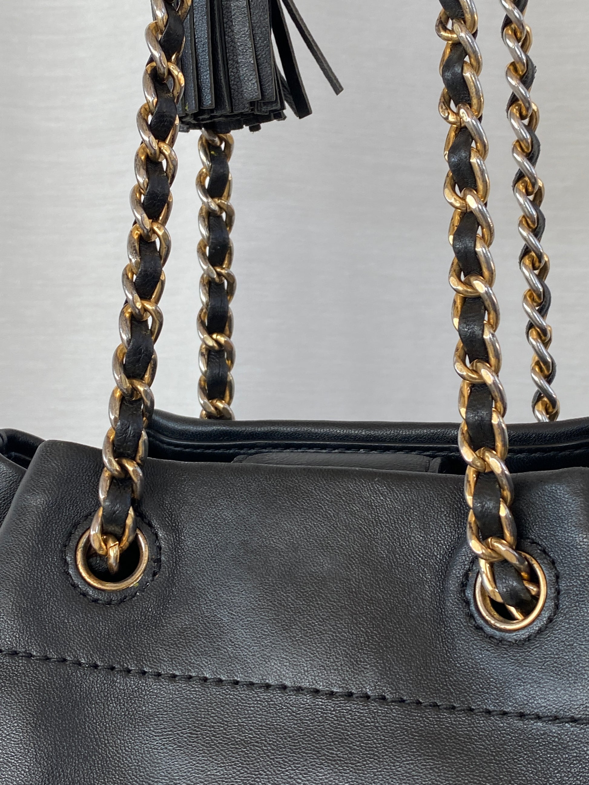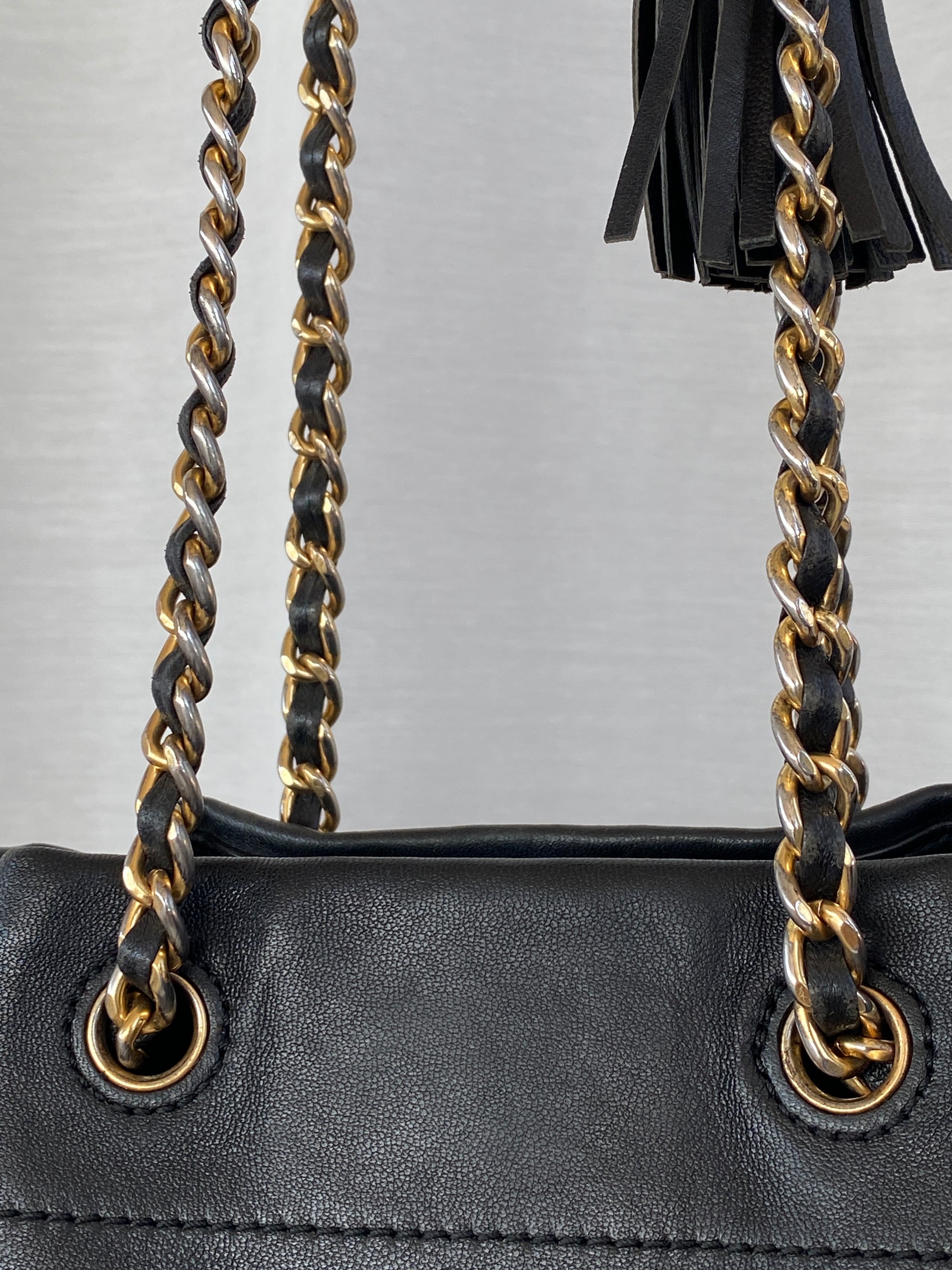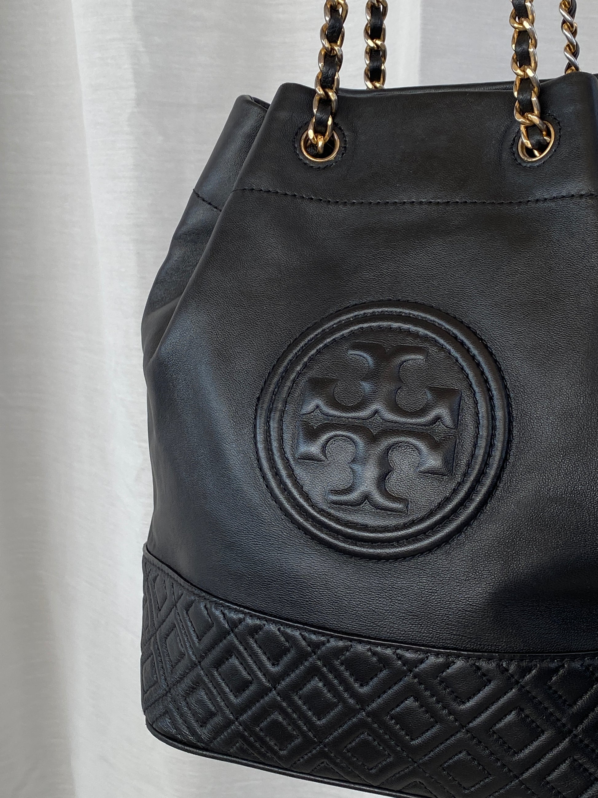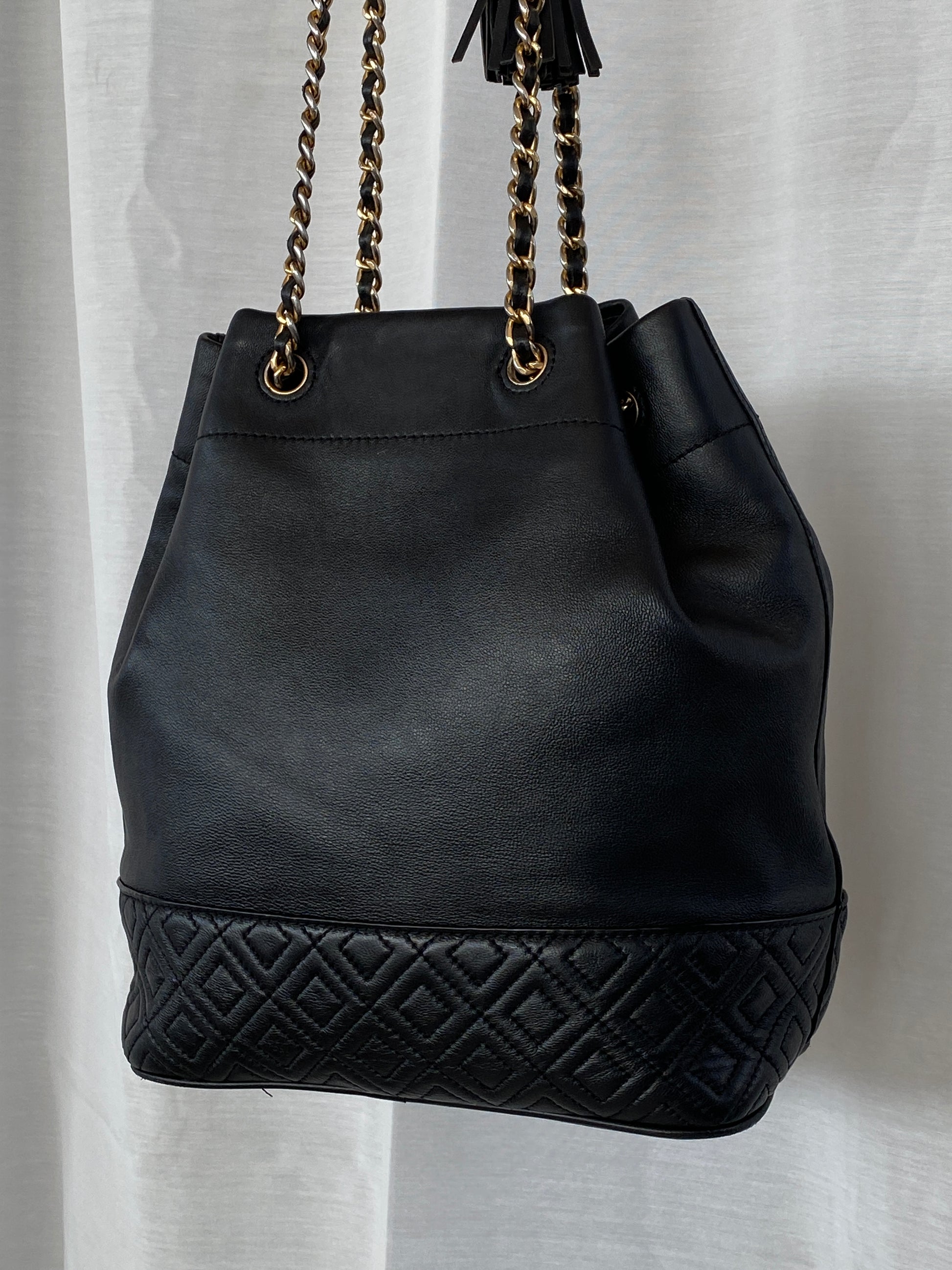 حقيبة كتف صغيرة من الجلد الأسود من توري بيرش فليمنج مع سلسلة