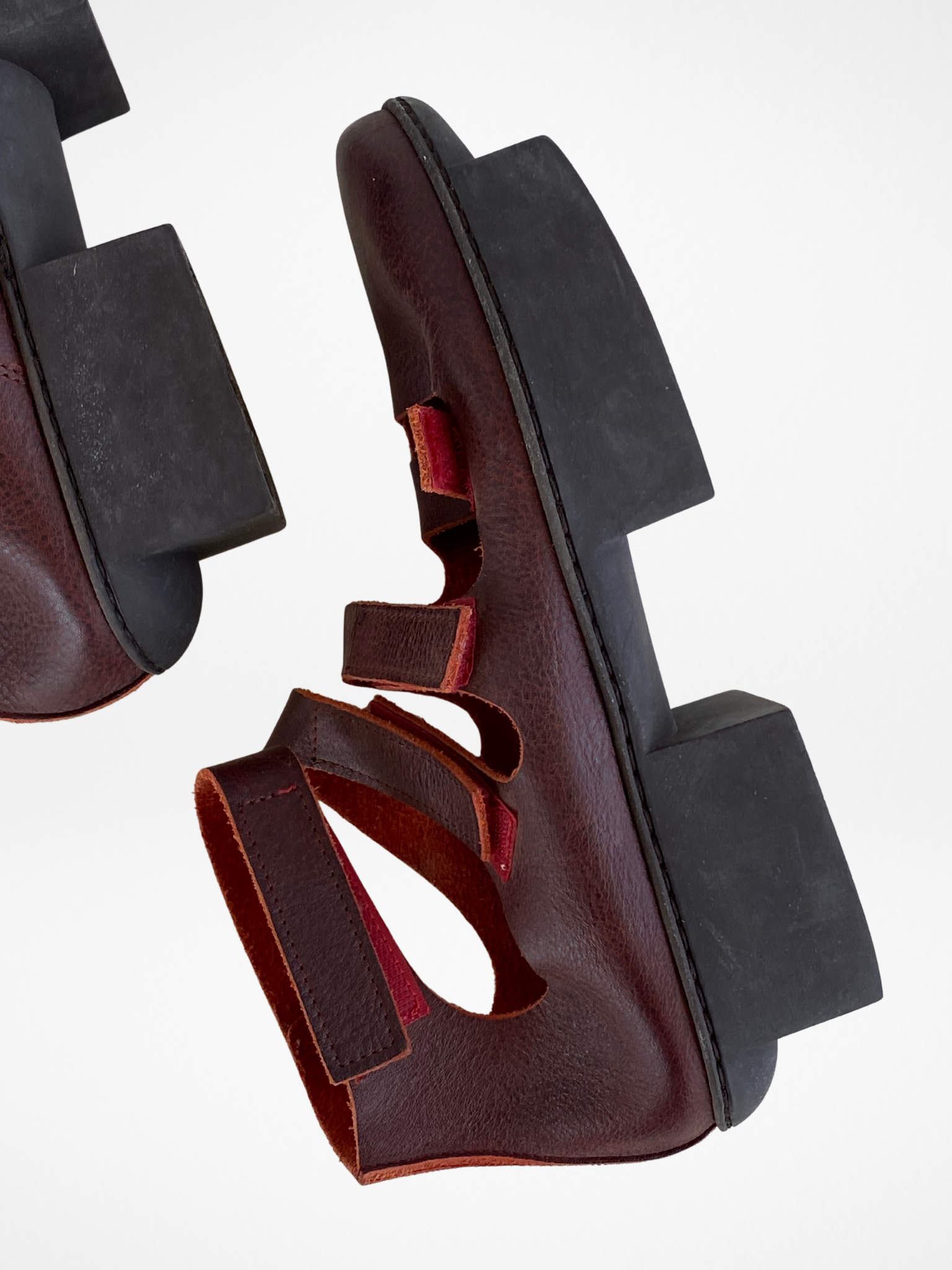 صندل تريبن بورجوندي من الجلد ذو نعل سميك وأشرطة - مصنوع يدويًا في ألمانيا - مقاس 39EU للنساء