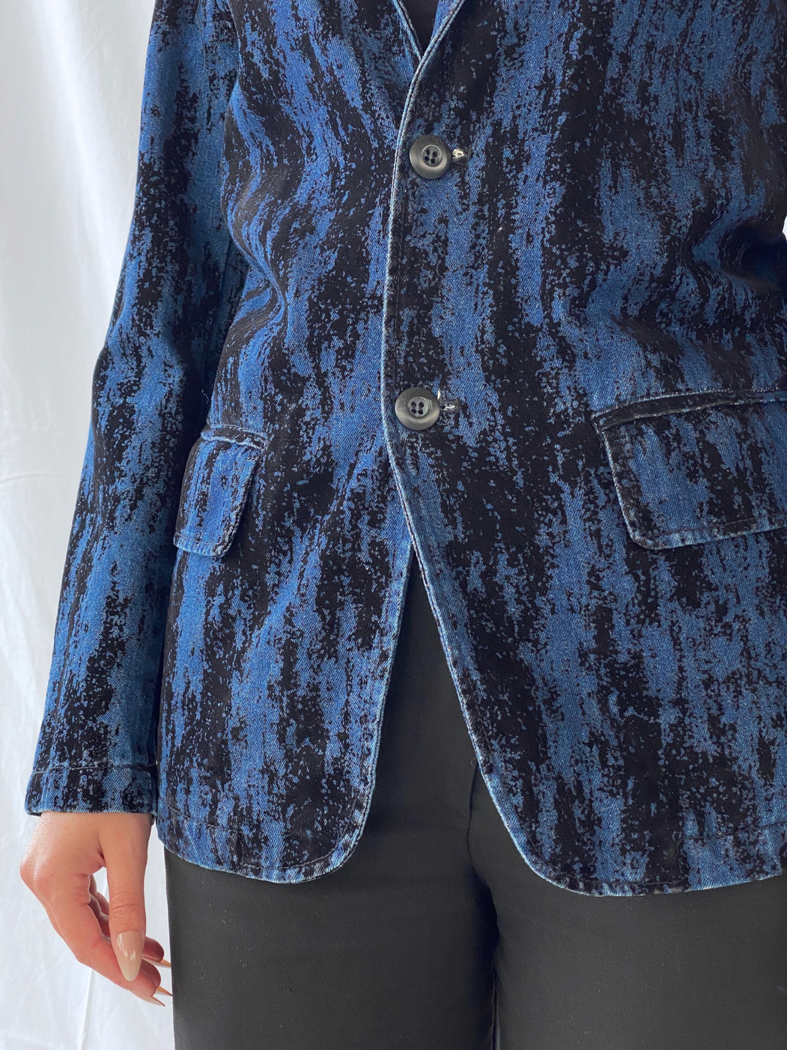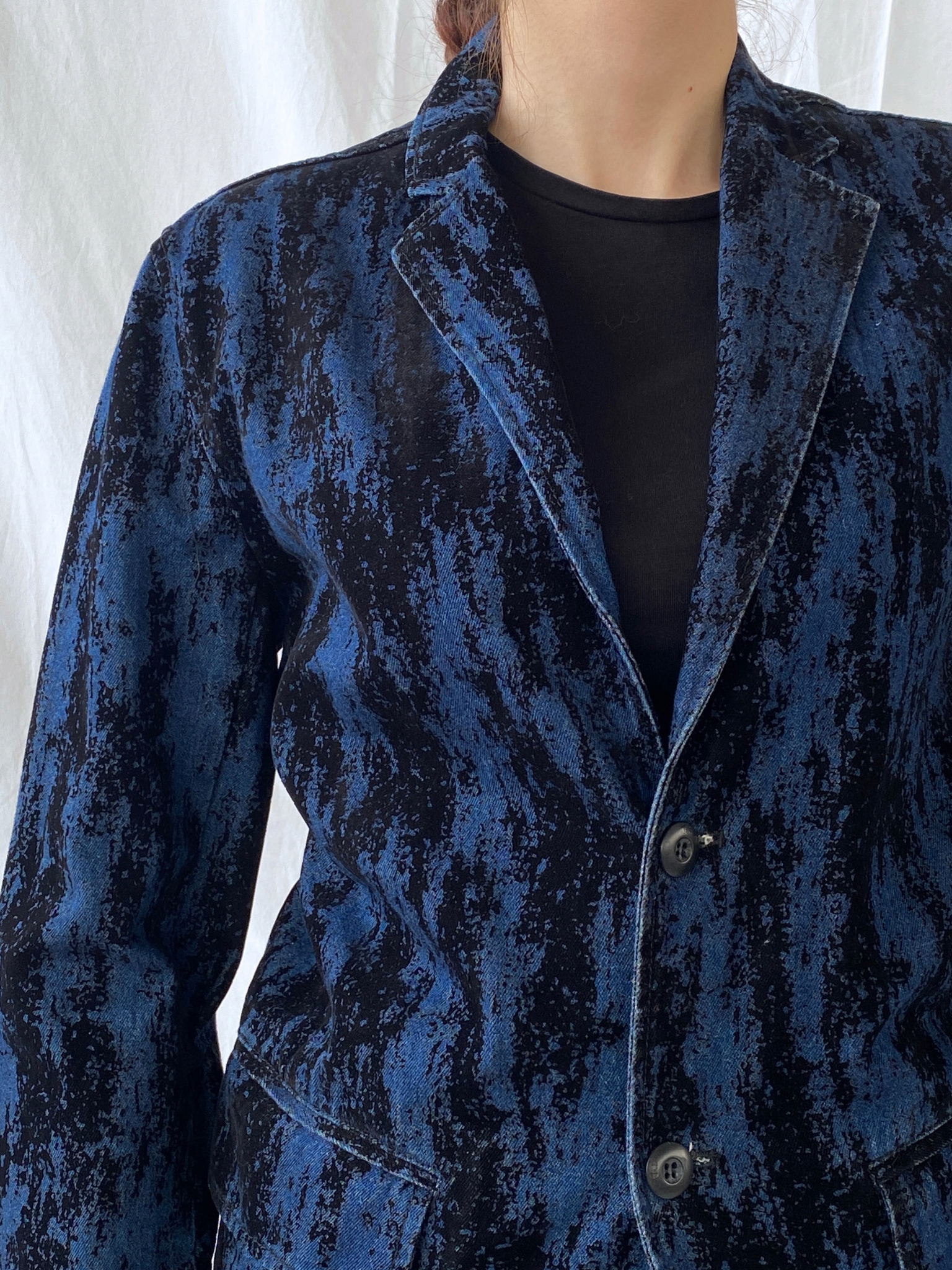 سترة جينز نسائية من 00s Two Percent Homme باللون الأزرق الداكن والأسود - مقاس صغير
