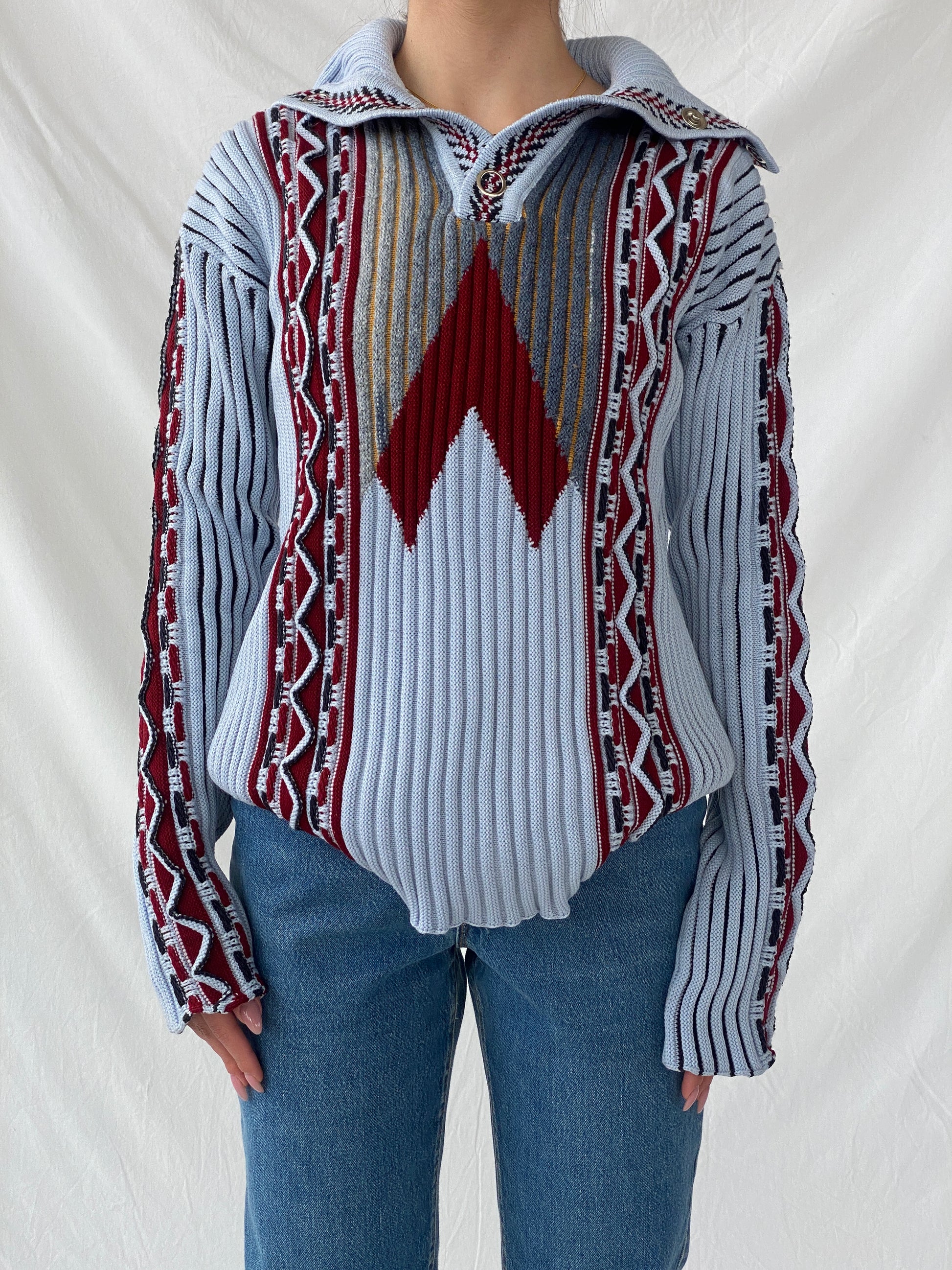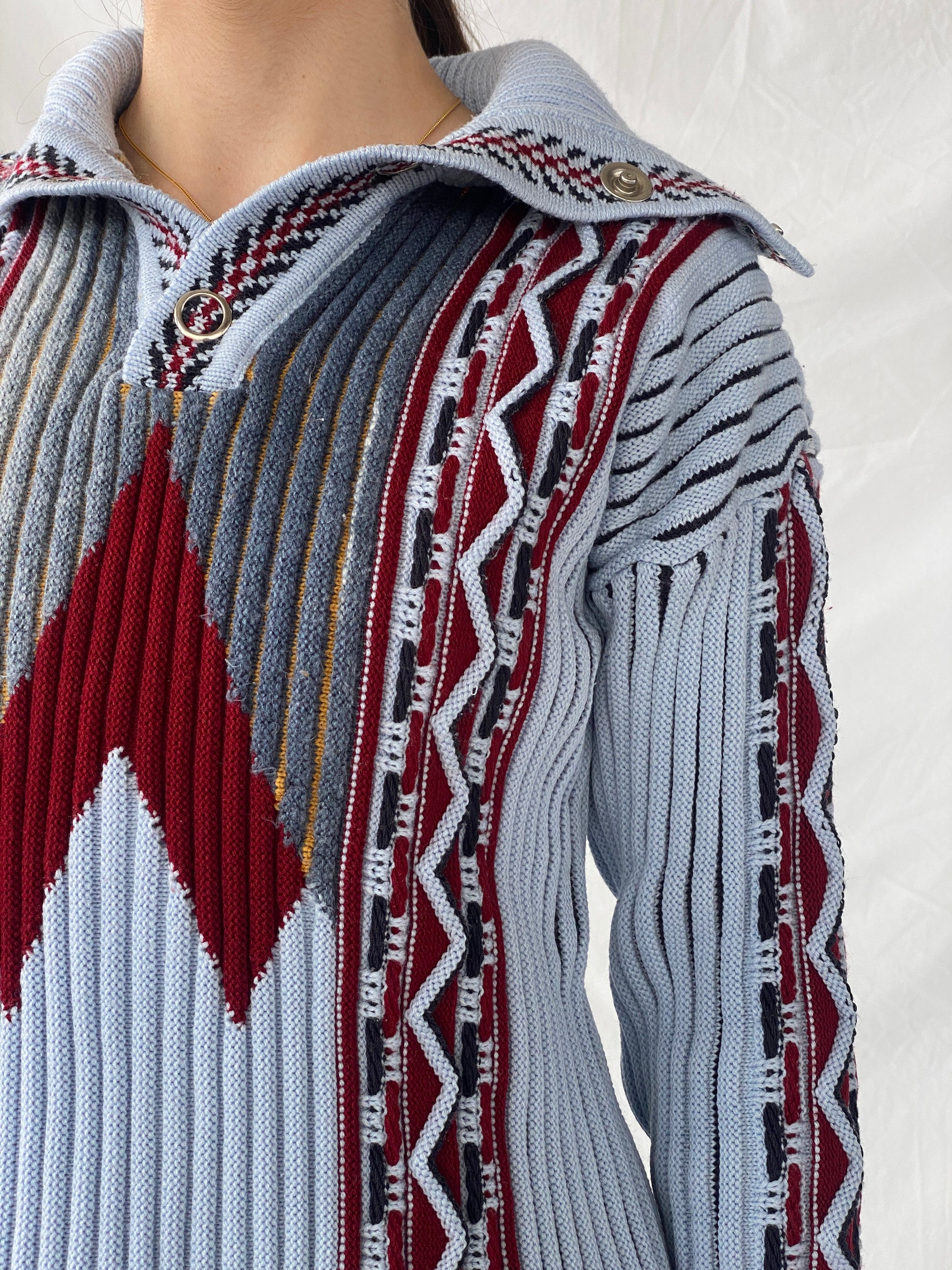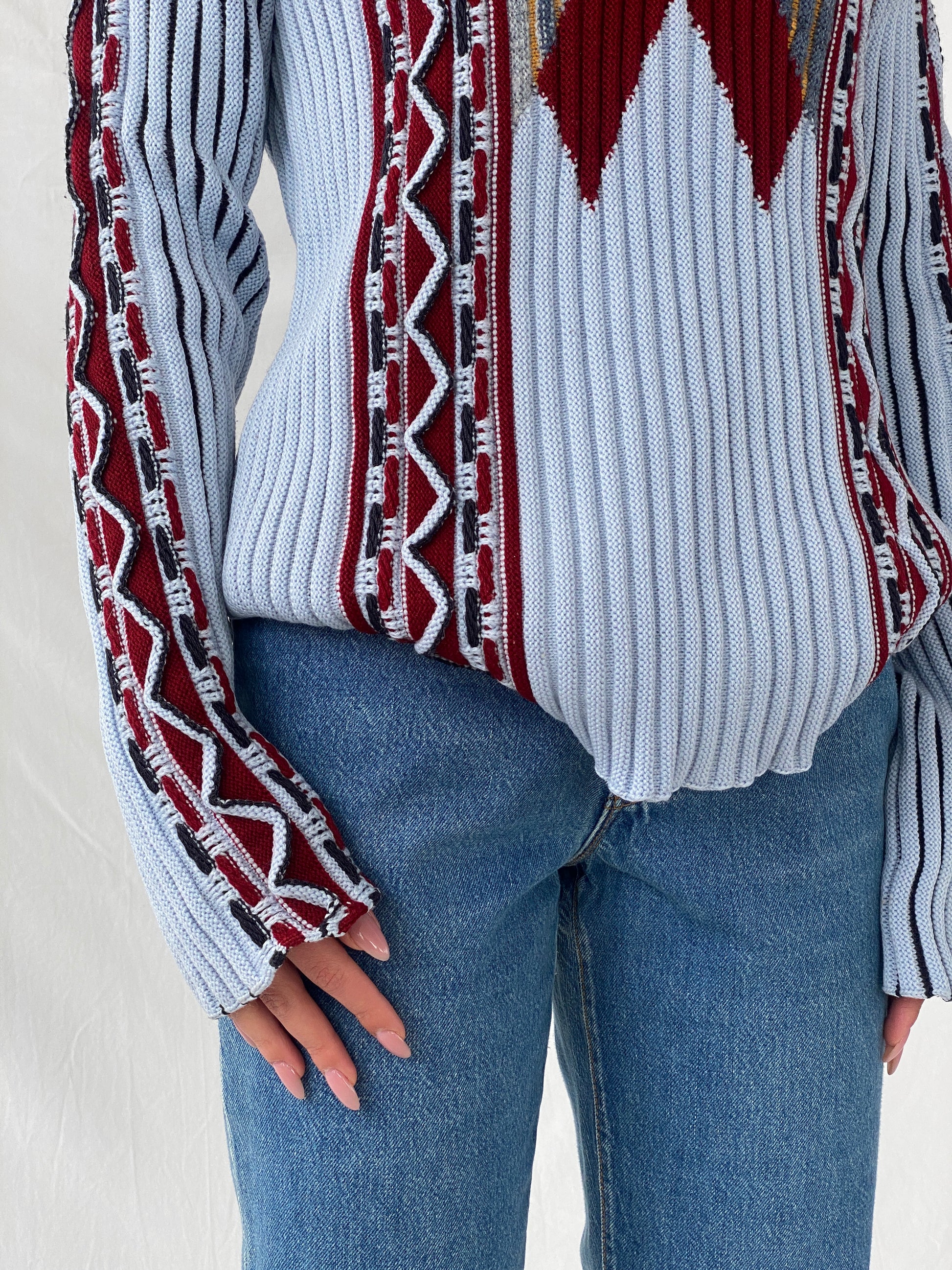 سترة ثقيلة محبوكة ثنائية اللون للنساء باللون الأزرق - مقاس متوسط