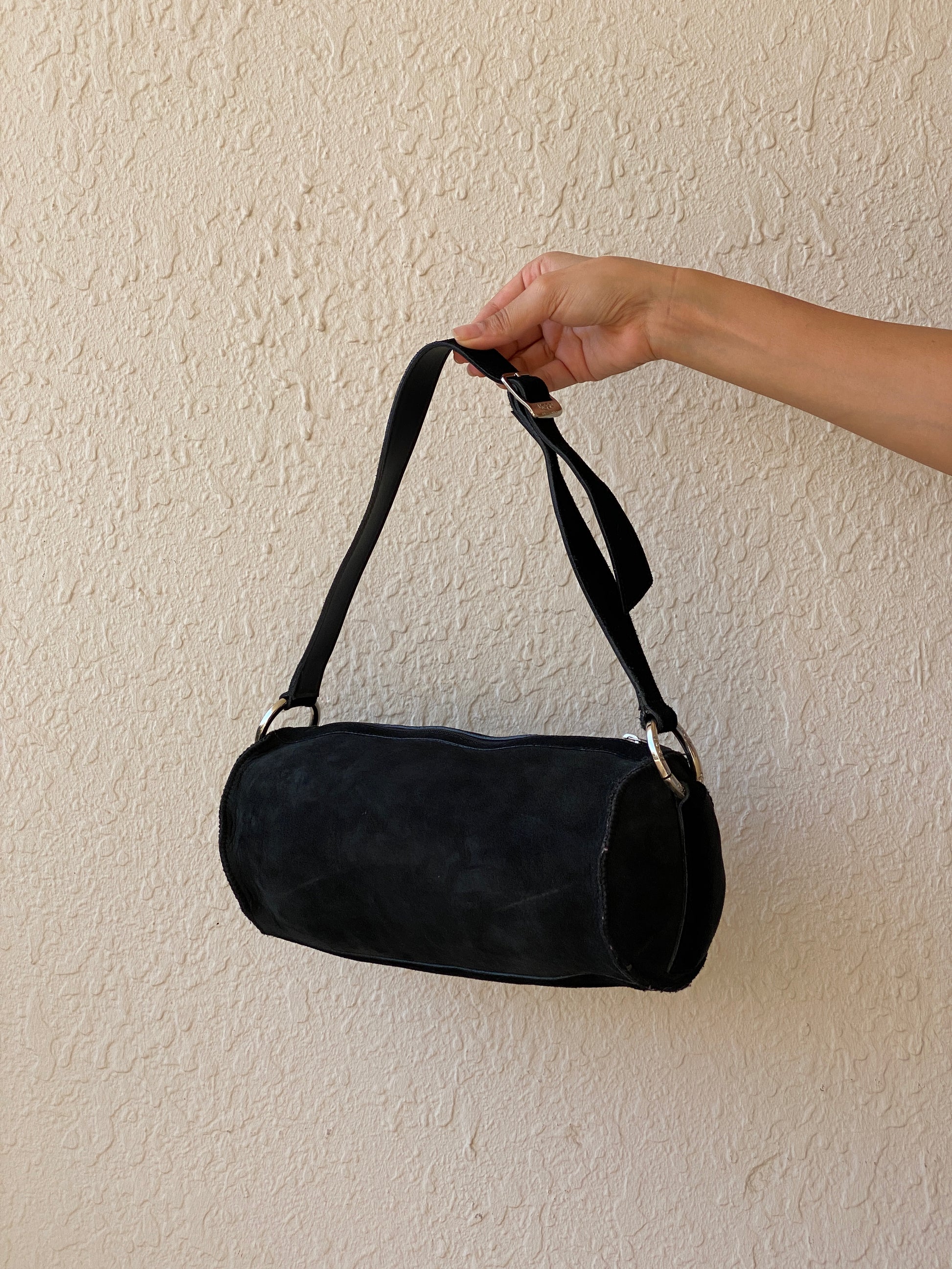 هذه الحقيبة النادرة من UGG Australia بتصميمها البرميلي تجمع بين الأناقة المريحة المميزة للعلامة التجارية وتصميمها الأنيق. مصنوعة من جلد سويدي أسود ناعم، وتتميز برقعة UGG المميزة على الجهة الأمامية وتصميمها البرميلي الأنيق. الجزء الداخلي مبطن بالكامل بفرو فاخر من جلد الغنم، مما يجعلها أنيقة ودافئة في آن واحد - إكسسوار شتوي مثالي. تأتي مع حزام كتف قابل للتعديل وسحاب للإغلاق لمزيد من الأمان. مستعملة، مع استخدام خفيف، وهي بحالة جيدة بشكل عام.