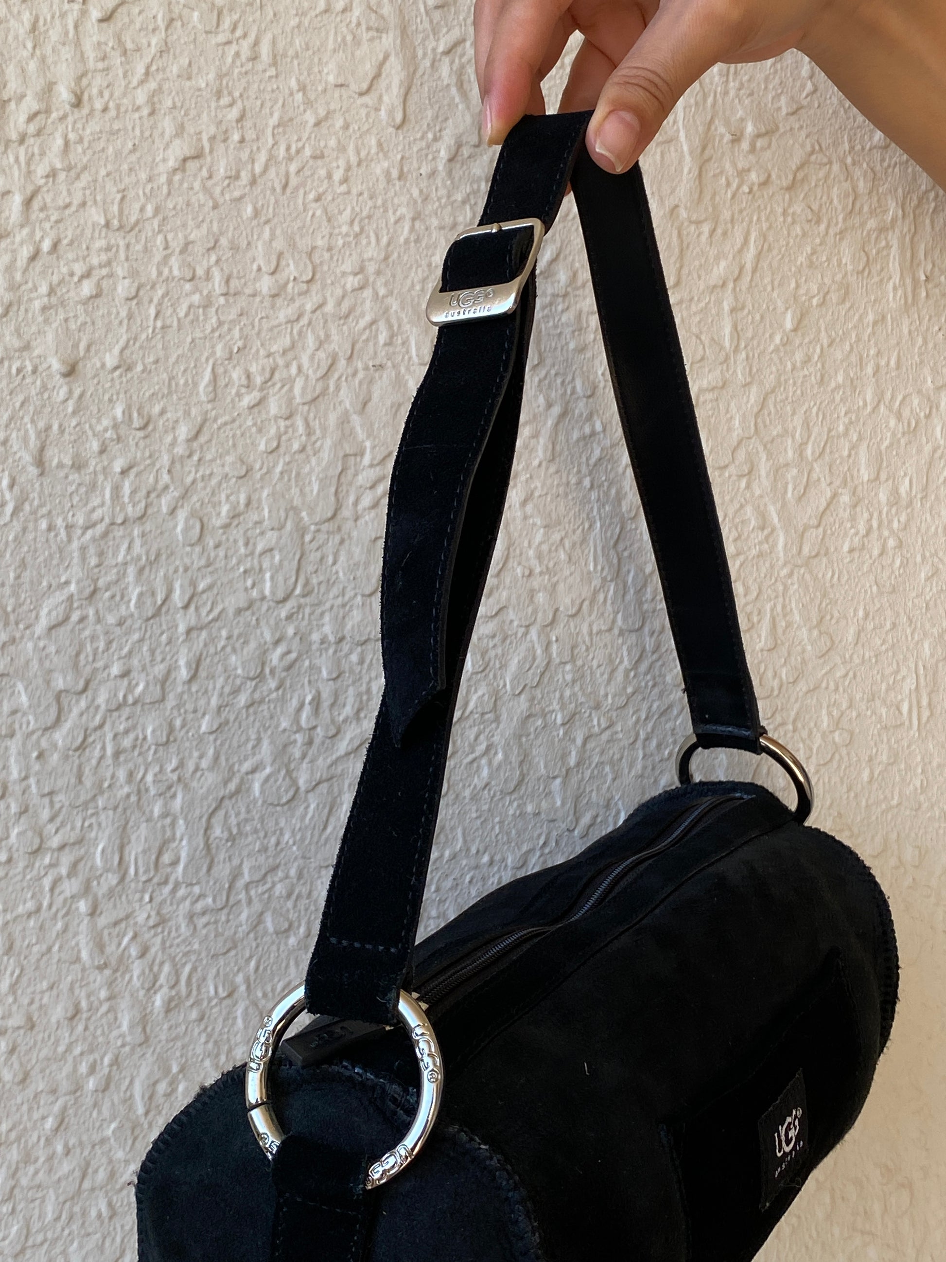 حقيبة كتف UGG Australia سوداء من جلد الغزال مبطنة بالفرو من جلد الغنم