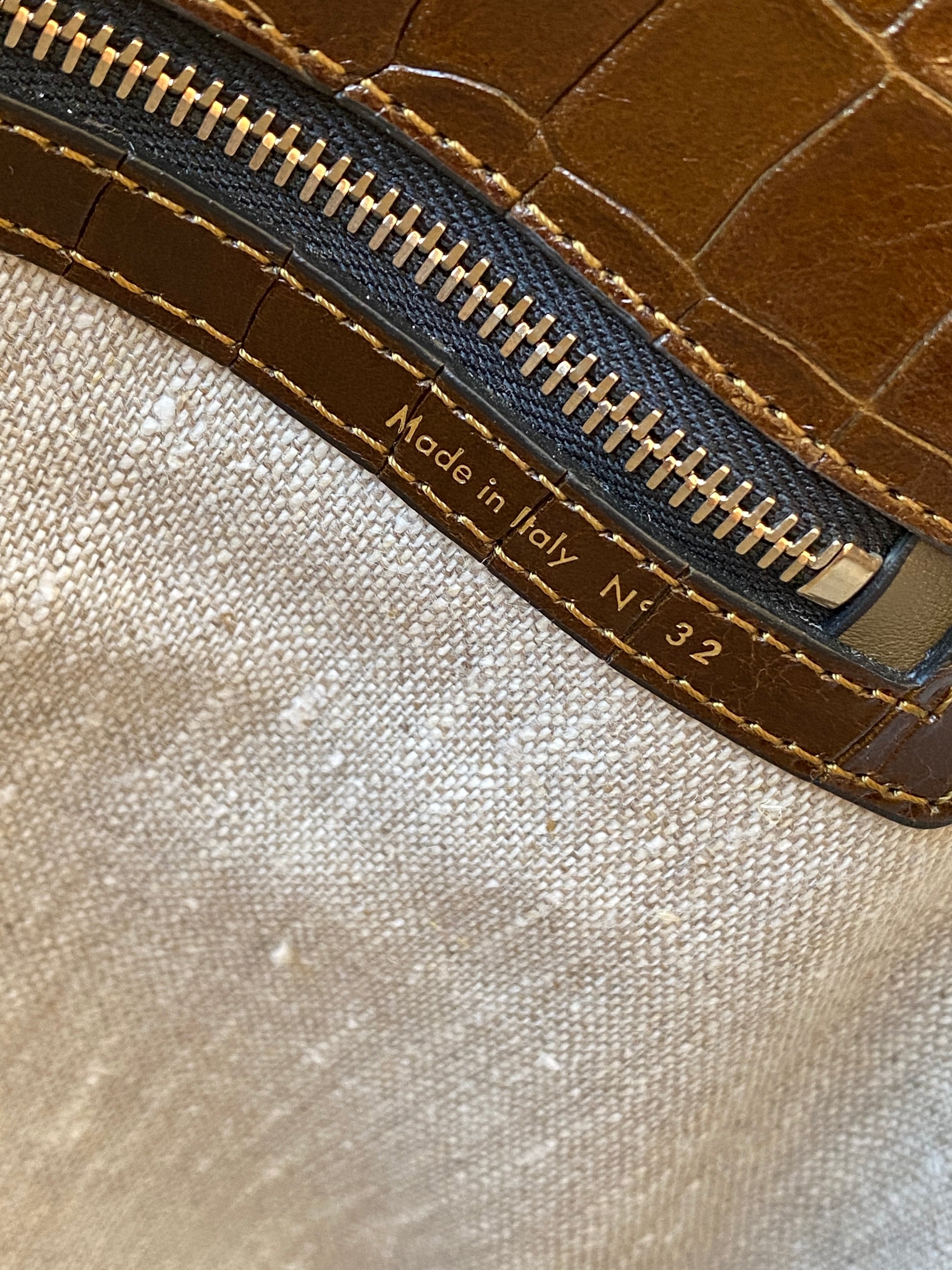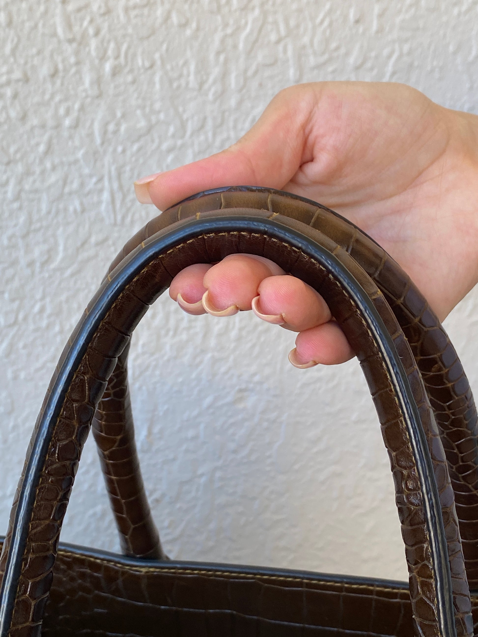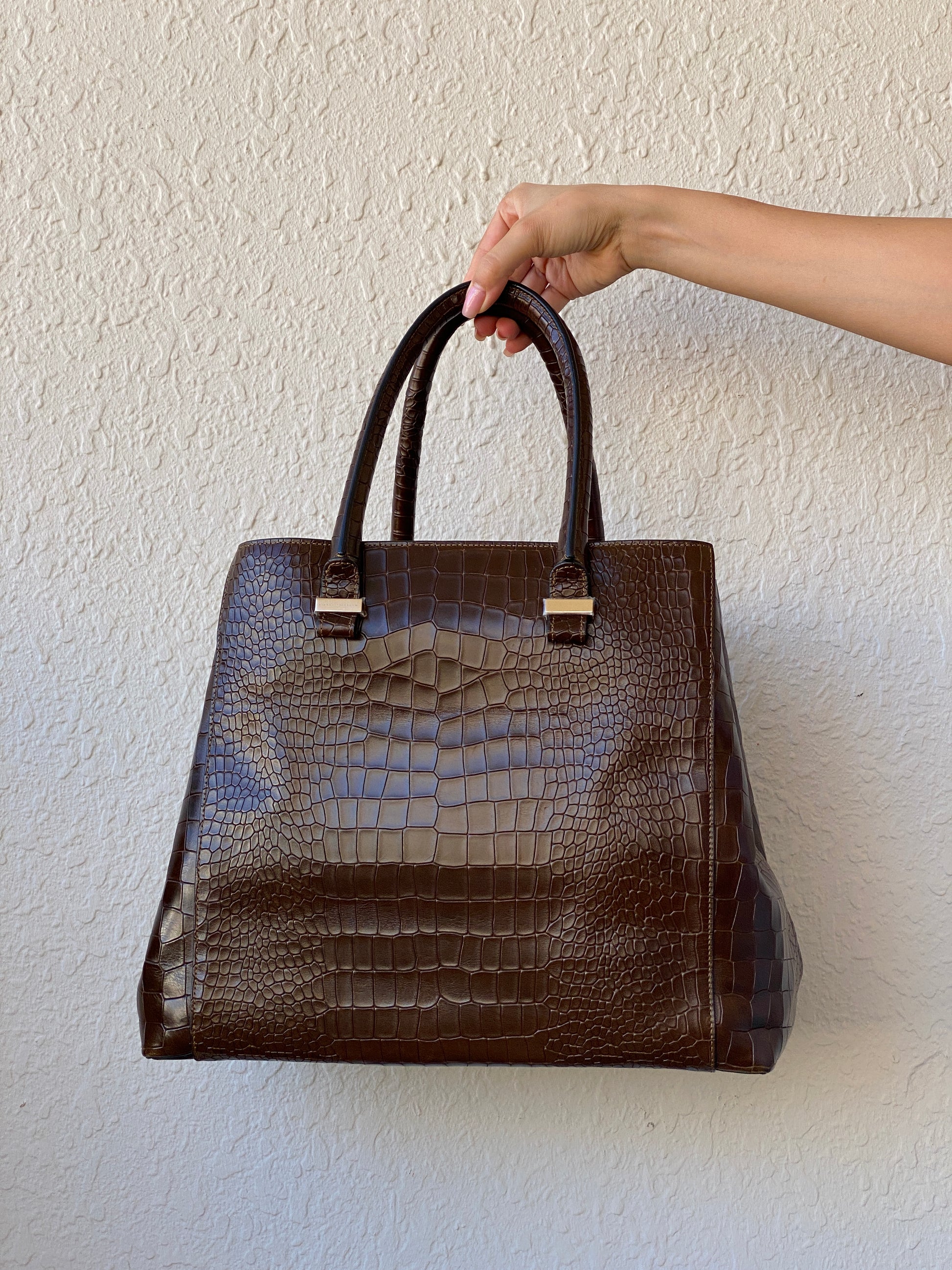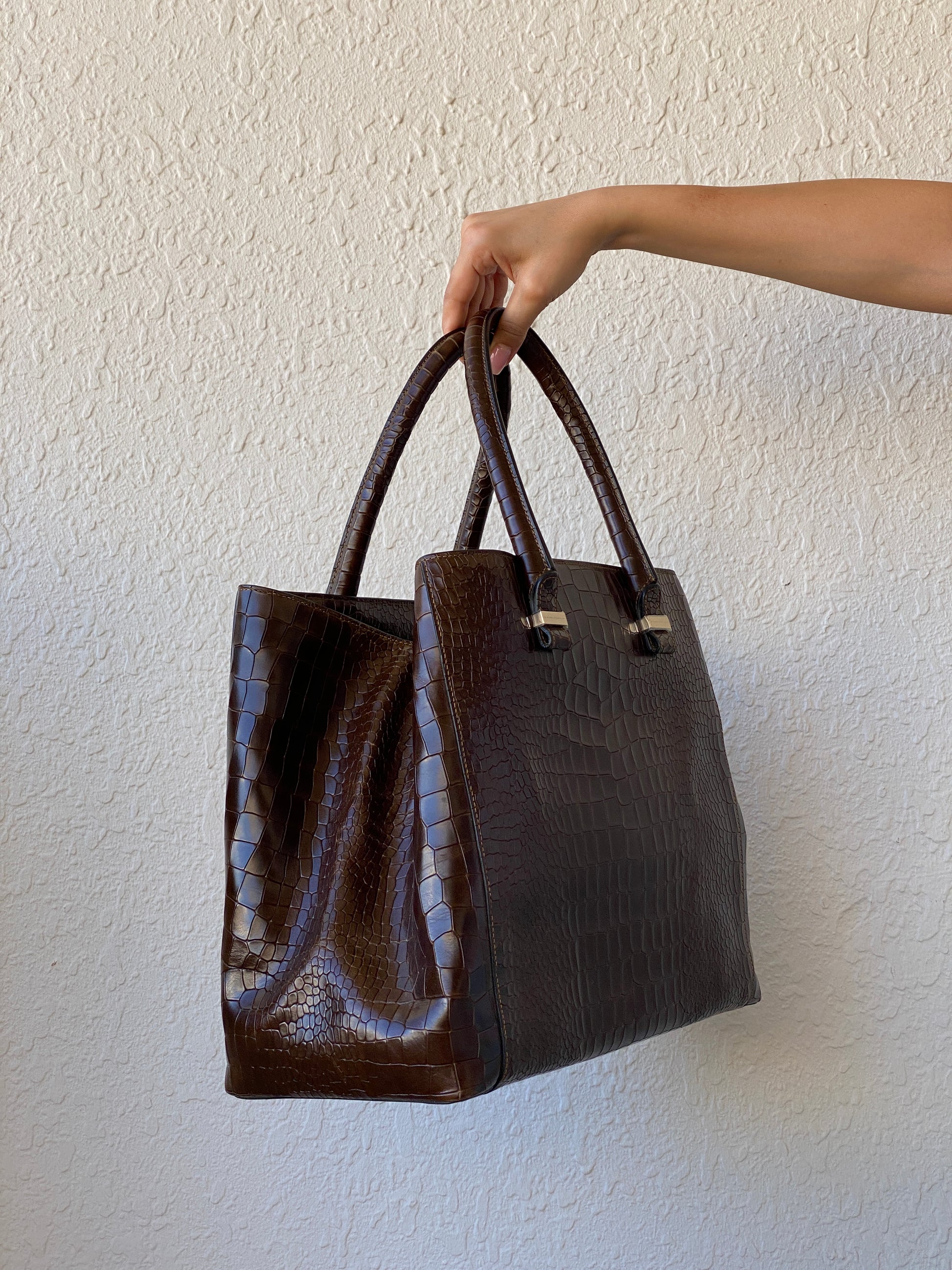حقيبة فيكتوريا بيكهام كبيرة من الجلد باللون البني الشوكولاتي للنساء بتأثير جلد التمساح