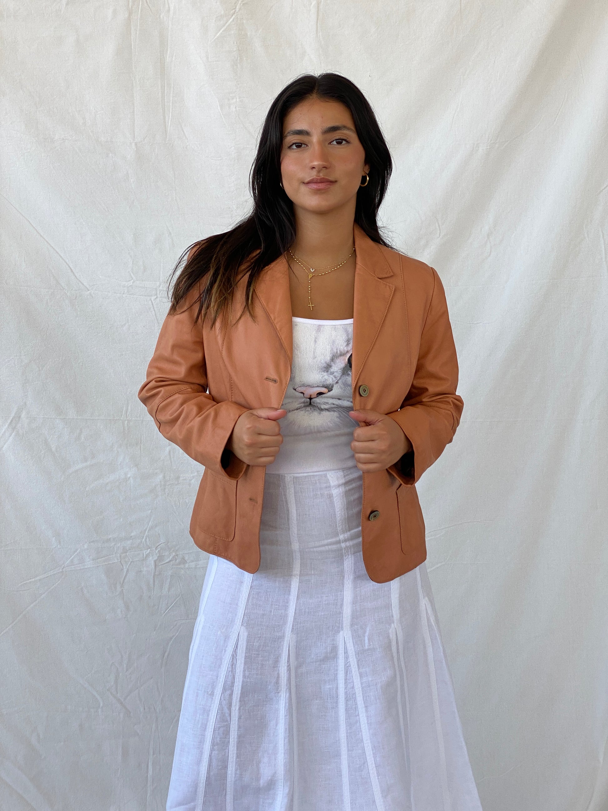 بليزر برتقالي من الجلد الطبيعي من CHRiST من طراز Vintage 00s - مقاس M