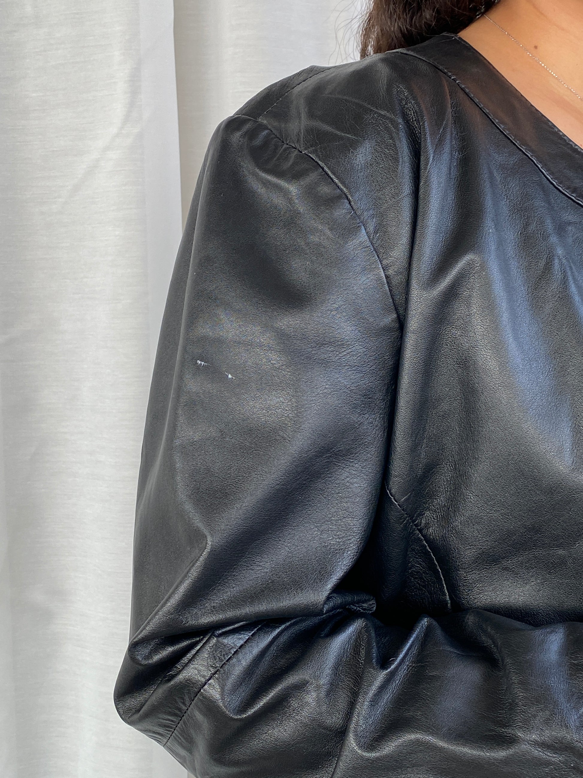 جاكيت جلد أسود أصلي من جورجيو موبياني من الثمانينيات - مقاس كبير