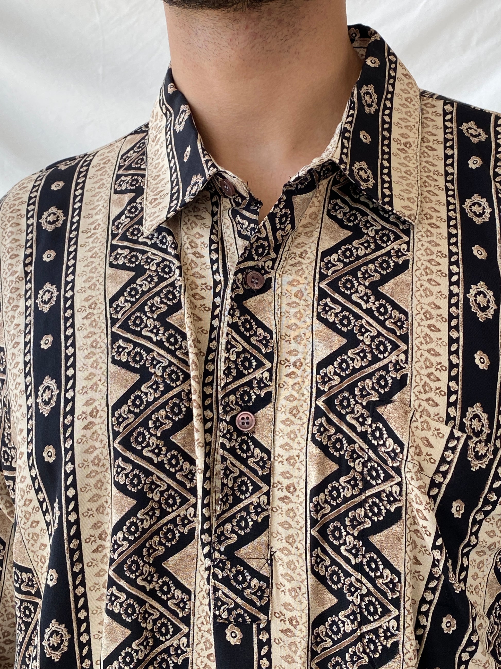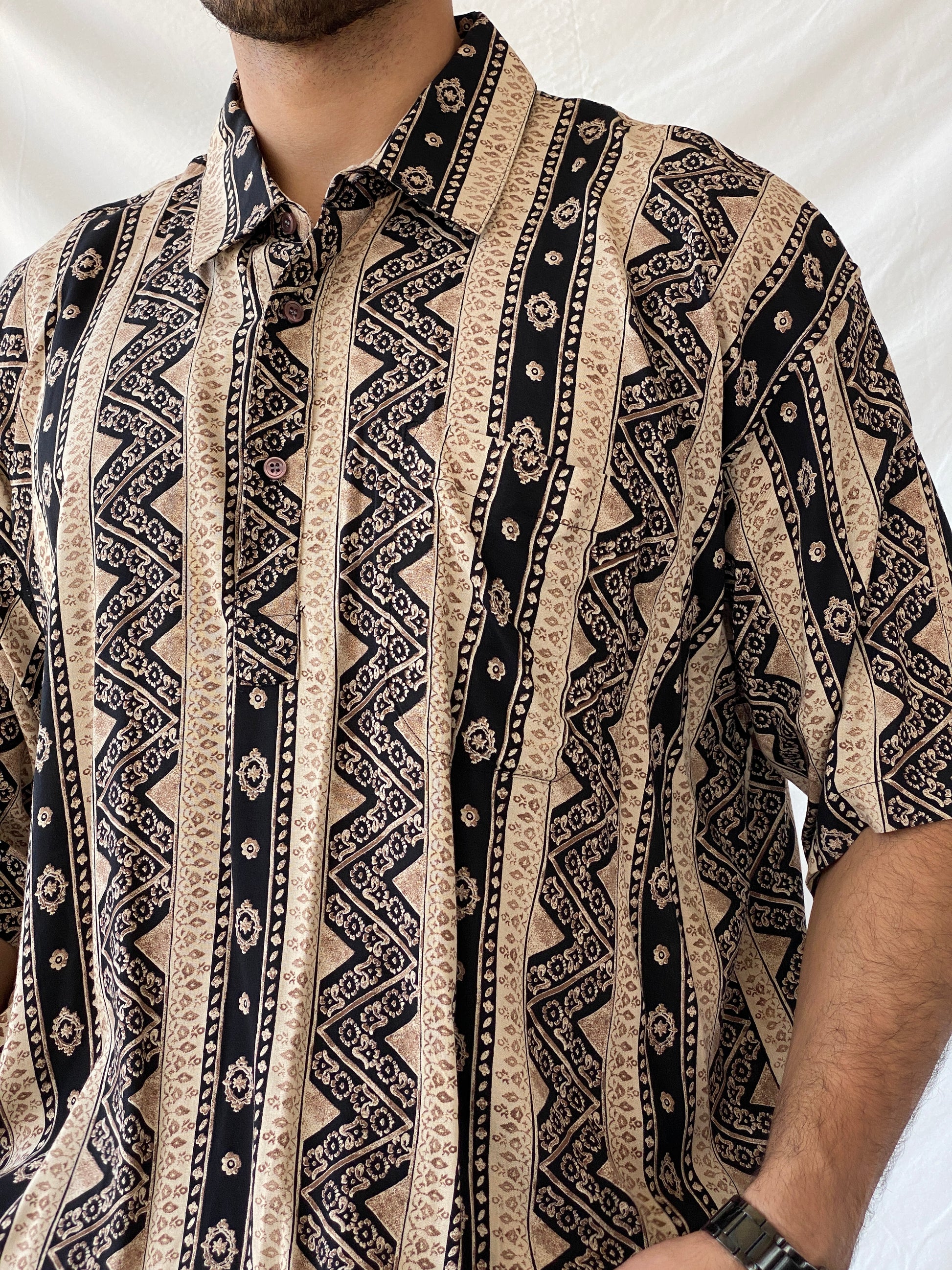 بلوزة كلاسيكية من التسعينيات بنمط هندسي تجريدي مخطط من Big Man - مقاس كبير