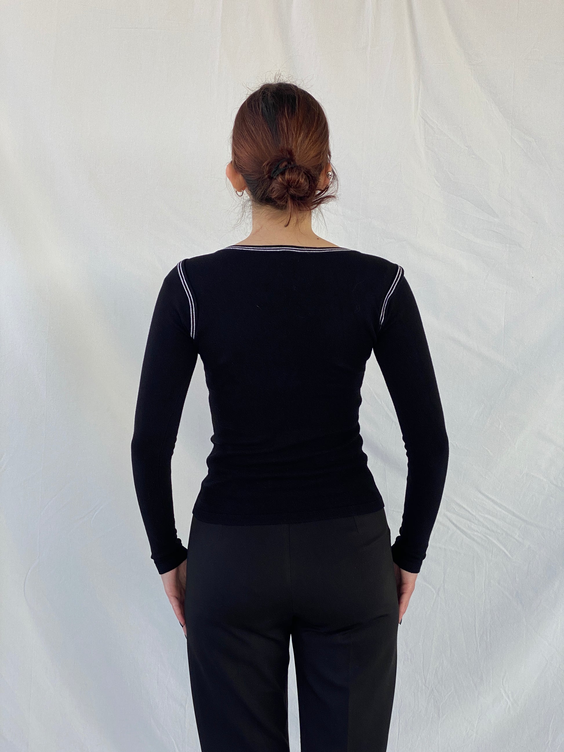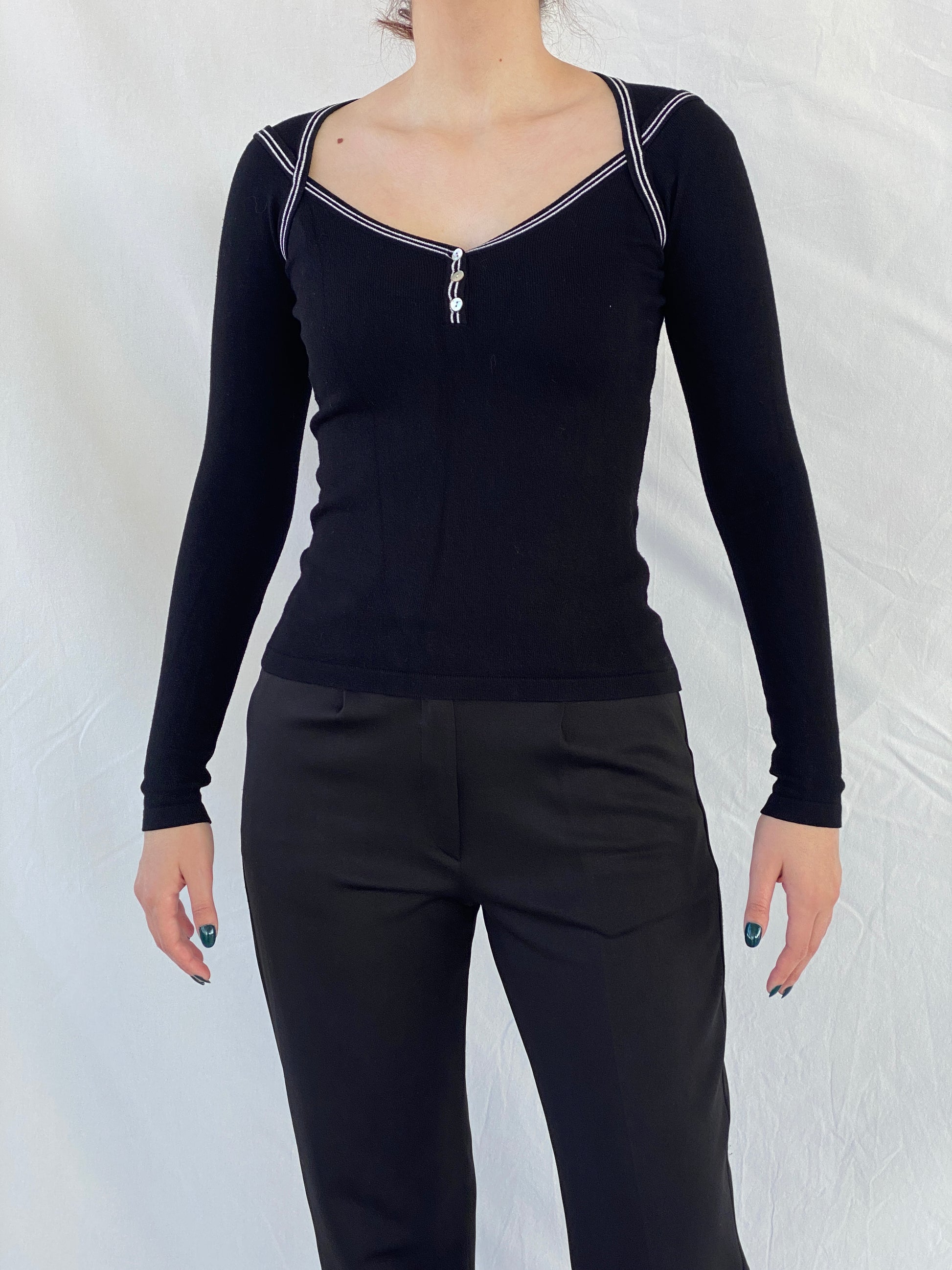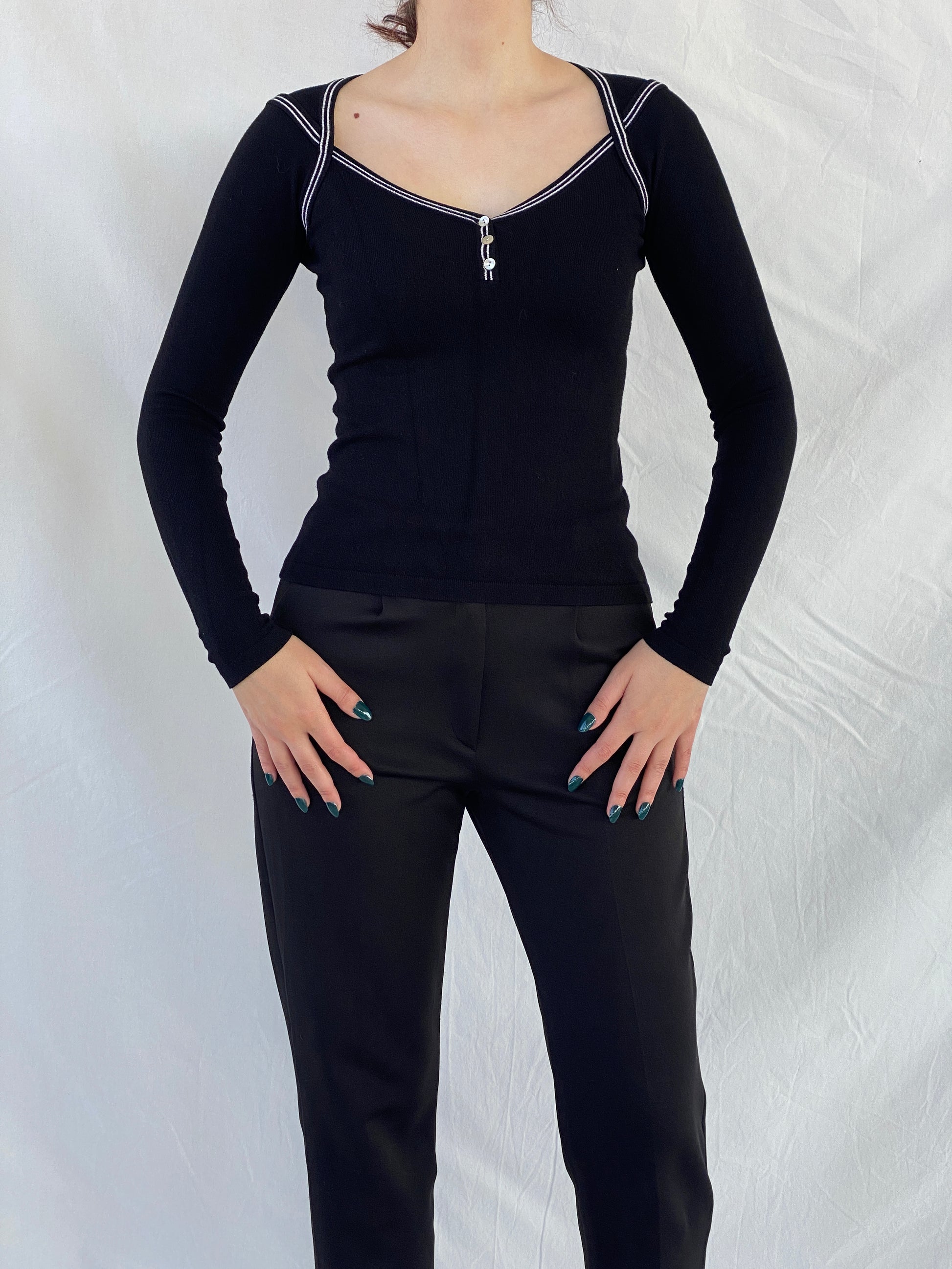 بلوزة إيتام نسائية سوداء بأكمام طويلة من التسعينيات - مقاس صغير