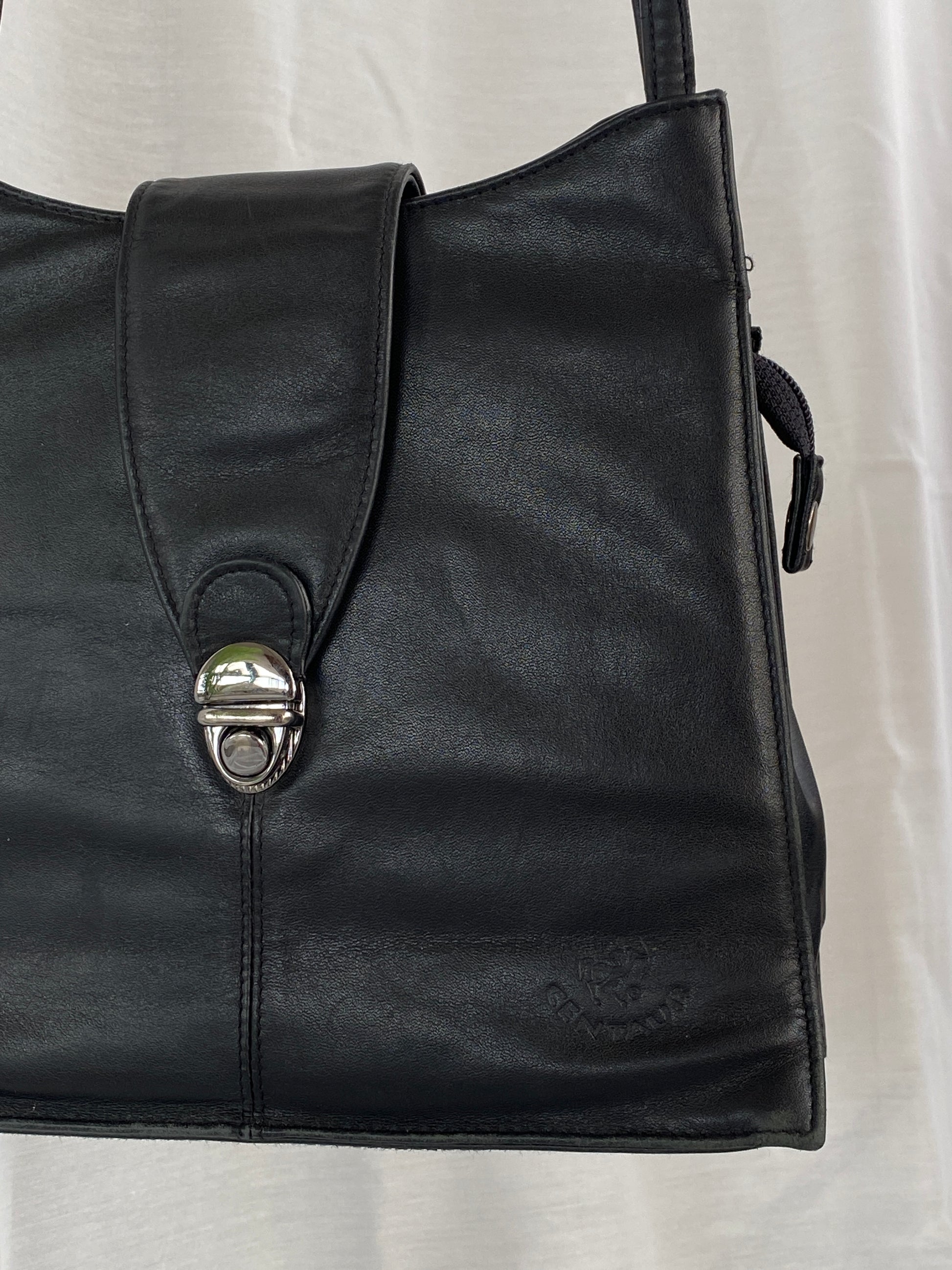 ارتقِ بأناقتك مع حقيبة جينتور السوداء من التسعينيات. مثالية للجامعة أو المدرسة، تُضفي هذه الحقيبة لمسةً من السحر الكلاسيكي على أي إطلالة. بفضل تصميمها الواسع، تُعدّ الإكسسوار المثالي لاحتياجاتك اليومية. حافظي على أناقتك وترتيبك مع هذه الحقيبة الأساسية!