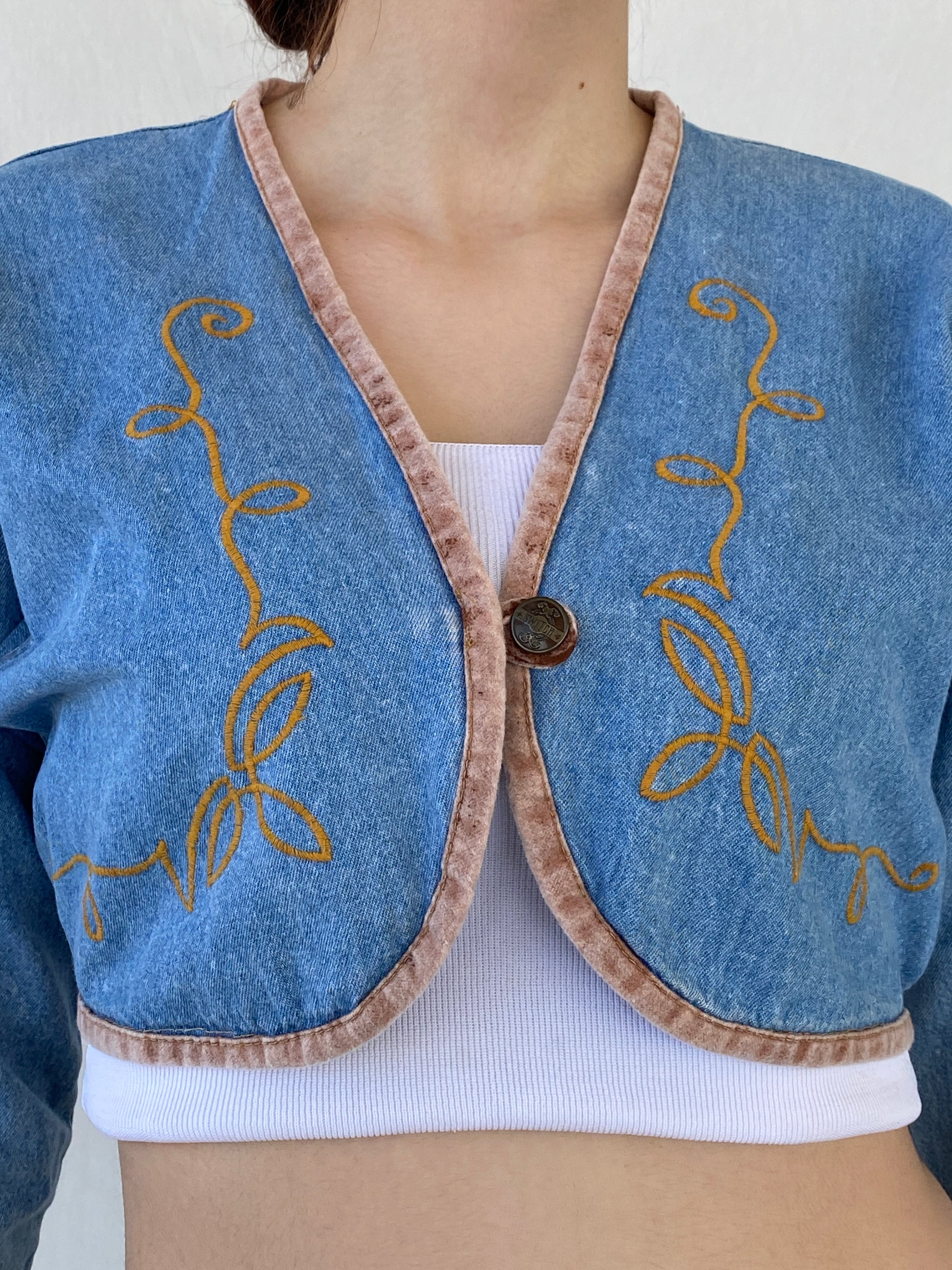 جاكيت جينز قصير من سويتش الولايات المتحدة الأمريكية بتصميم كلاسيكي من التسعينيات - مقاس صغير