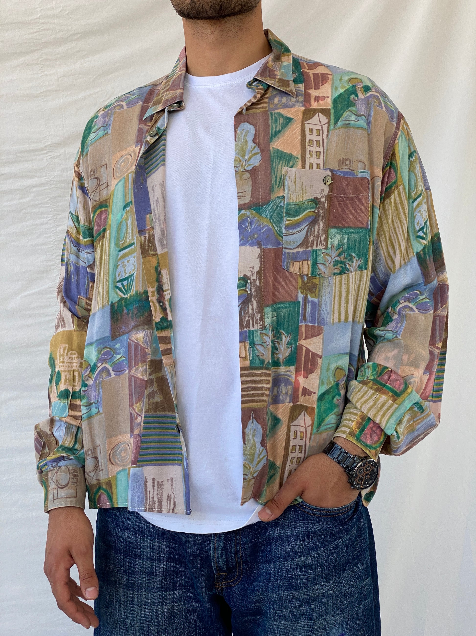 قميص Zazzi رجالي مطبوع بأزرار من التسعينيات - مقاس XL