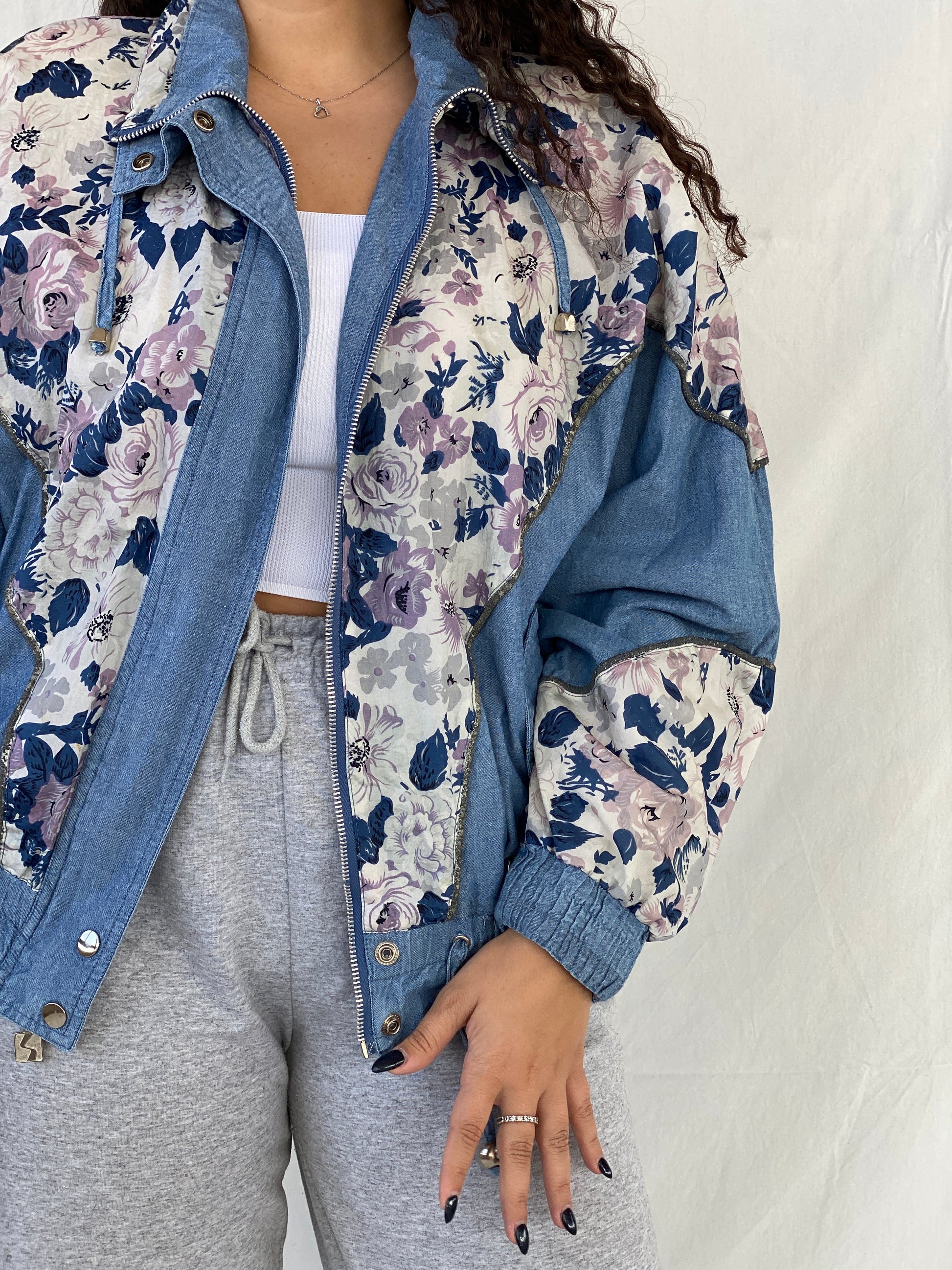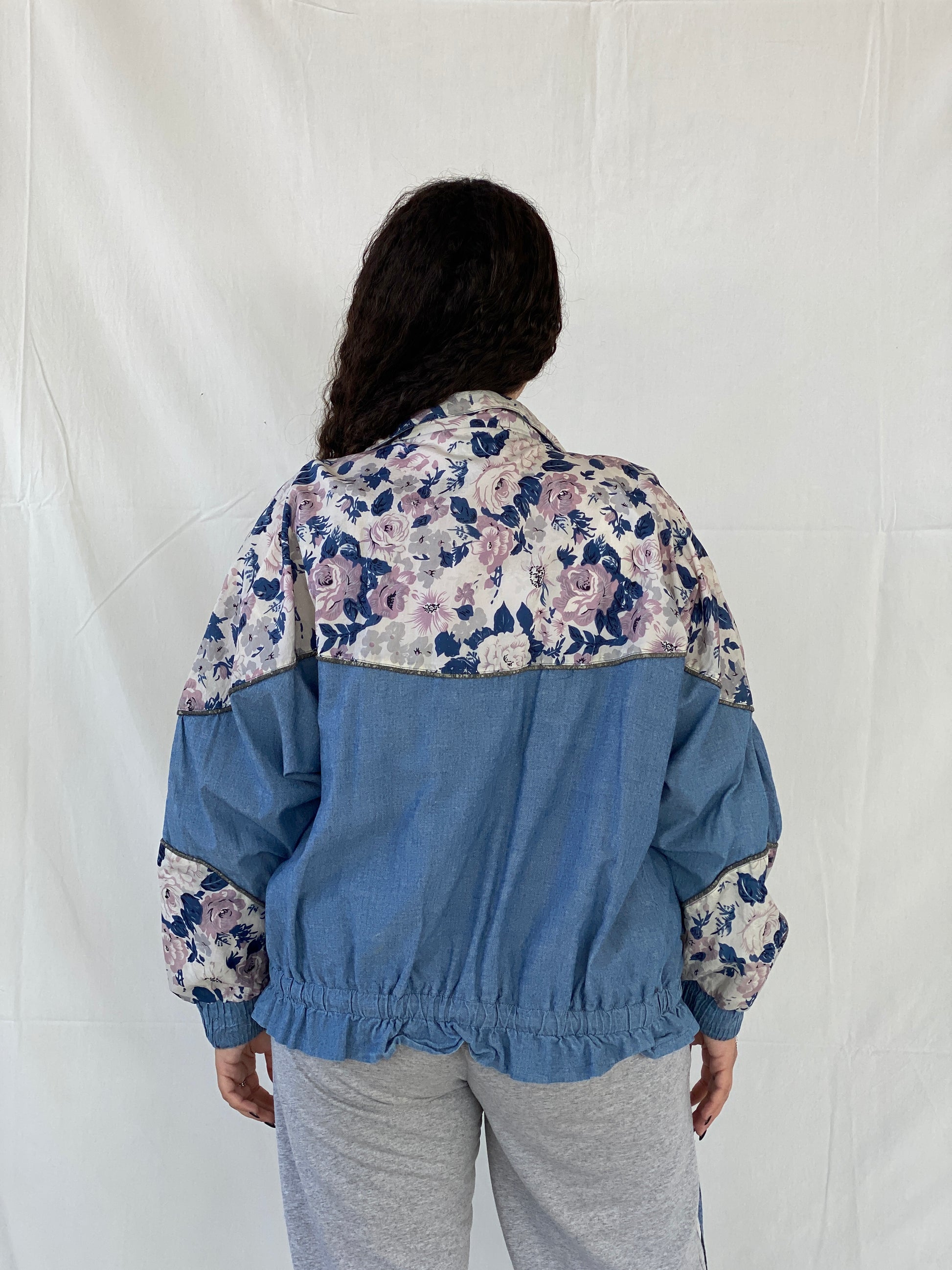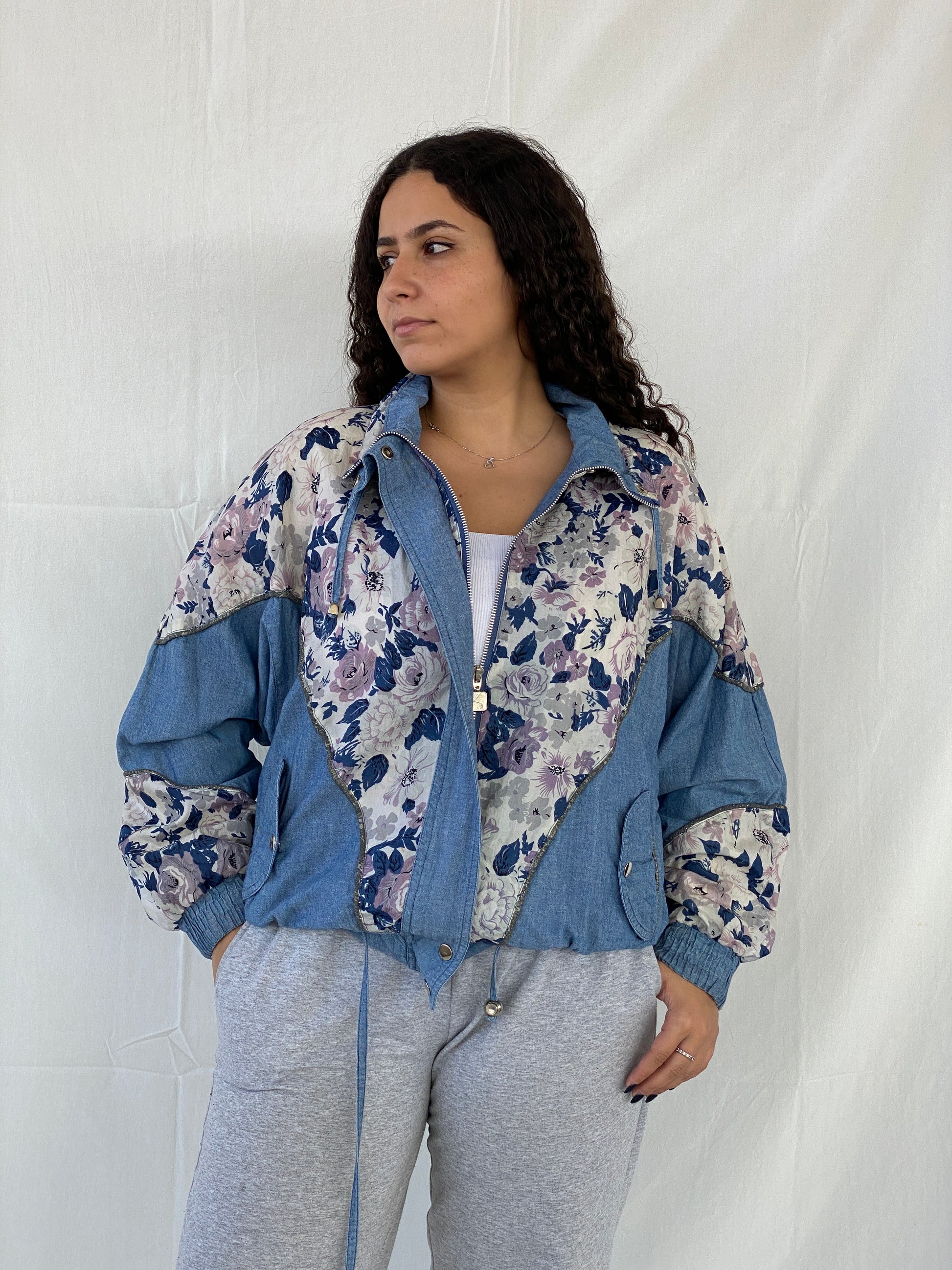 جاكيت رياضي أزرق مزهر من مجموعة Active Stuff من الثمانينيات والتسعينيات - مقاس متوسط