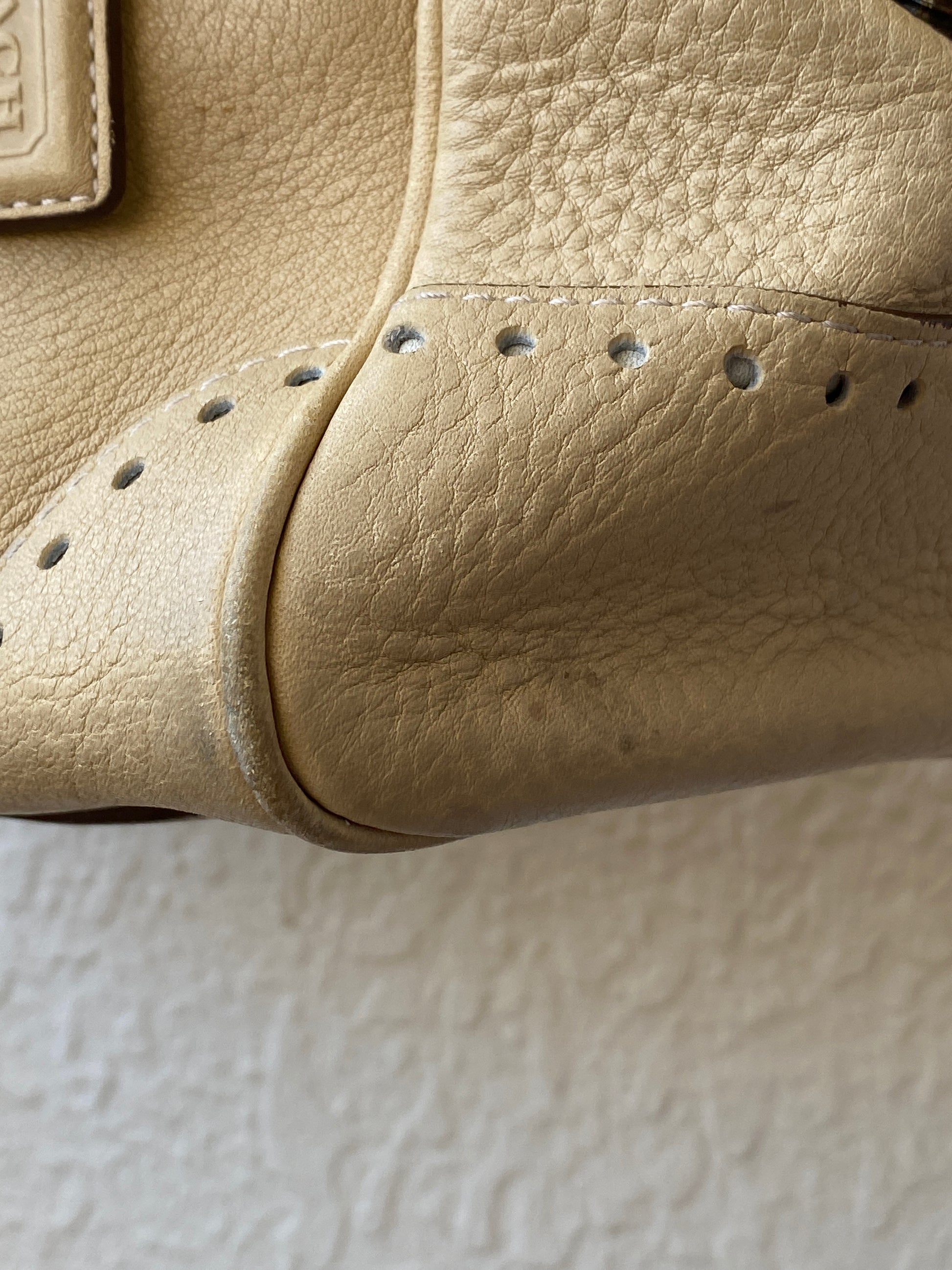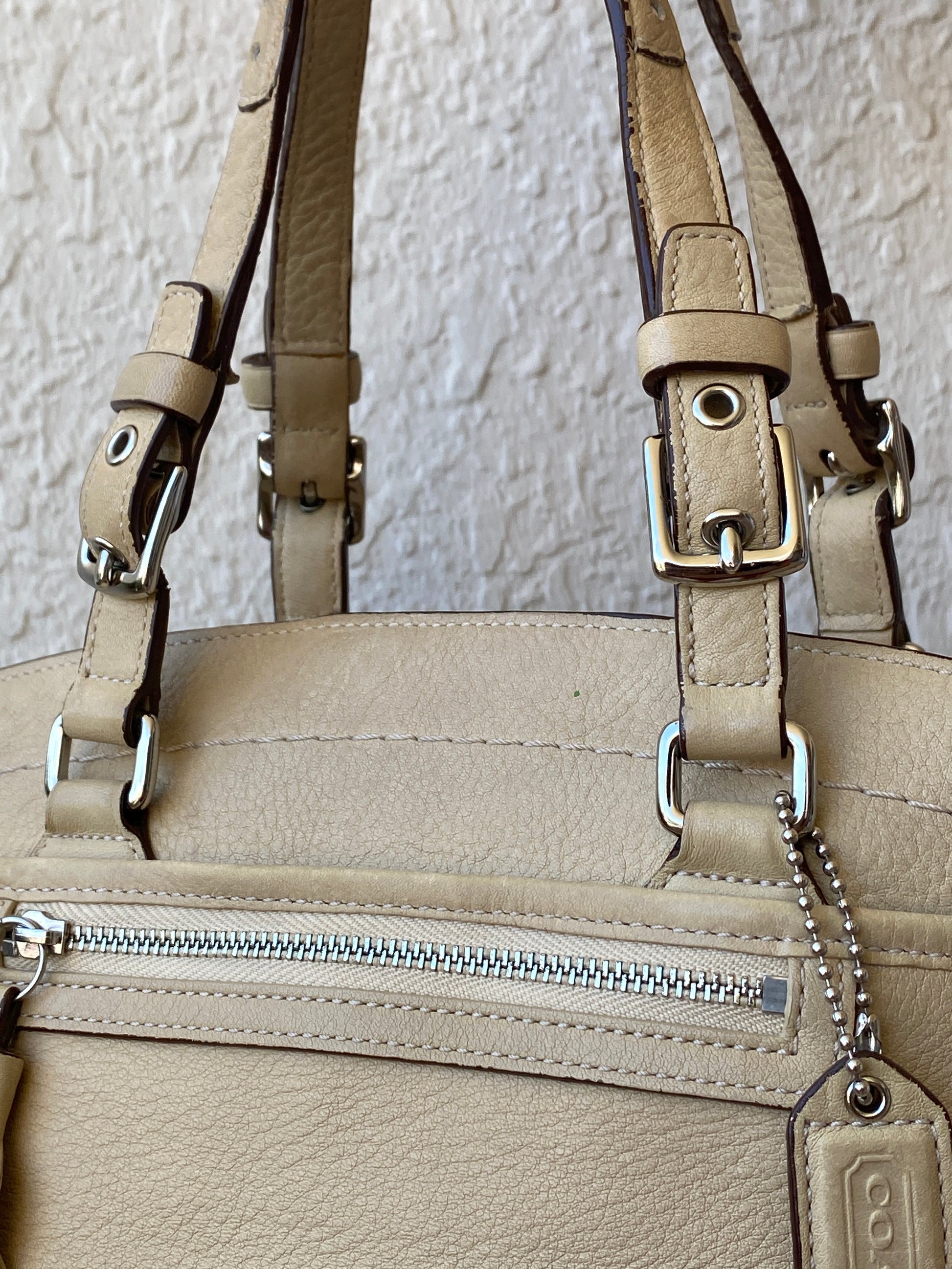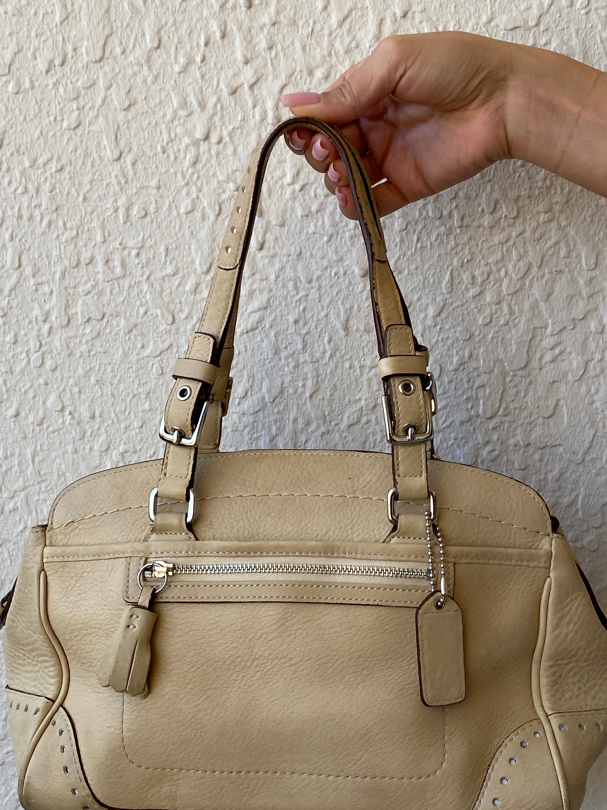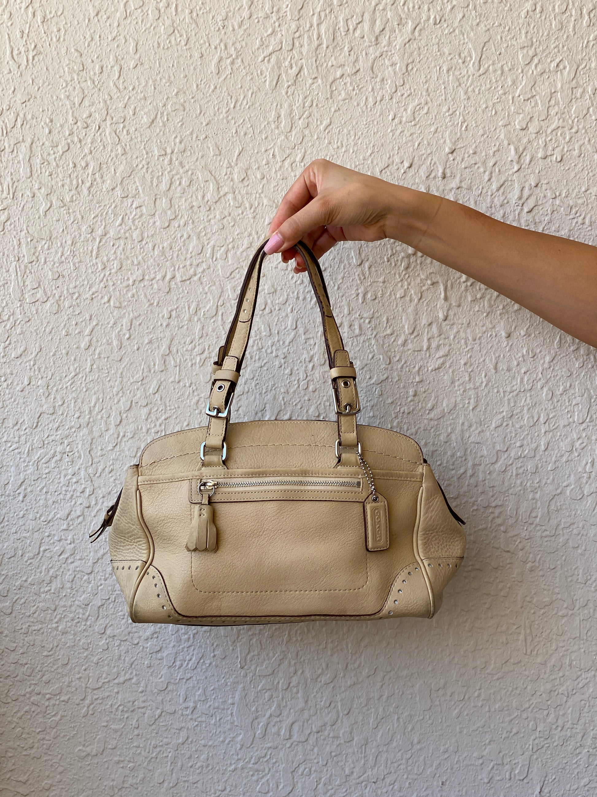 حقيبة كتف Coach Hampton Satchel المصنوعة من الجلد الكريمي الأصلي