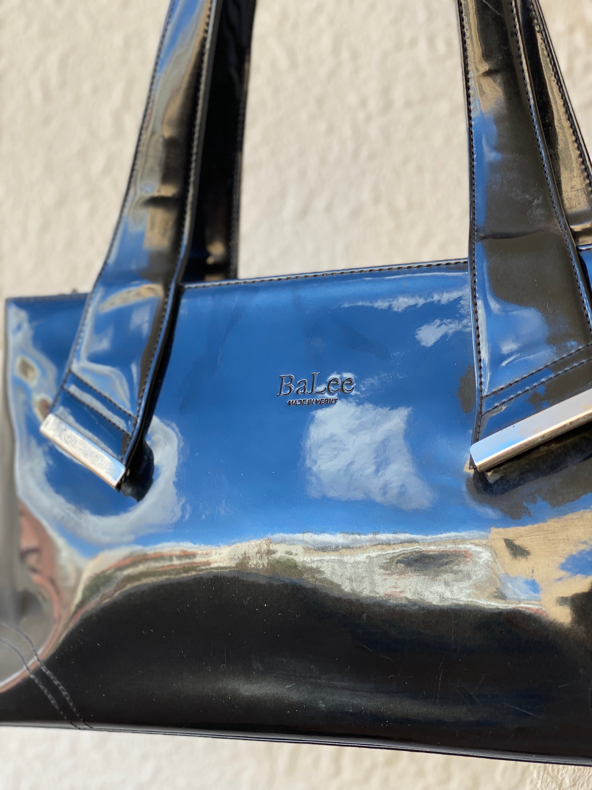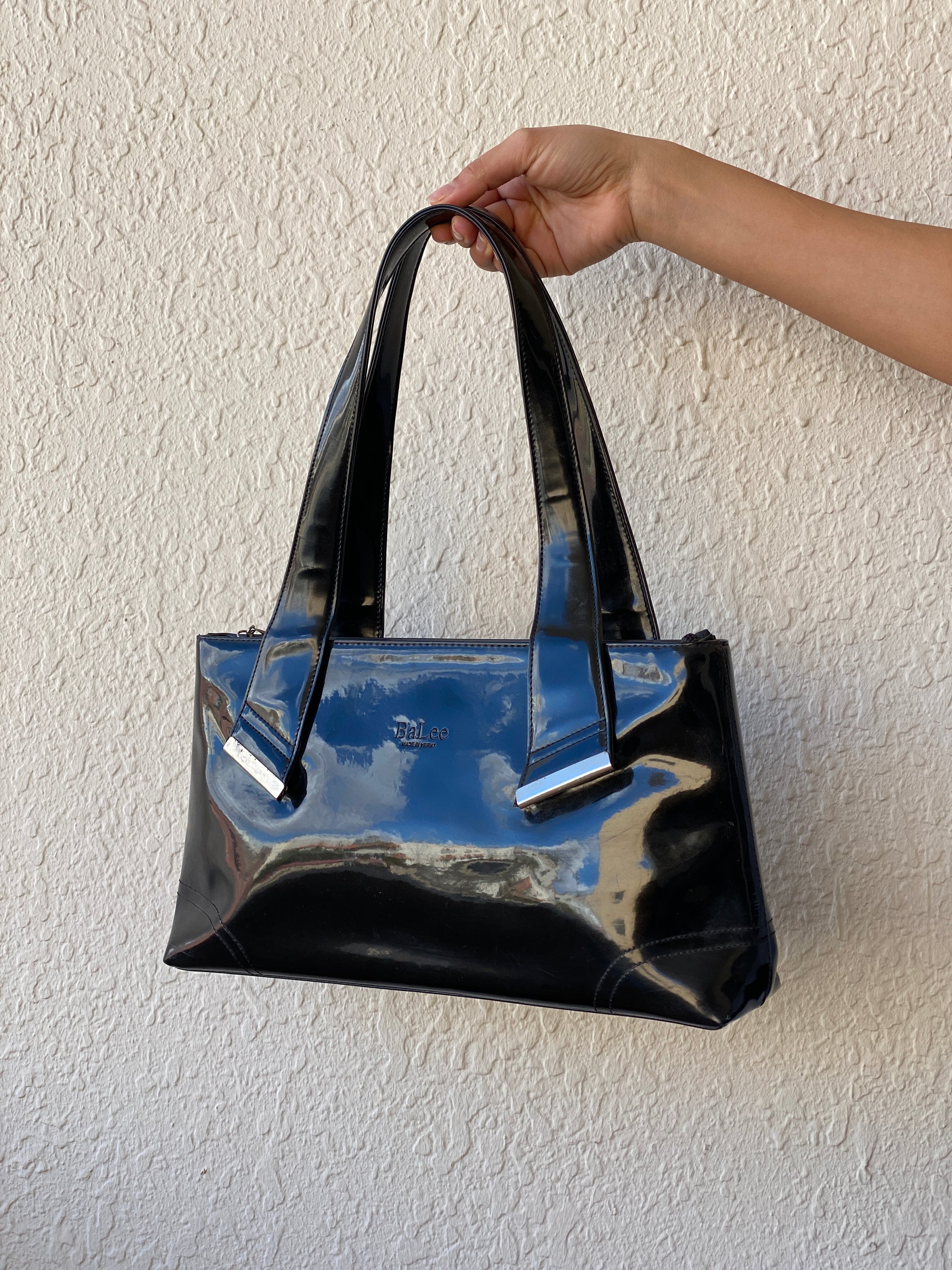 حقيبة كتف BaLee من الجلد الأسود اللامع من التسعينيات
