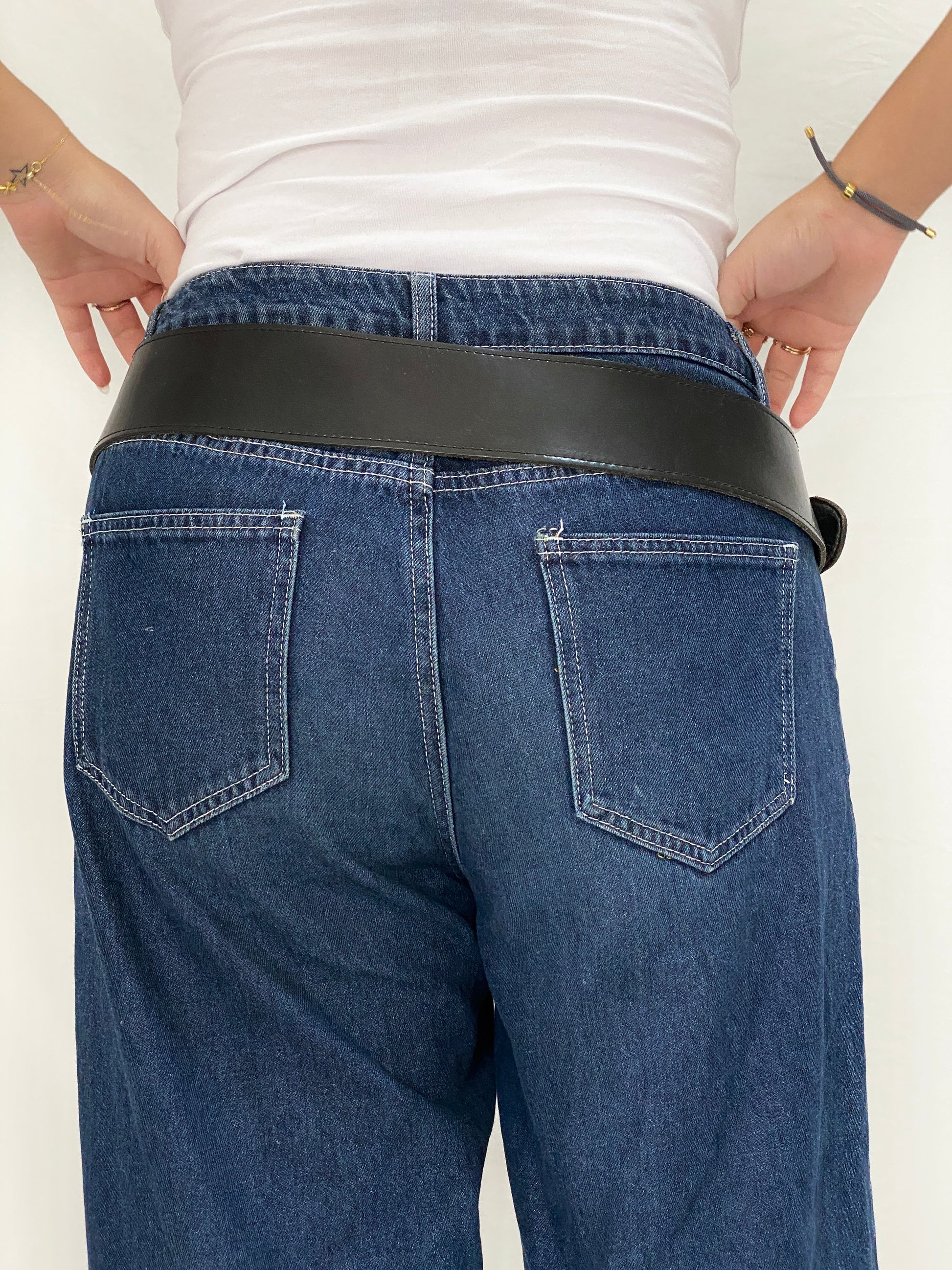 Bold, sculptural, and so Y2K — this vintage wide genuine leather belt features a dramatic oversized silver ring buckle that instantly elevates any outfit. Made from thick, high-quality black leather with clean stitching and a smooth finish, it’s the perfect statement accessory for jeans, dresses, oversized blazers, and low-rise fits.