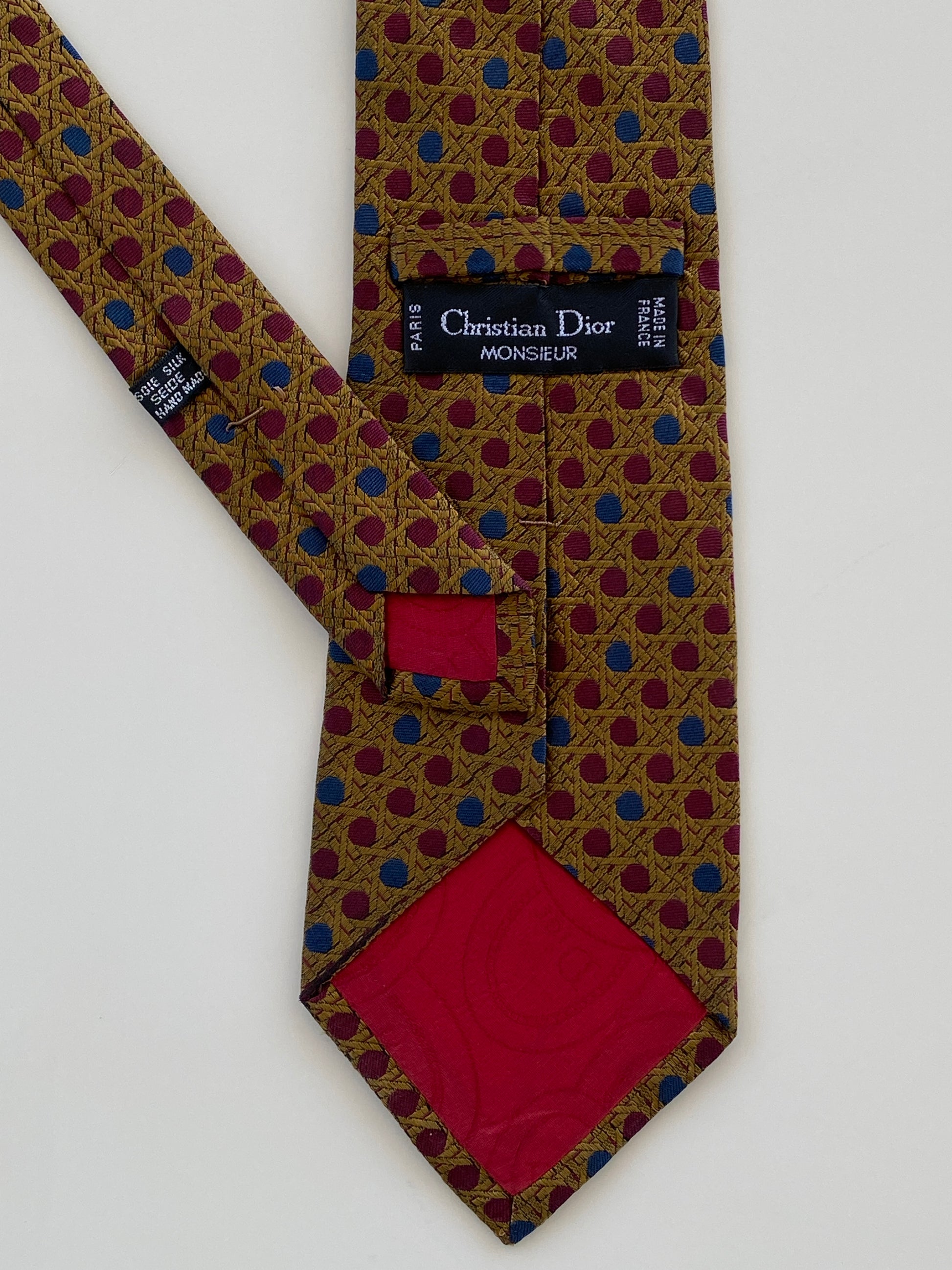 ربطة عنق حرير رجالية من كريستيان ديور مونسيور جولد بورجوندي فينتاج