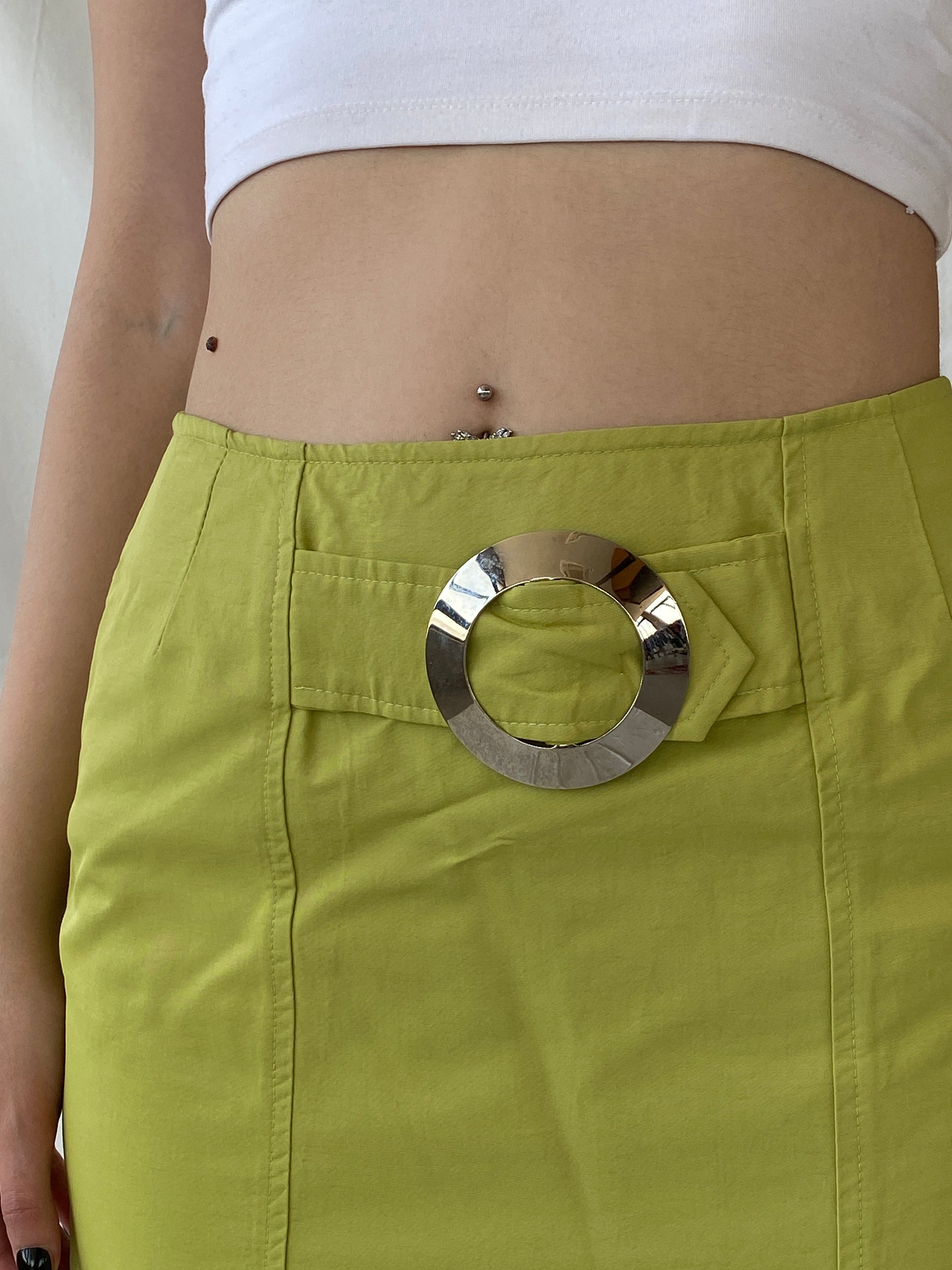 تنورة صغيرة خضراء بحزام بتصميم مستقبلي من مجموعة كلود زانا باريس - مقاس متوسط