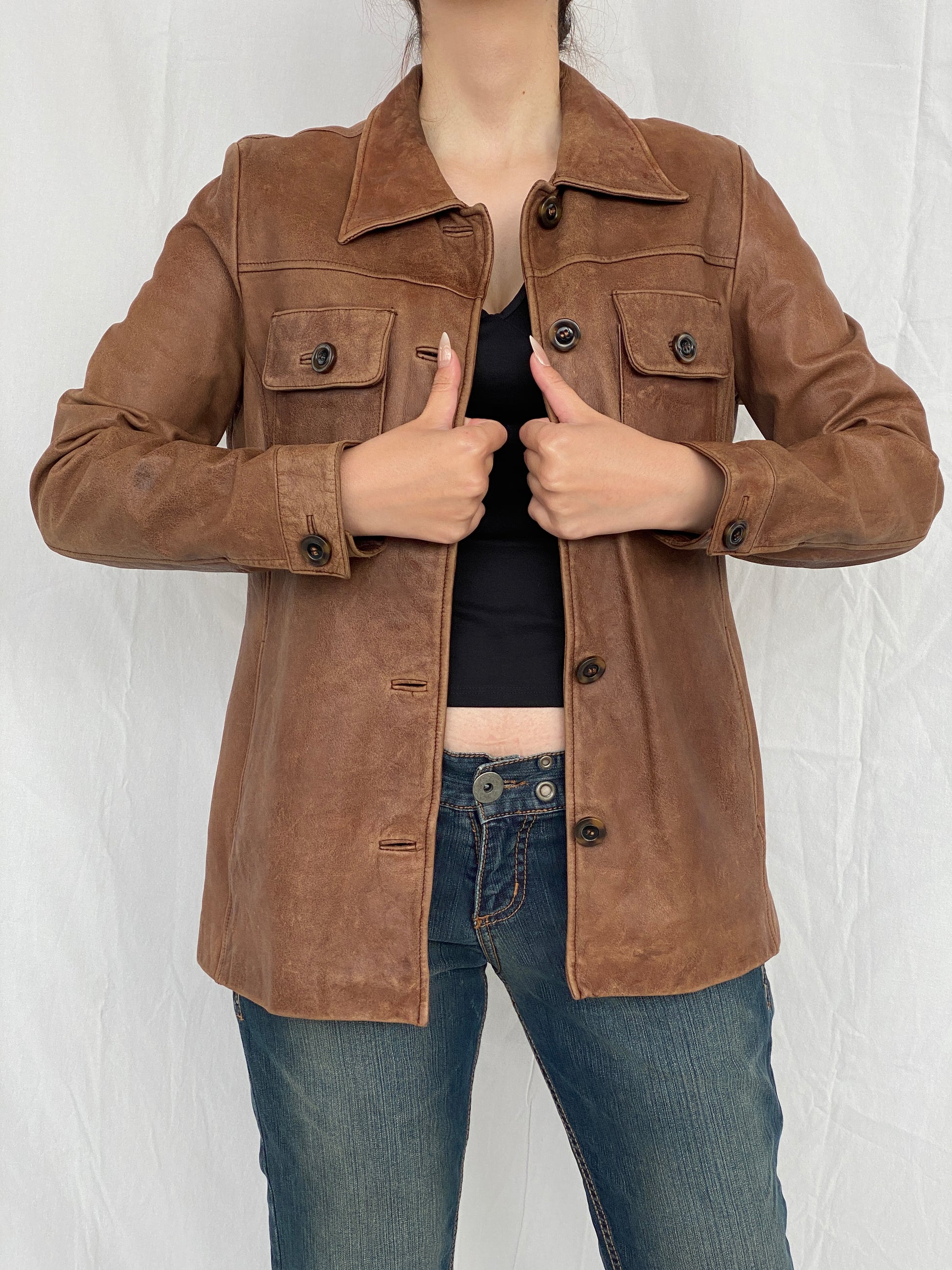 جاكيت جلدي بني كلاسيكي من فينتيج كلوب ماناكو - مقاس متوسط