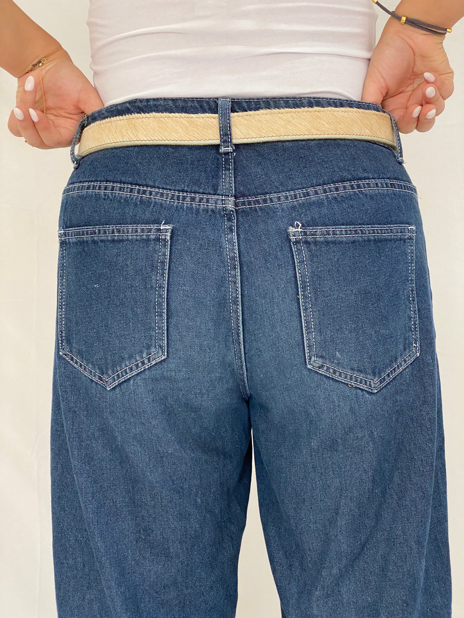 Soft, unique, and effortlessly stylish — this vintage Costes genuine leather belt features a cream hair-on-hide finish that gives it a luxe, textured look. Paired with a brushed brass buckle and contrast stitching, it brings a clean Western-meets-minimalist vibe to any outfit.
