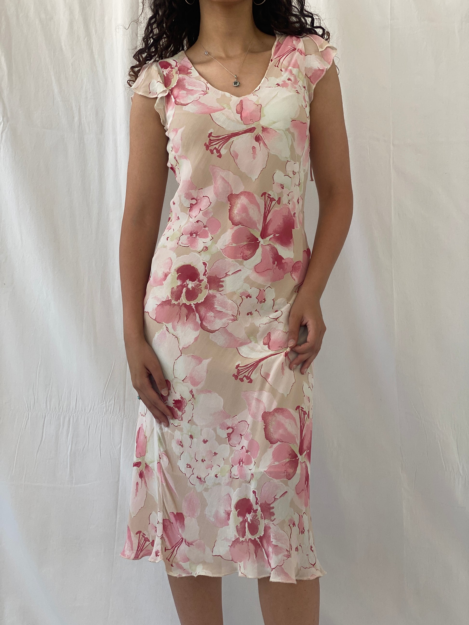 فستان متوسط الطول من Dreamy Vintage Cõté Femme وردي كريمي مزهر Fairycore - مقاس صغير