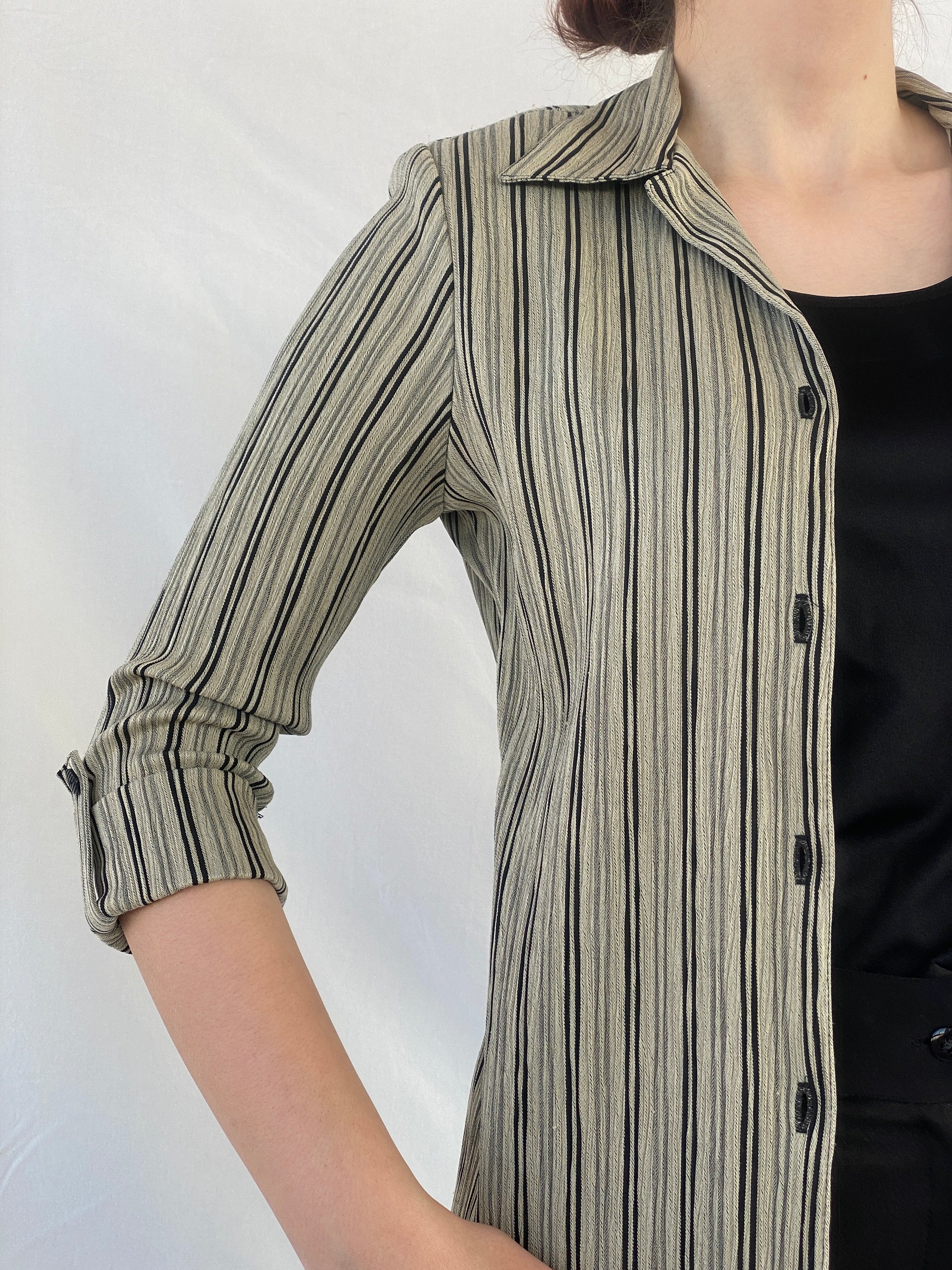 قميص نسائي مخطط باللونين الأسود والبيج من Vintage Dressbarn مع بلوزة متصلة - مقاس M