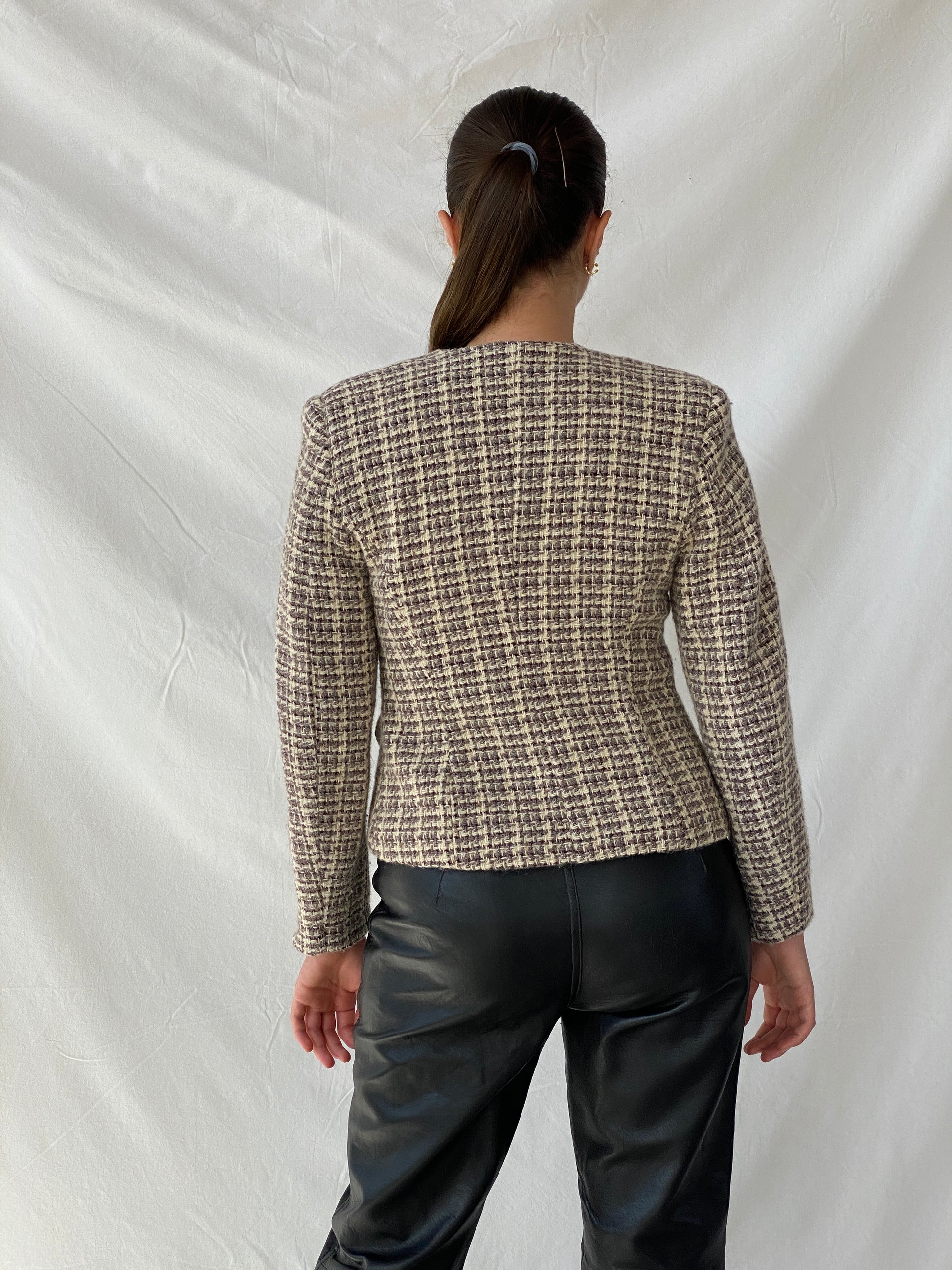 سترة تويد من الصوف الكريمي والبني من Vintage Finest - مقاس M