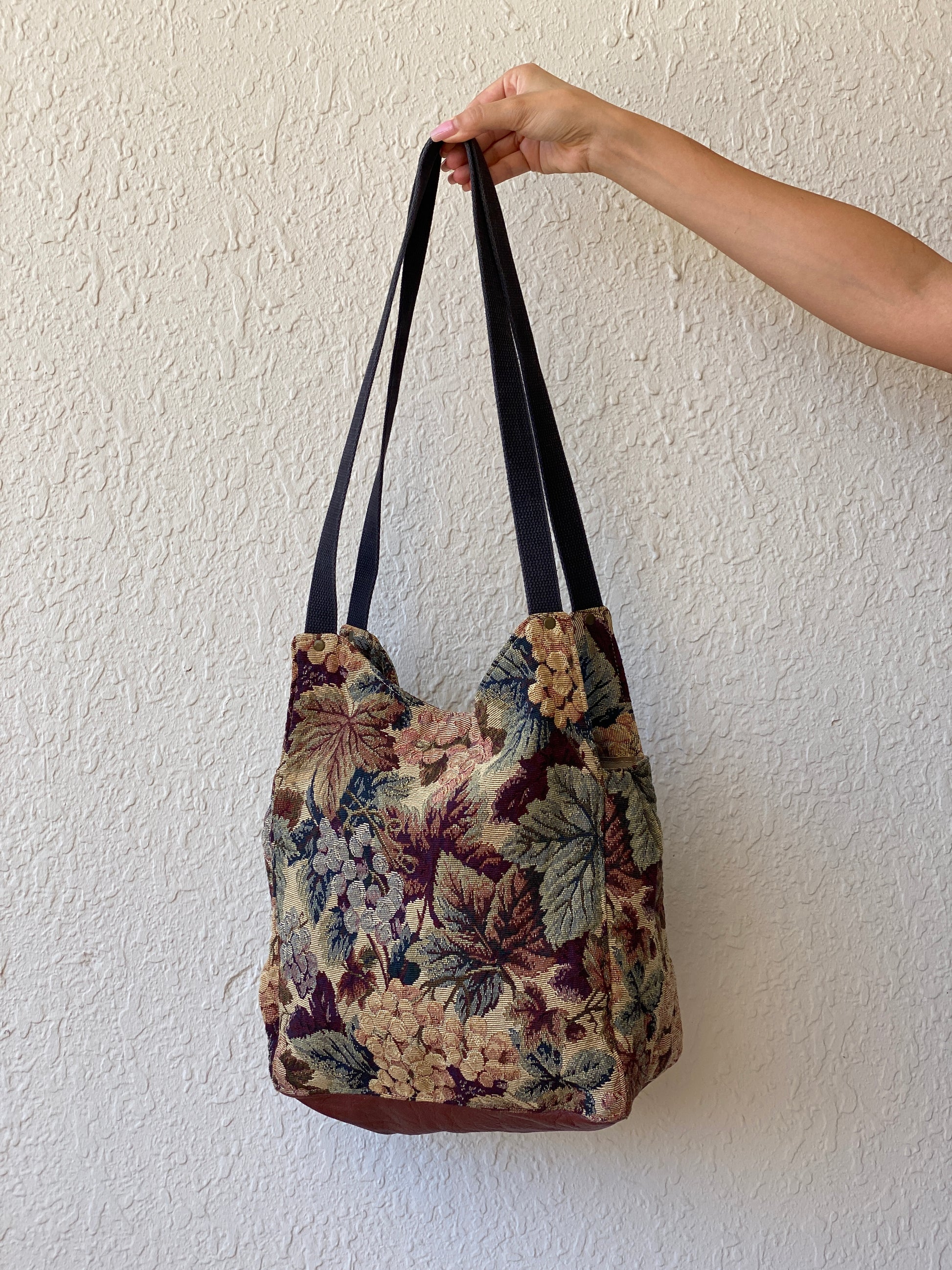 عززي إطلالتك اليومية مع حقيبة توت كلاسيكية مزخرفة بنقشة زهور بلون ترابي. هذه الحقيبة العملية لا تضفي لمسة أنيقة على إطلالتك فحسب، بل توفر أيضًا وظائف عملية لتلبية احتياجاتك اليومية.
