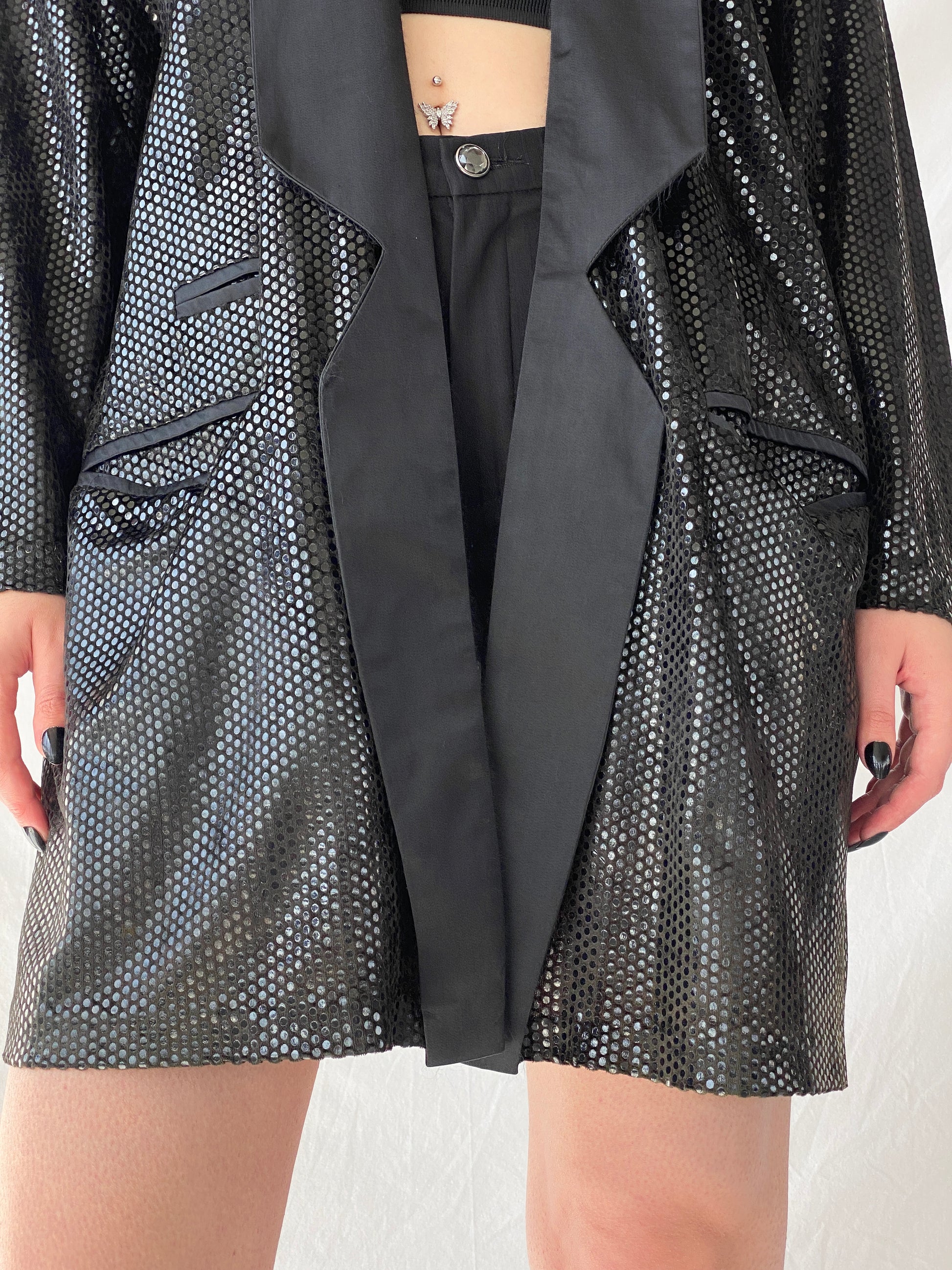 سترة نسائية طويلة للحفلات من GENG بتصميم كلاسيكي من التسعينيات مع حافة من الساتان - مقاس XL
